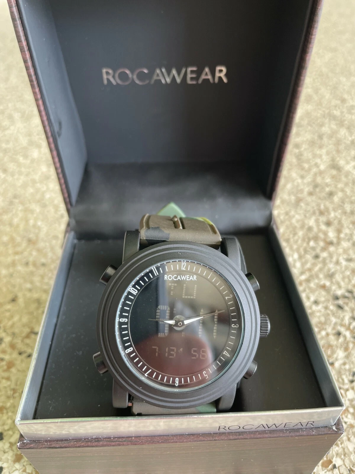 NEW Rocawear Big Men's Sports Watch, Black with Cameo Band
