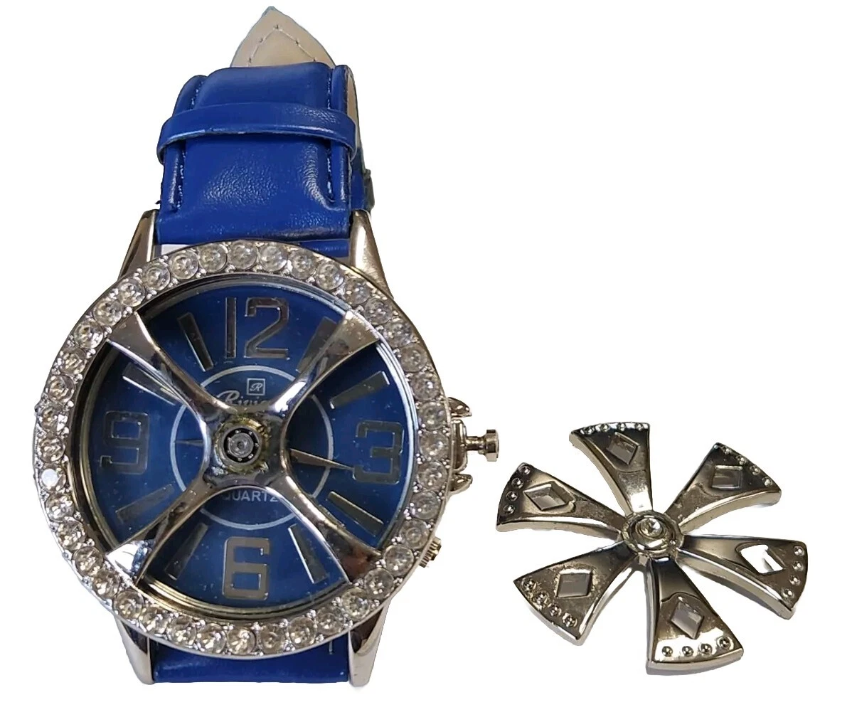 Blue Face Bejeweled Riviera Spinner Watch; Stainless Steel