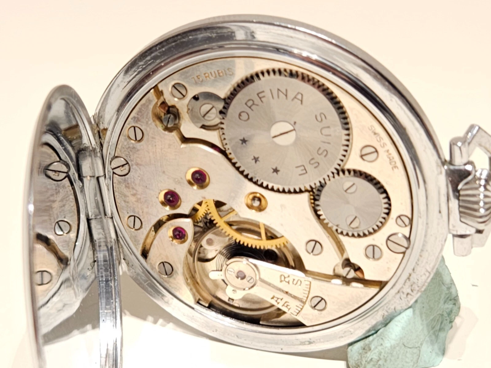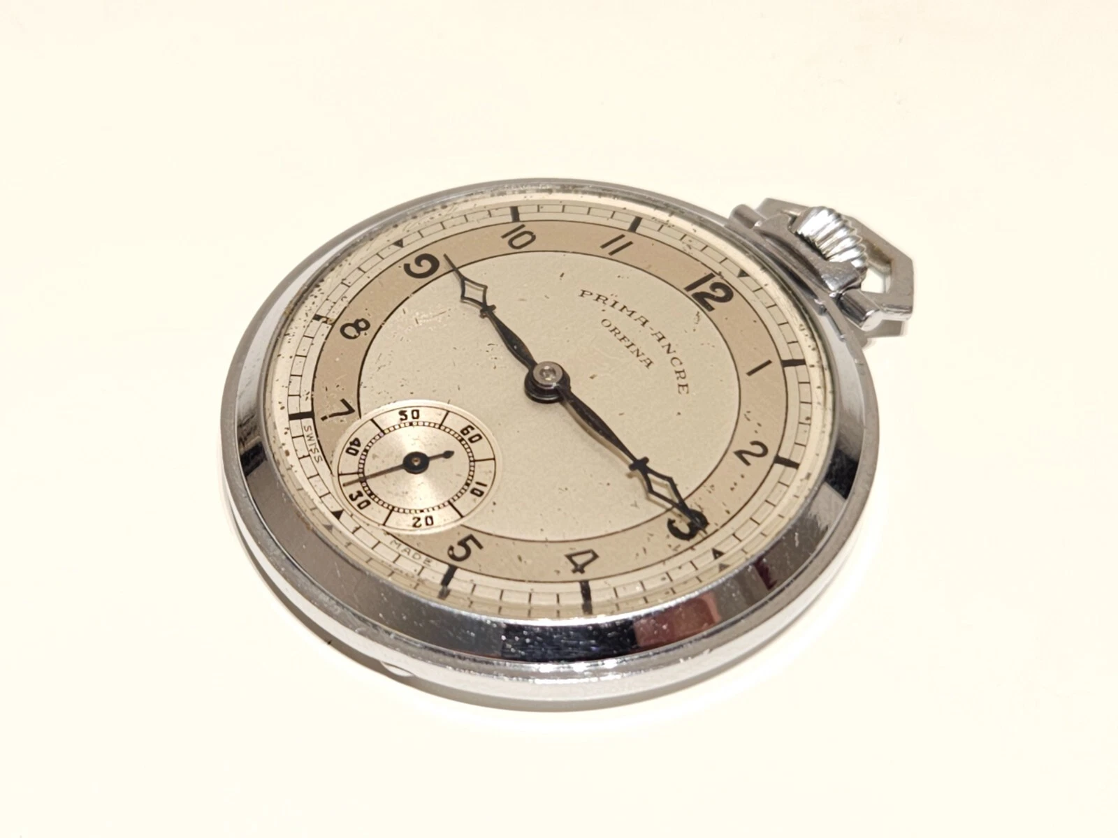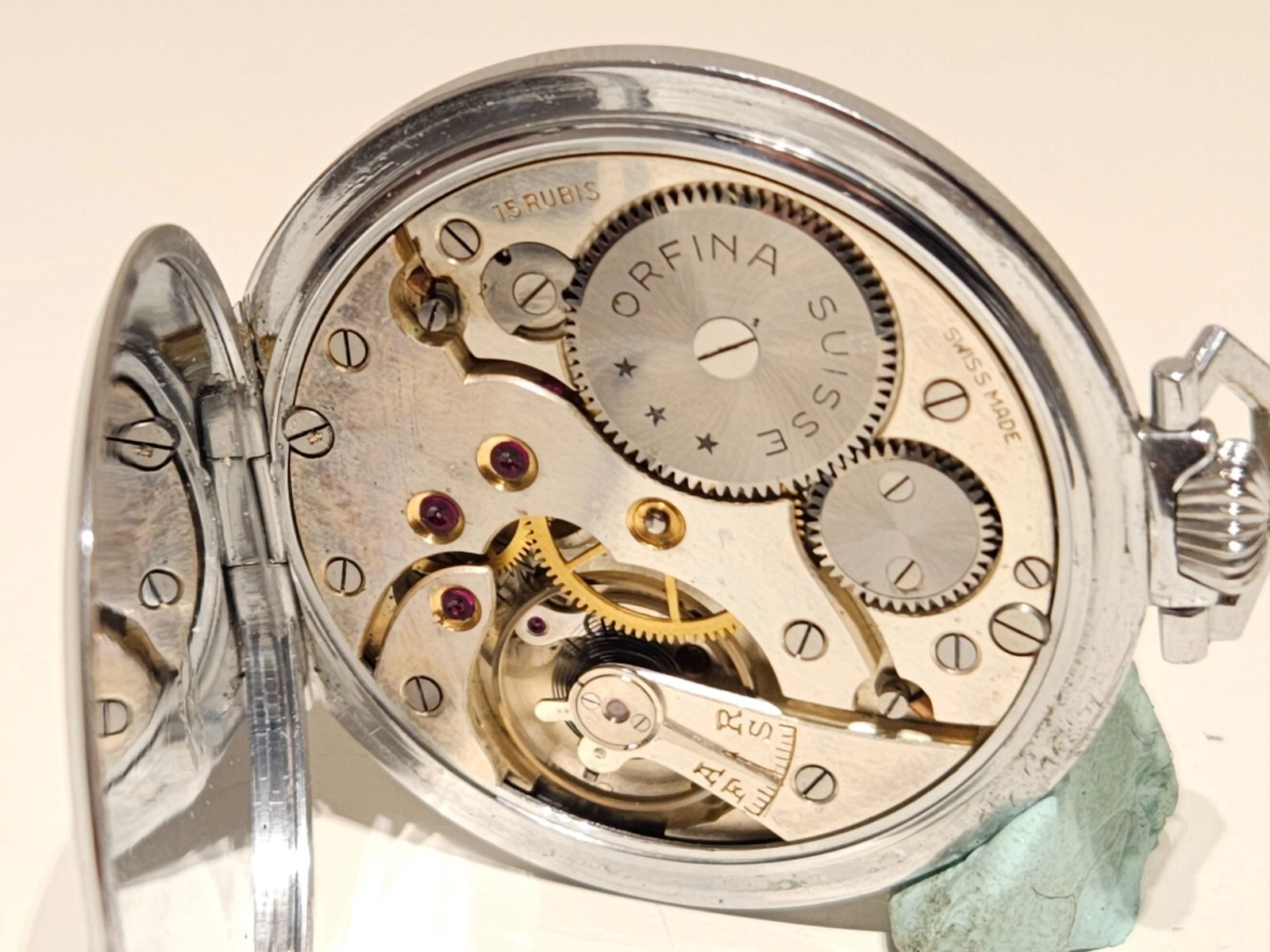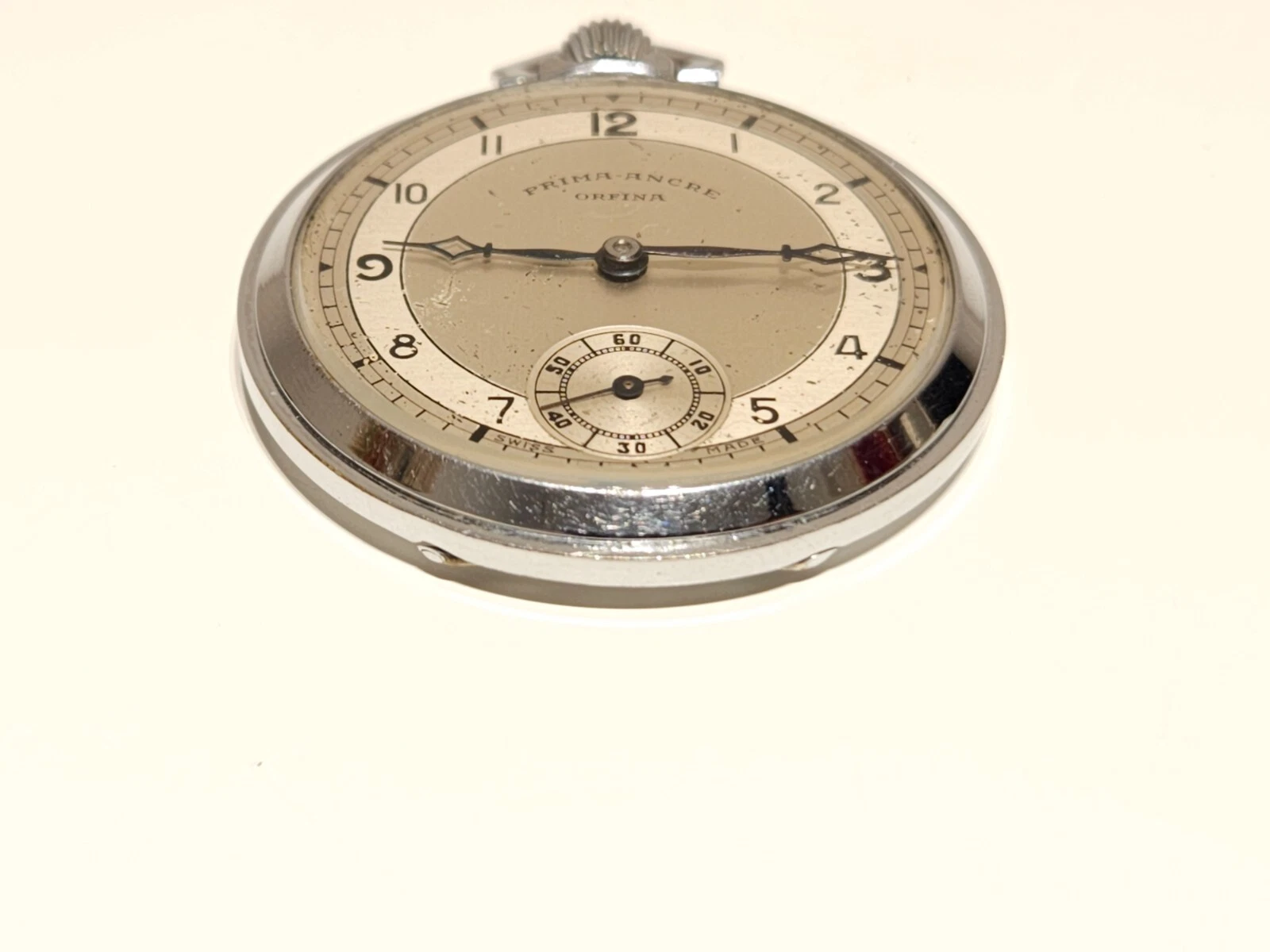VINTAGE WW2 ERA PRIZE MEN'S SWISS OPEN FACE POCKET WATCH "ORFINA" PRIMA ANCRE