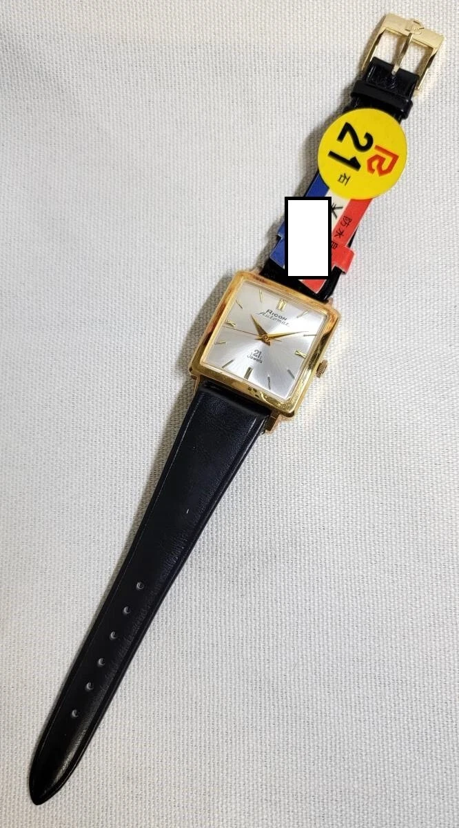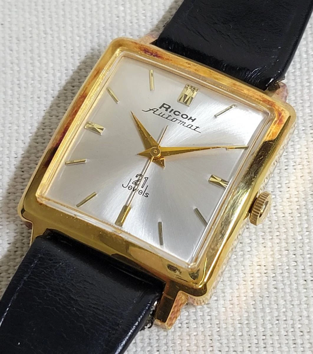 Wristwatch Ricoh 21 Jewels Automatic Gold Plated Square Case Stainless Back
