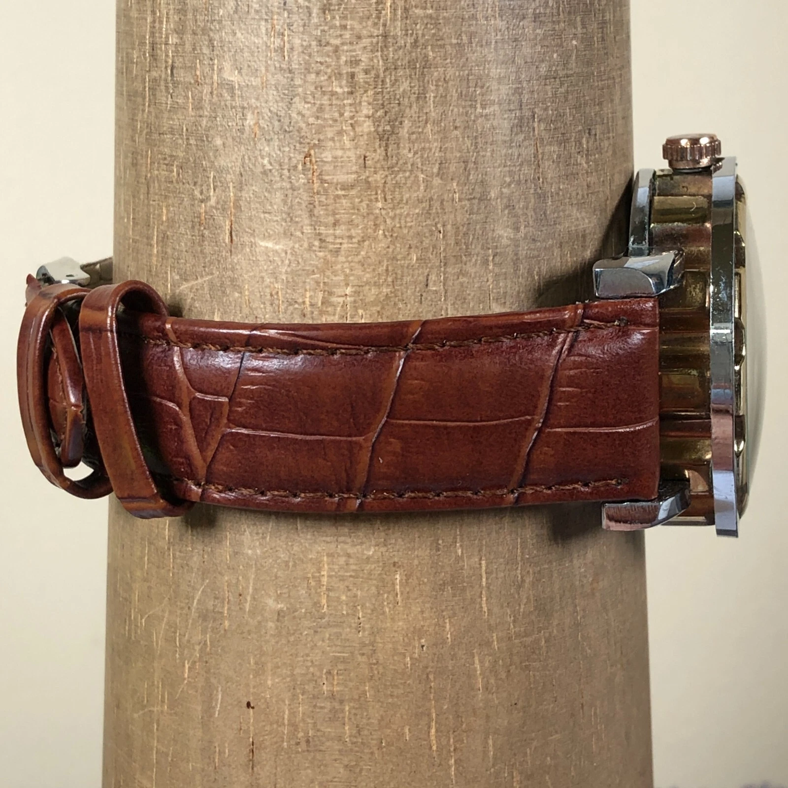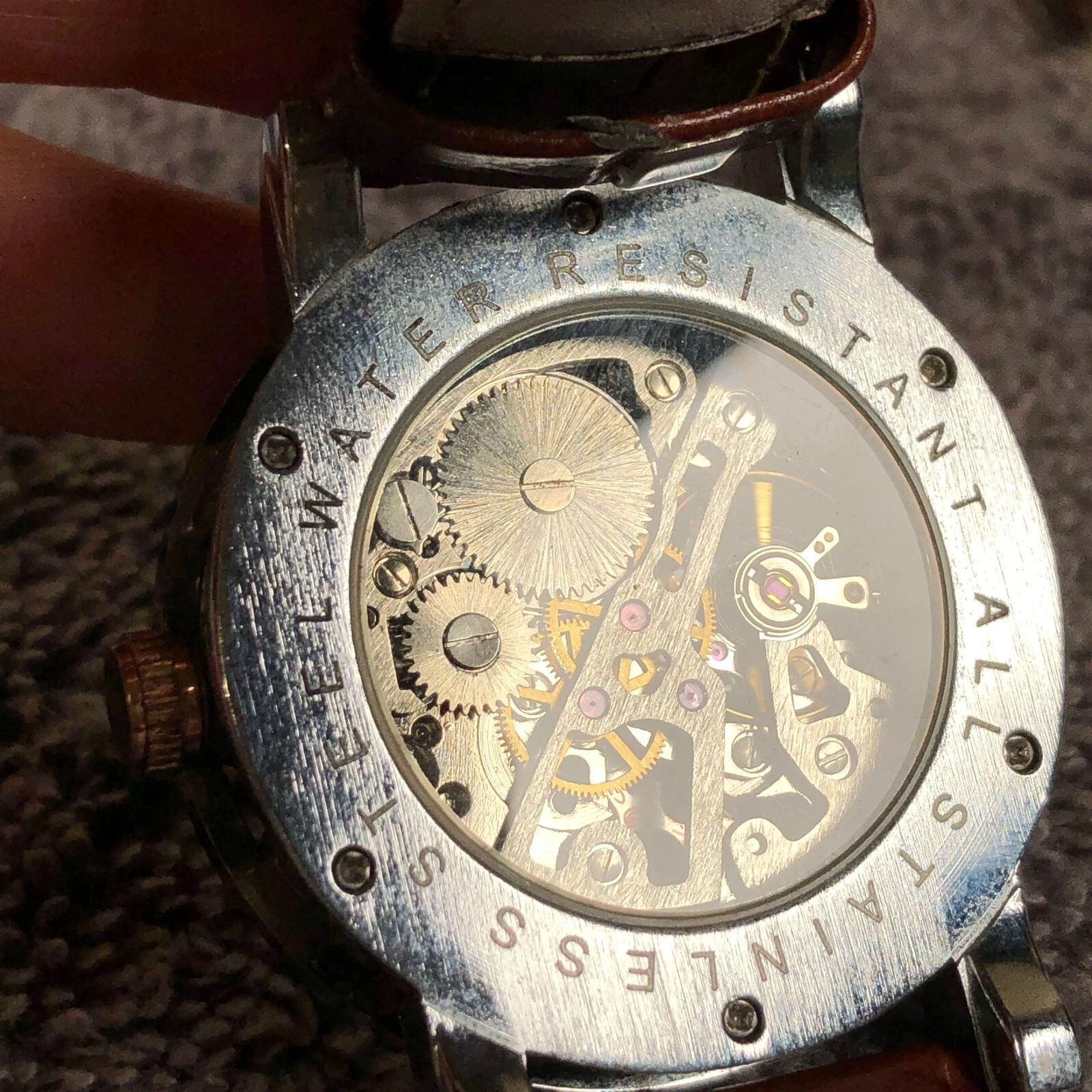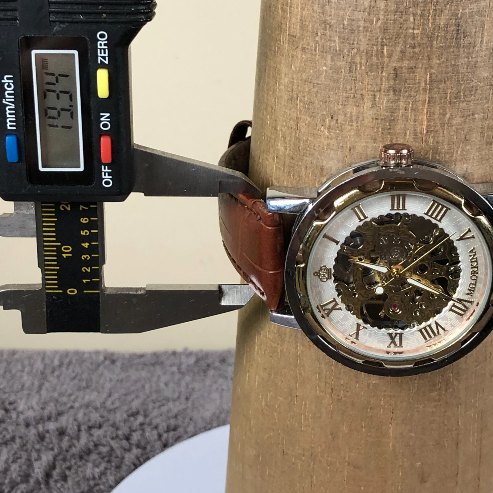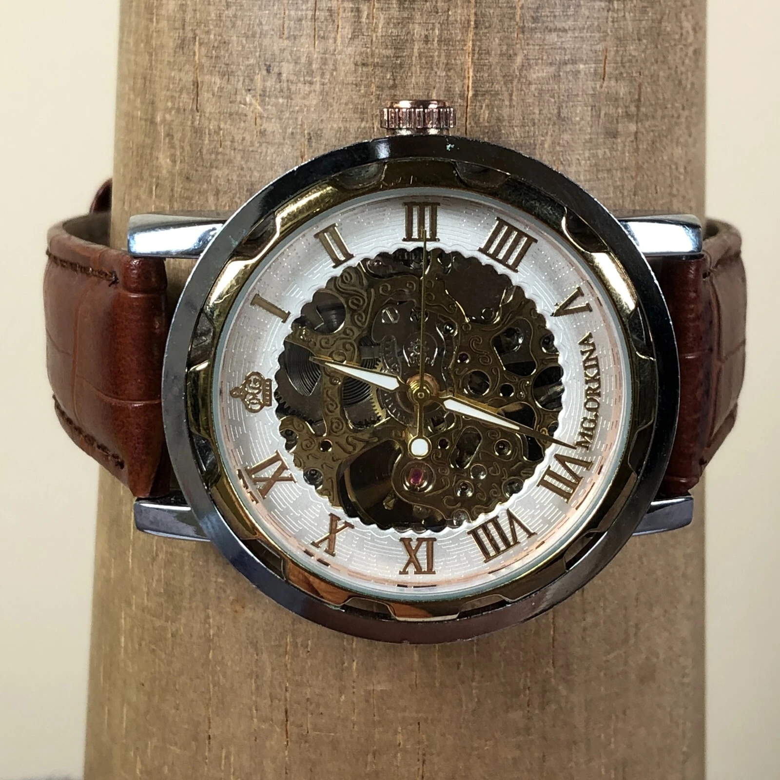 MG. Orkina Men Skeleton Brown Leather Stainless Mechanical Wind Watch 7 3/4"
