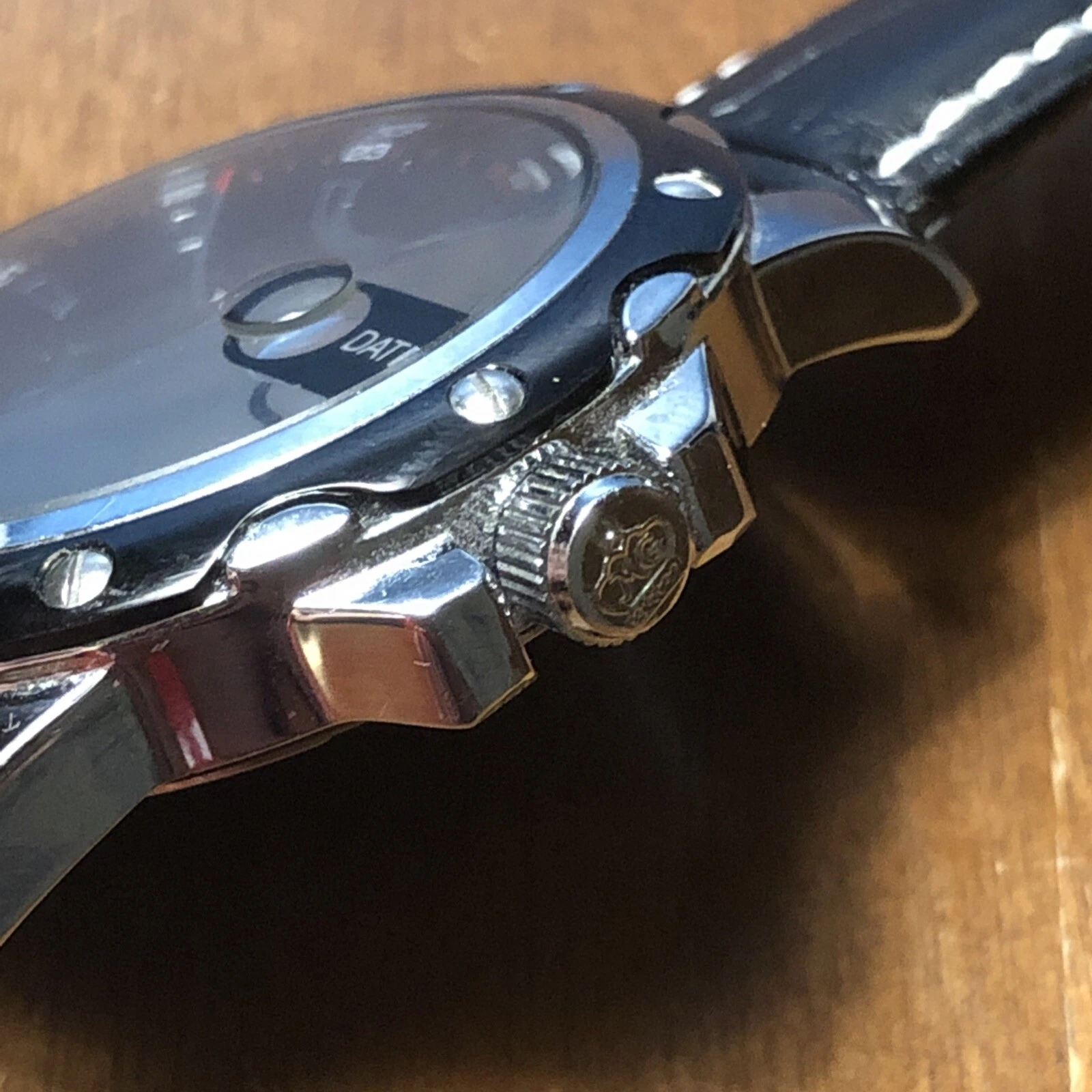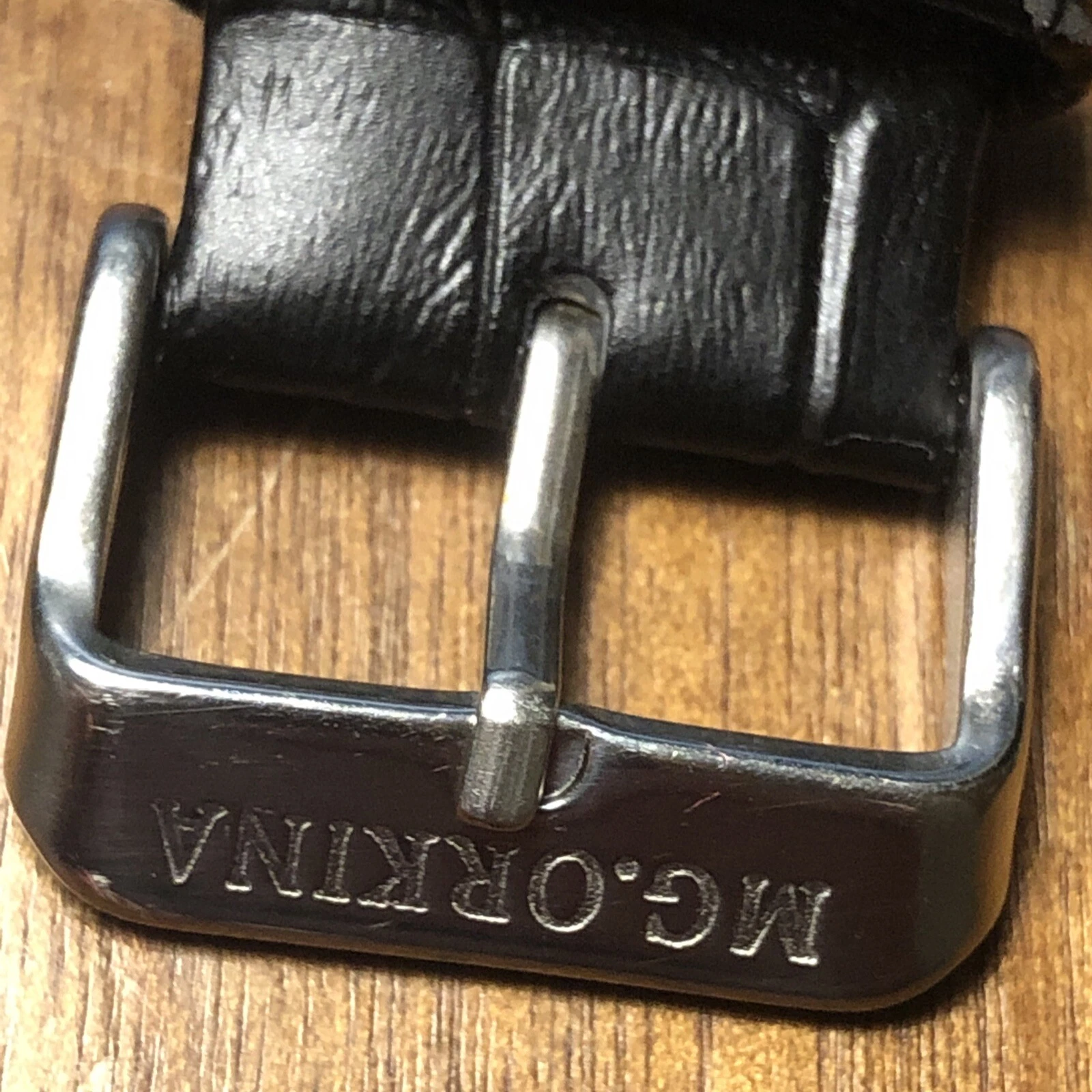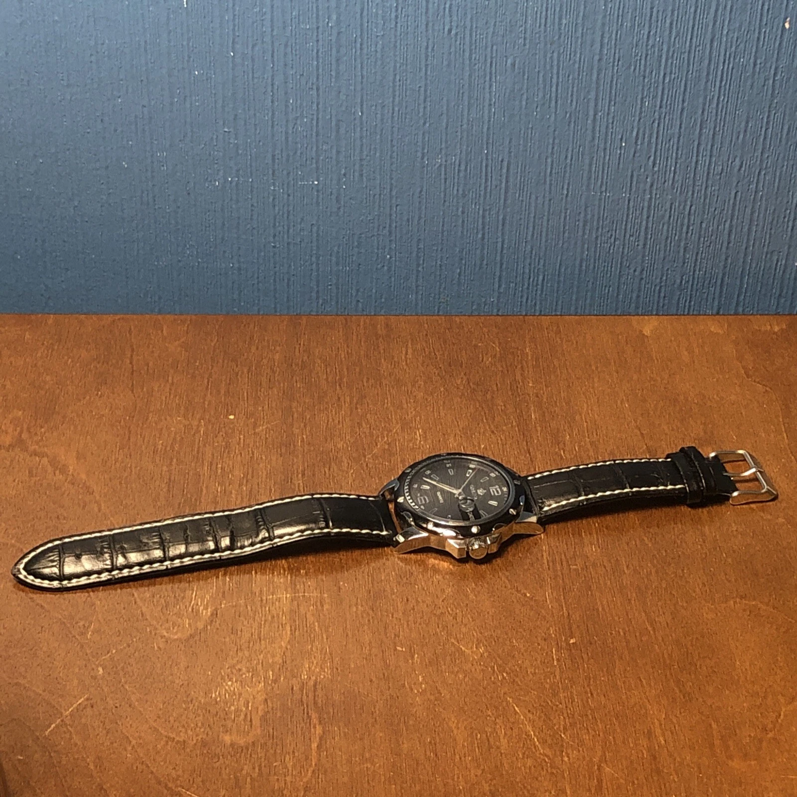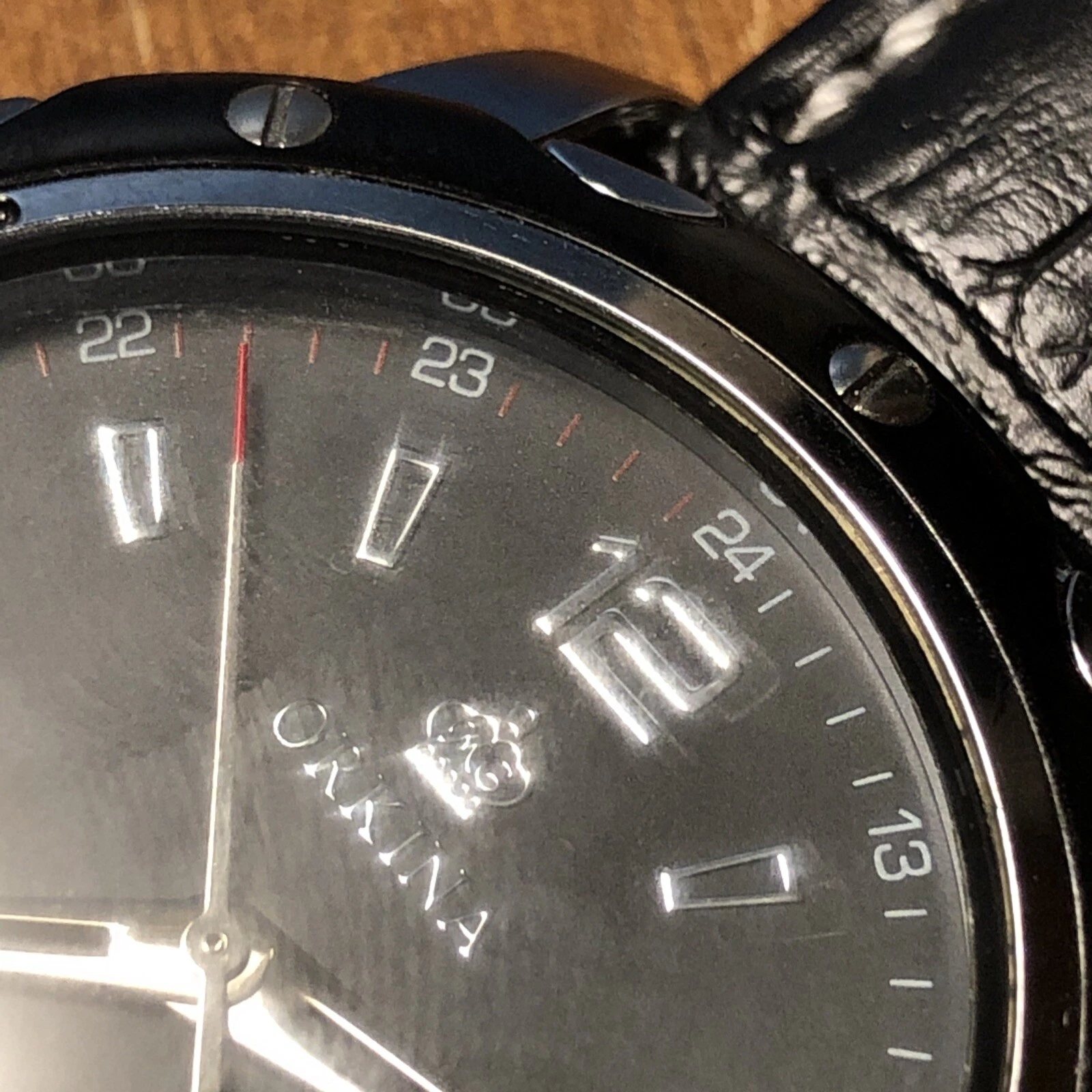 ORKINA Steel Mens Watch w/ Date - Black GENUINE LEATHER Band AS IS Needs Battery