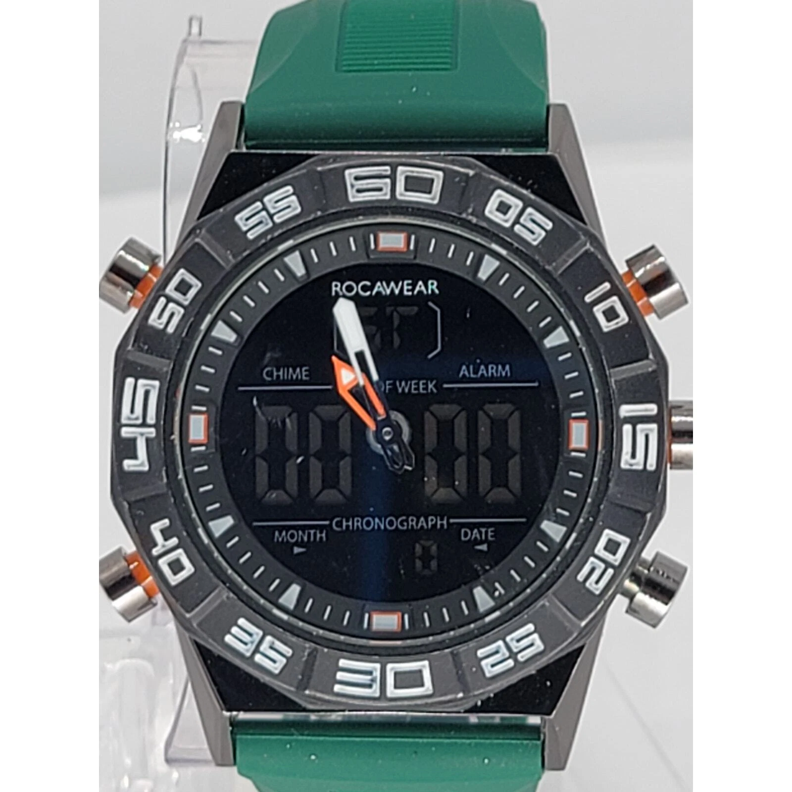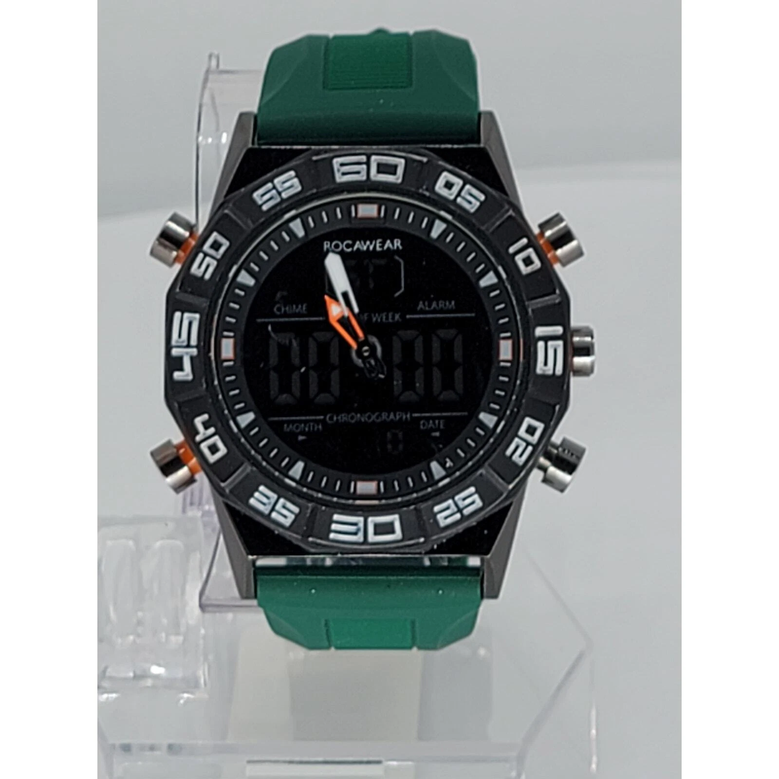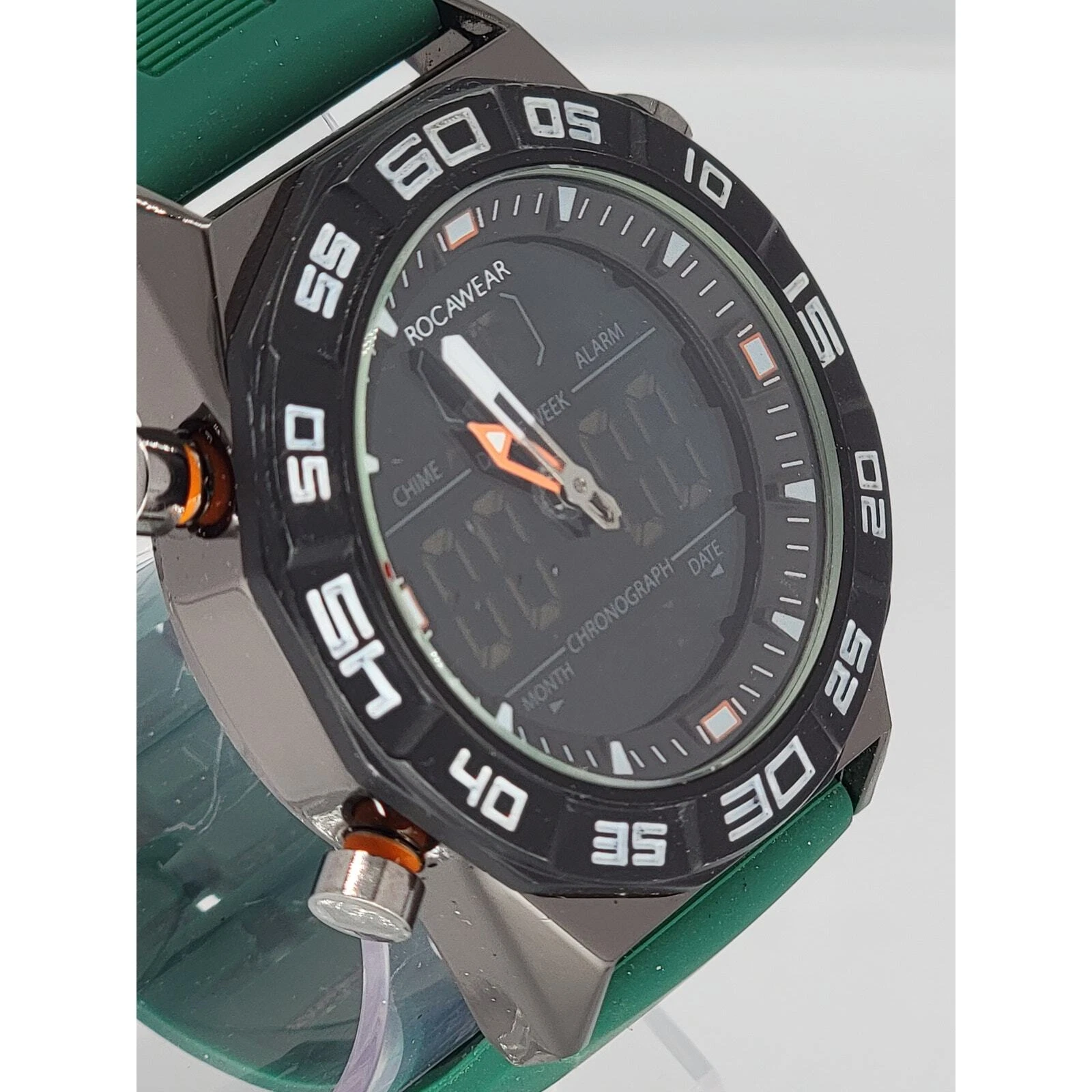 Men's Rocawear Analog-Digital Green Silicone Strap Watch 46mm