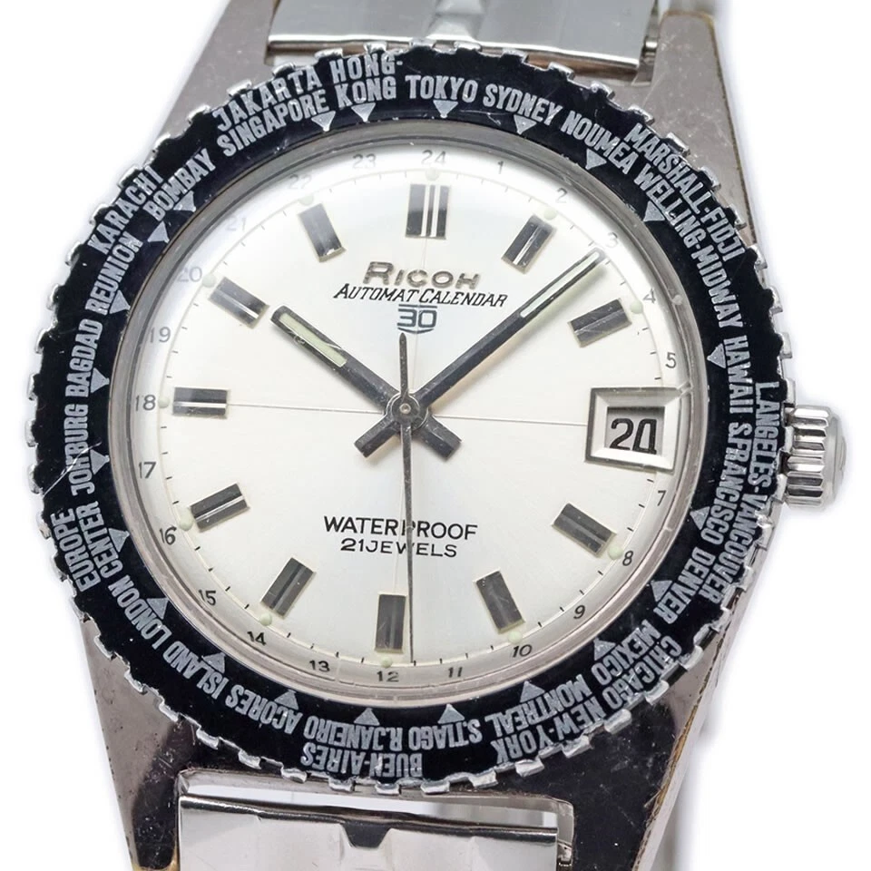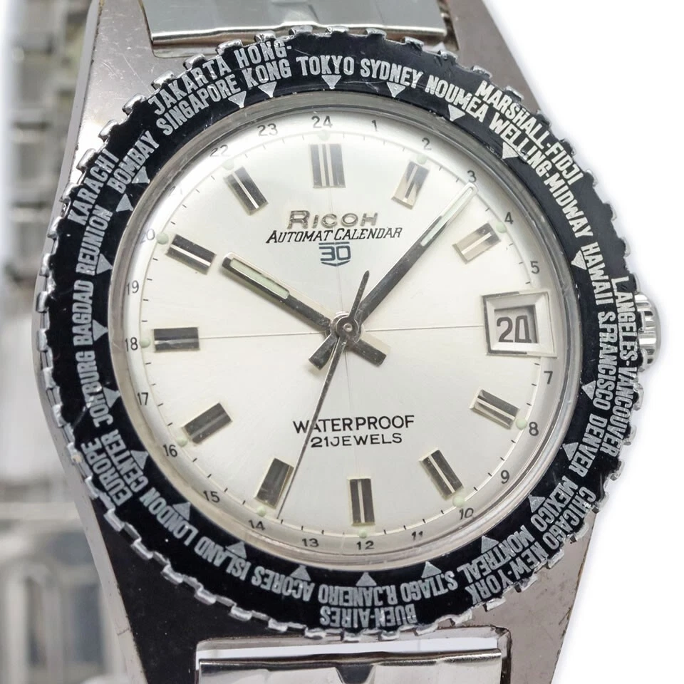 Ricoh Automatic Calendar 30 World Time Bezel 1960 38mm Silver Dial Men's Watch