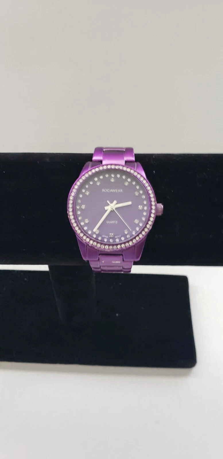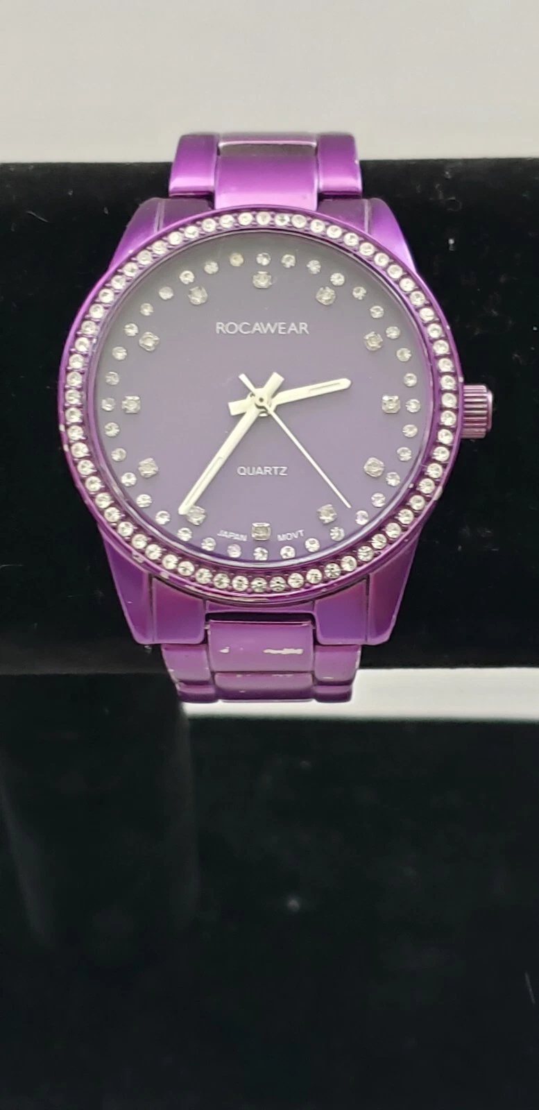Rocawear Purple Color Watch . Rhinestones on Bezel, Dial. New Battery