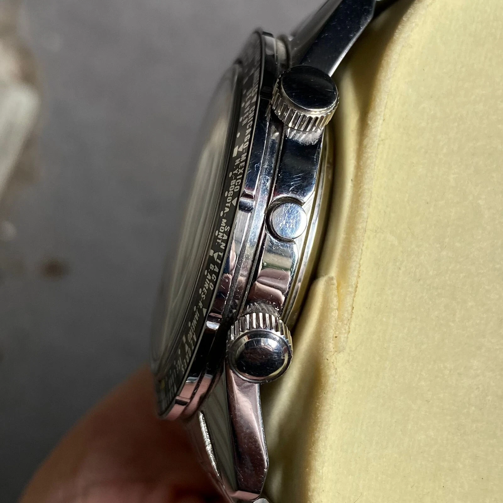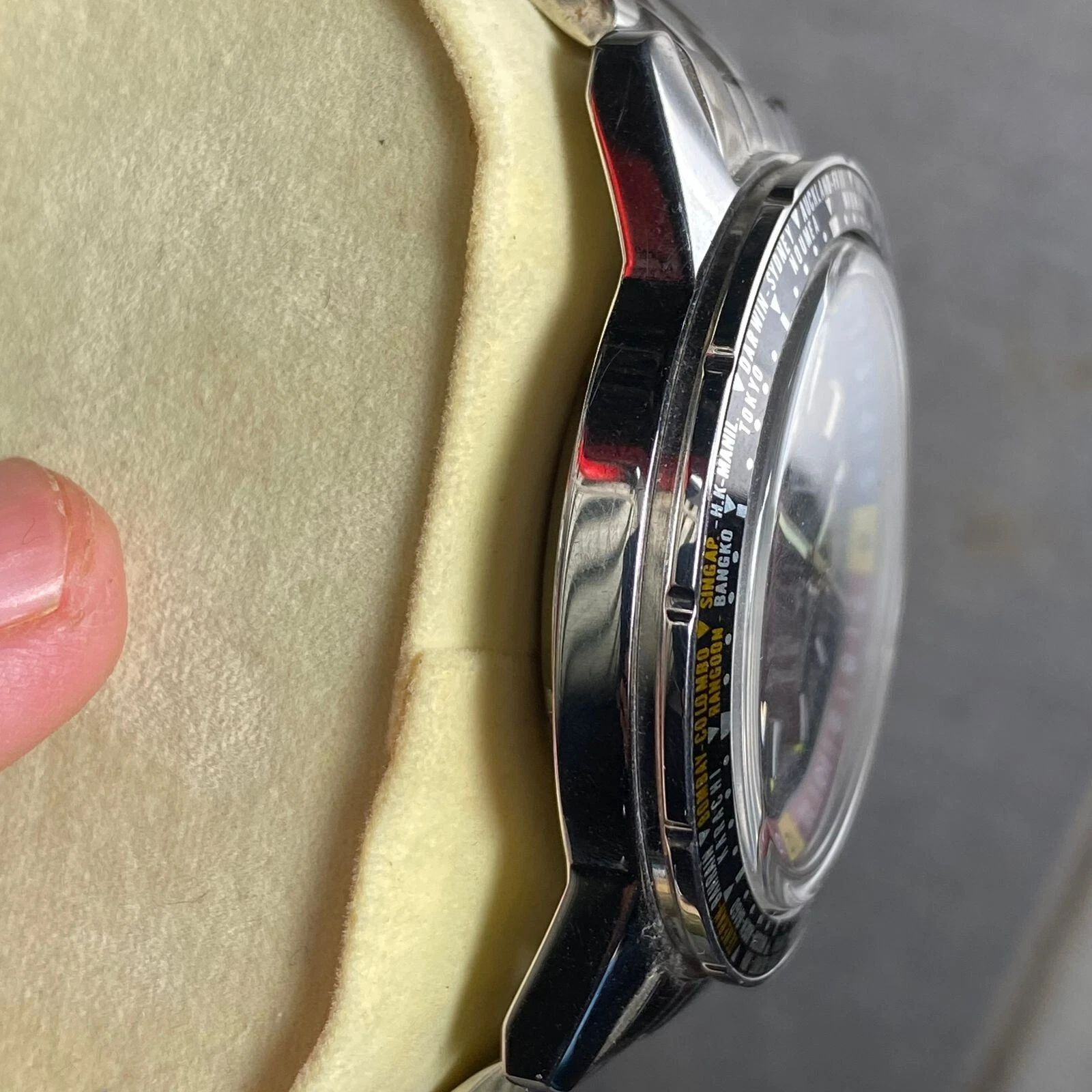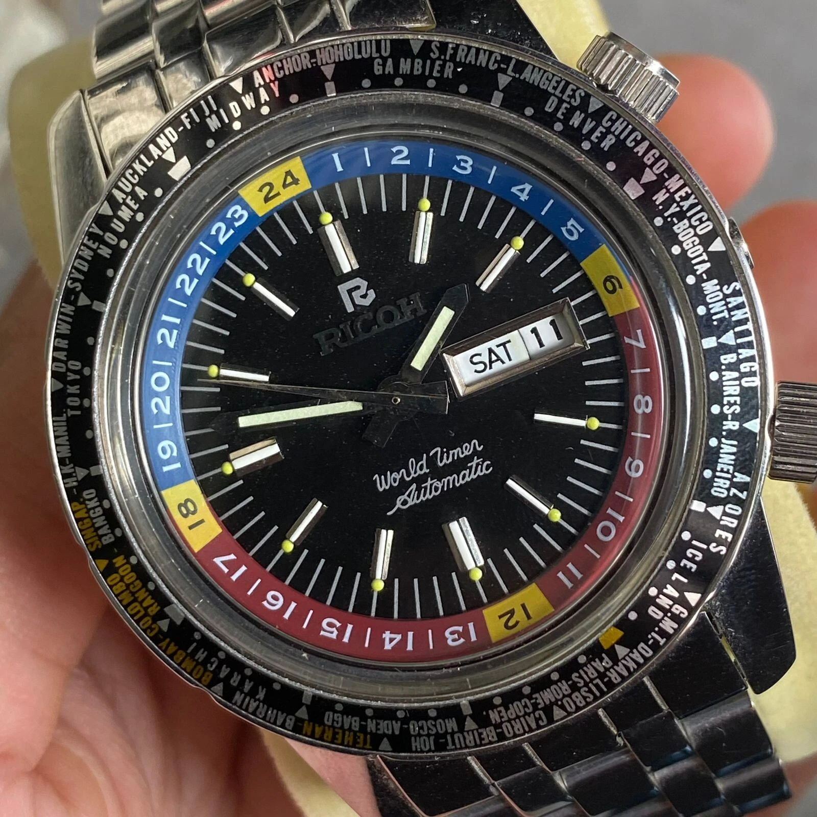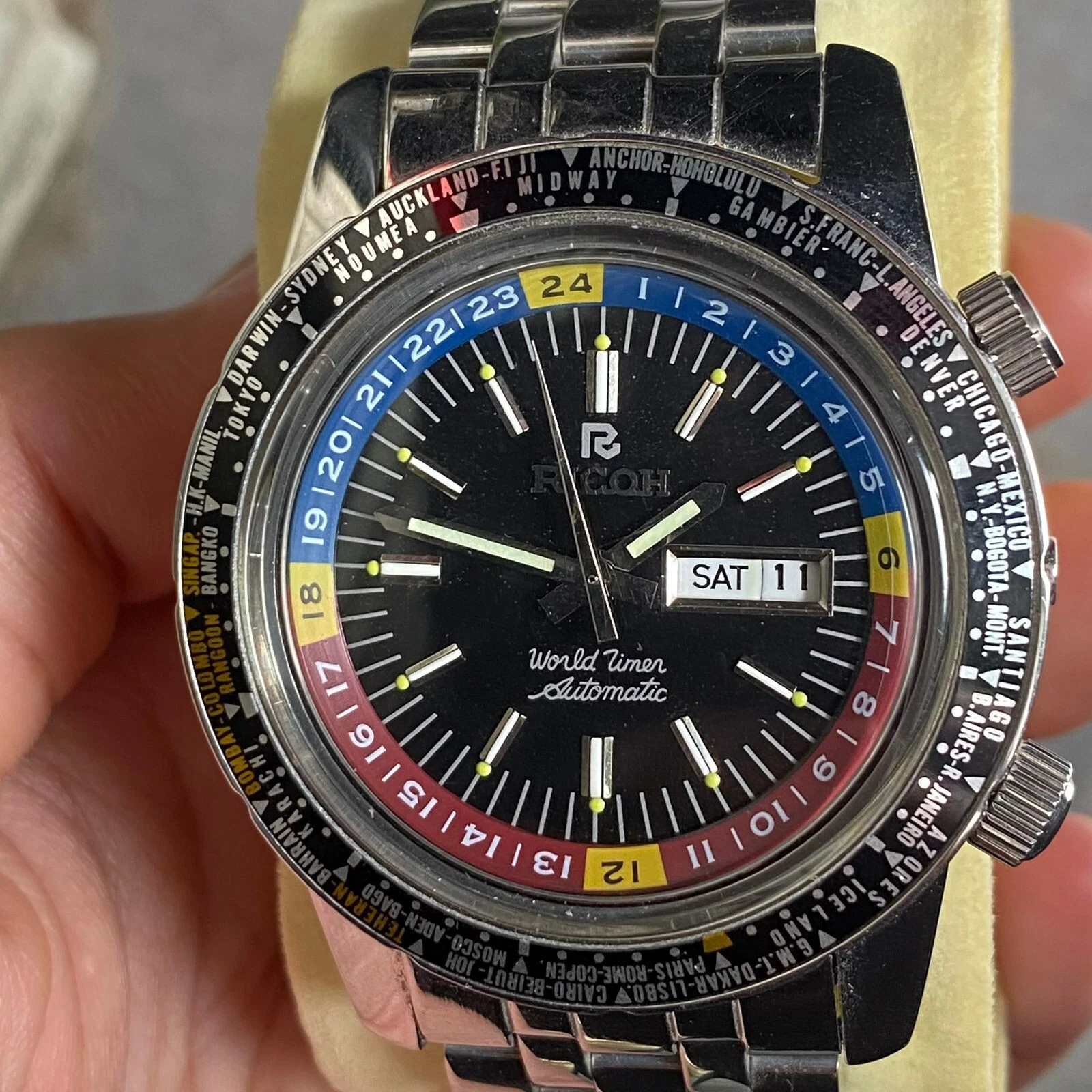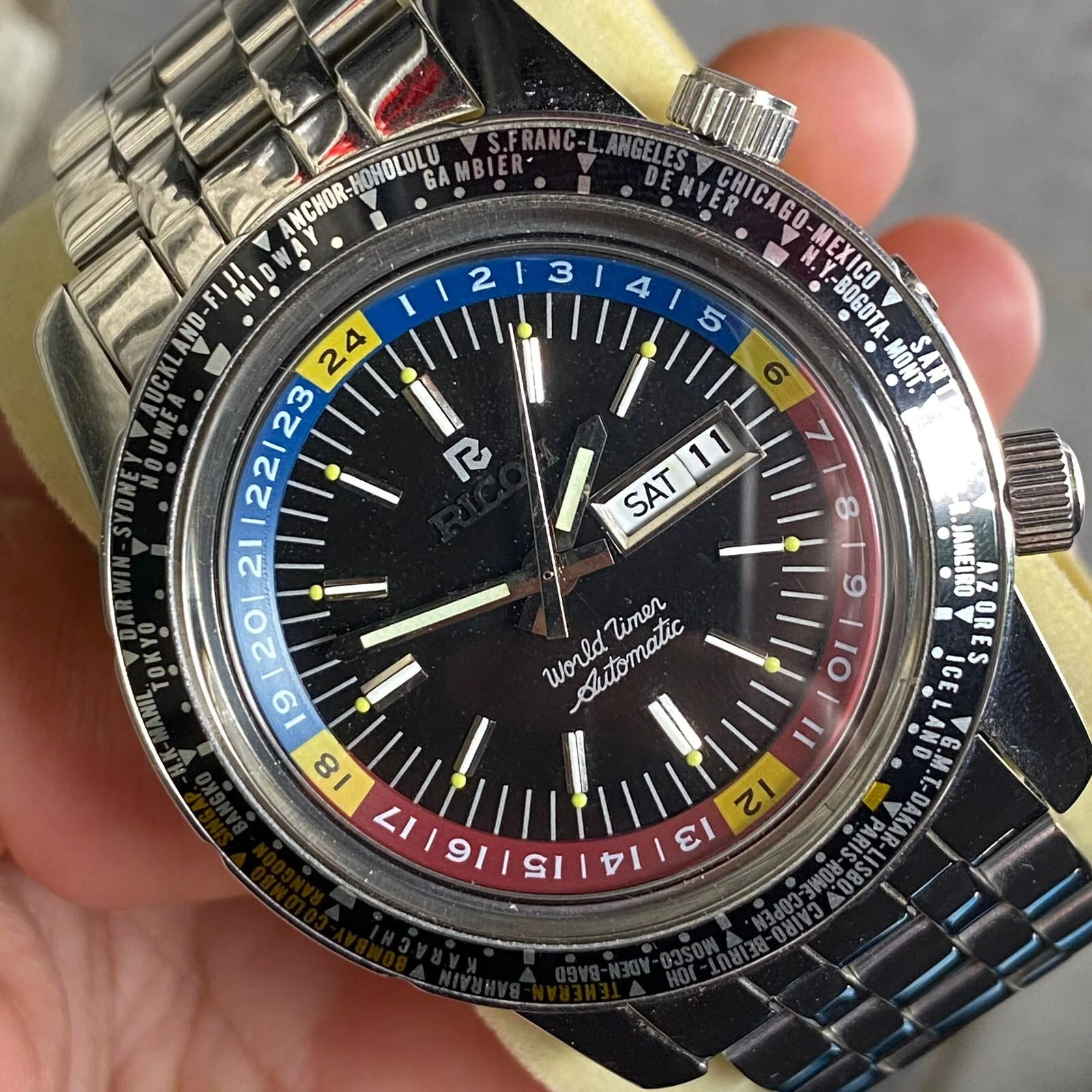 Rare Ricoh World Timer Black Dial Automatic Diver Day Date Vintage Men Watch