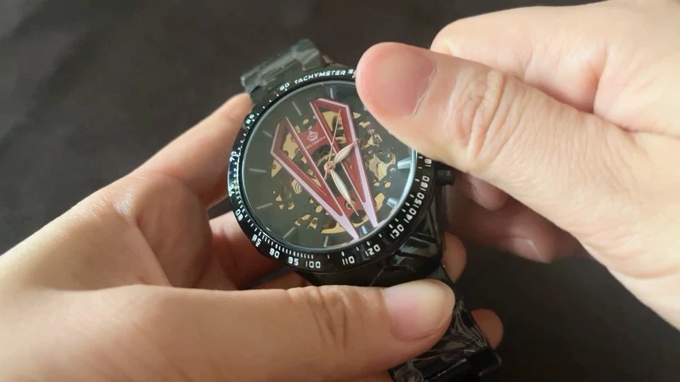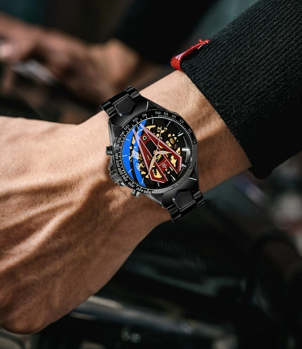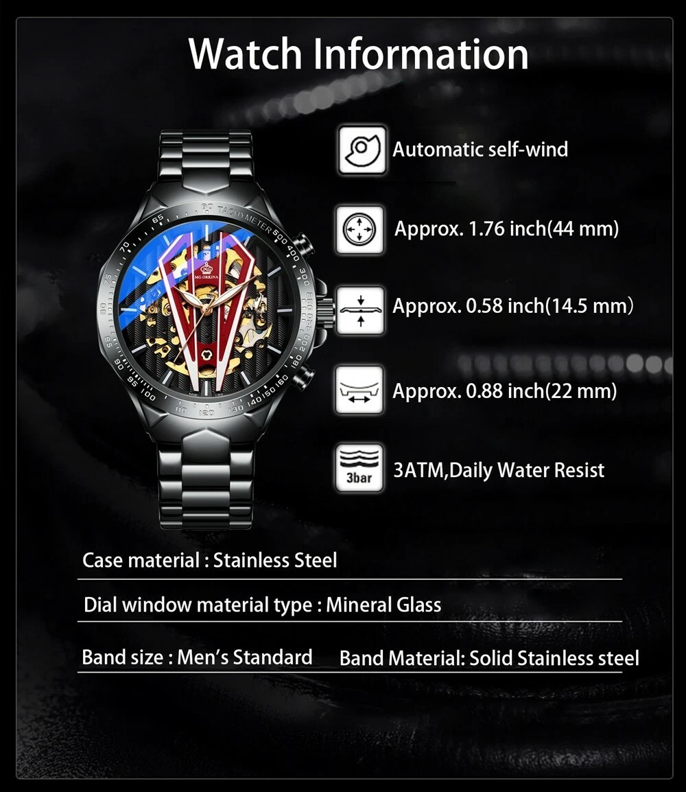 New Arrivals Men's Self-wind Automatic Skeleton Mechanical Watch Black Stainless
