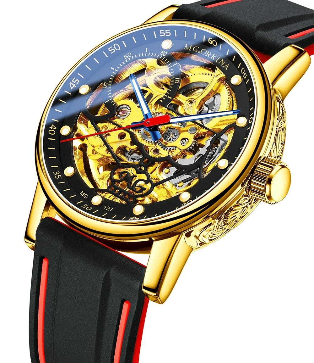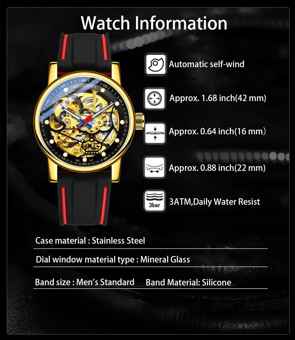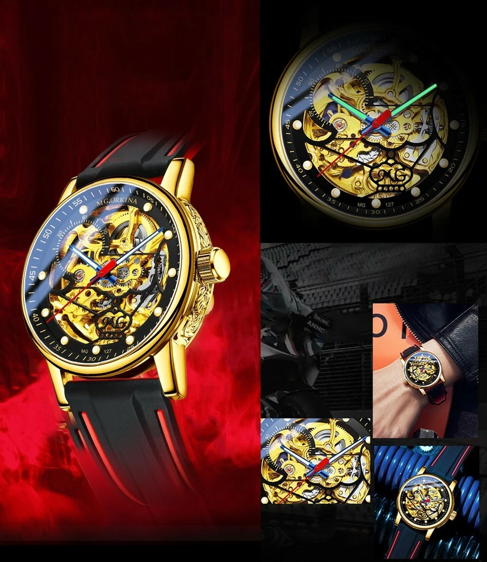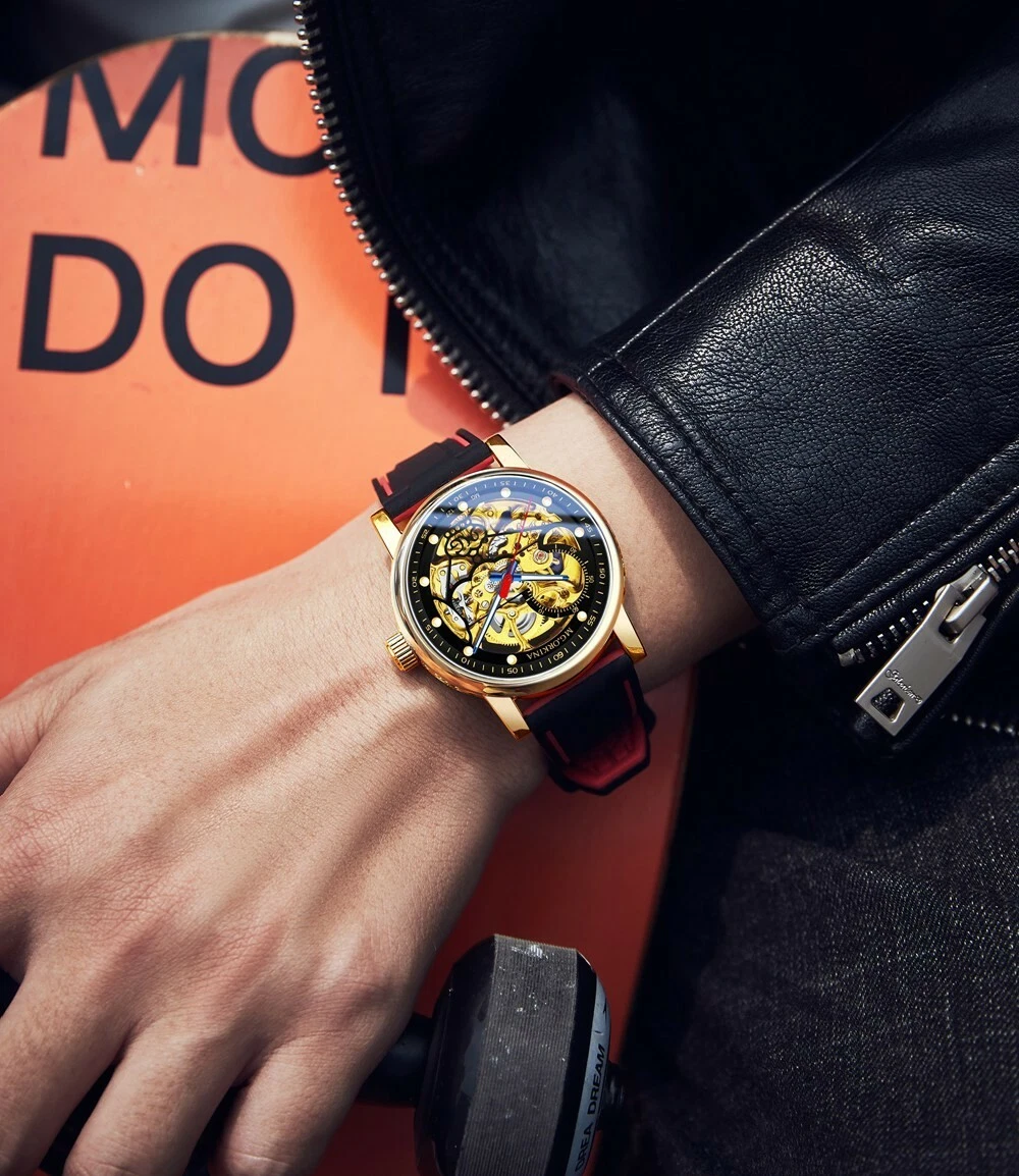 New Men's Transparent Skeleton Dial Self-wind Mechanical Watch