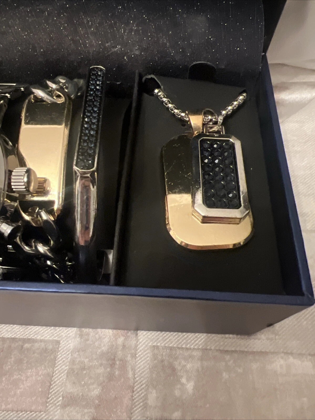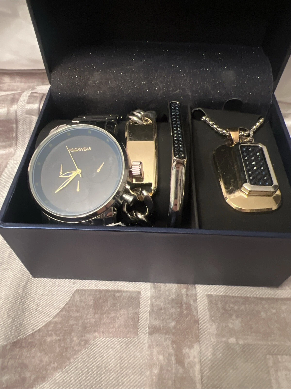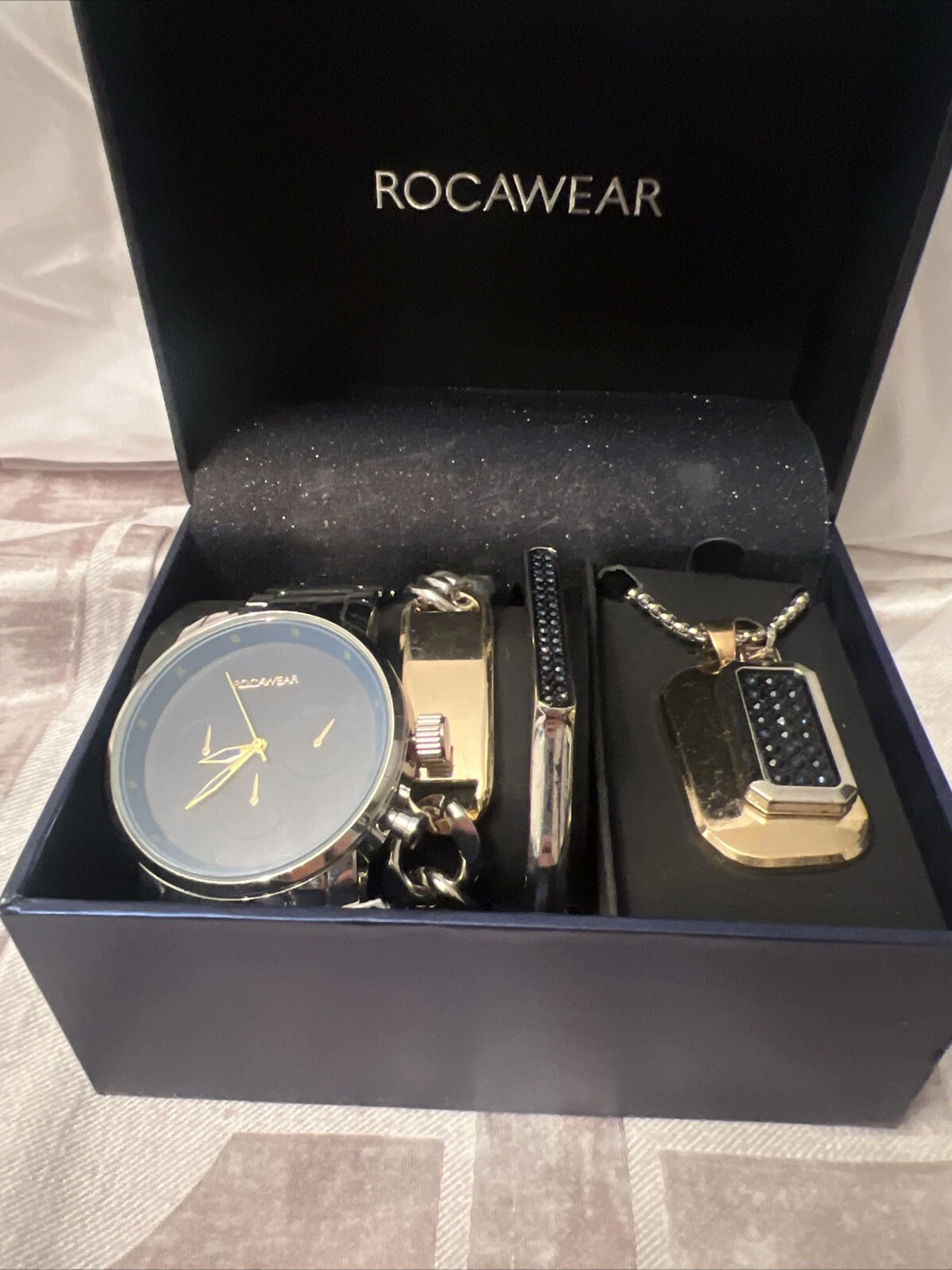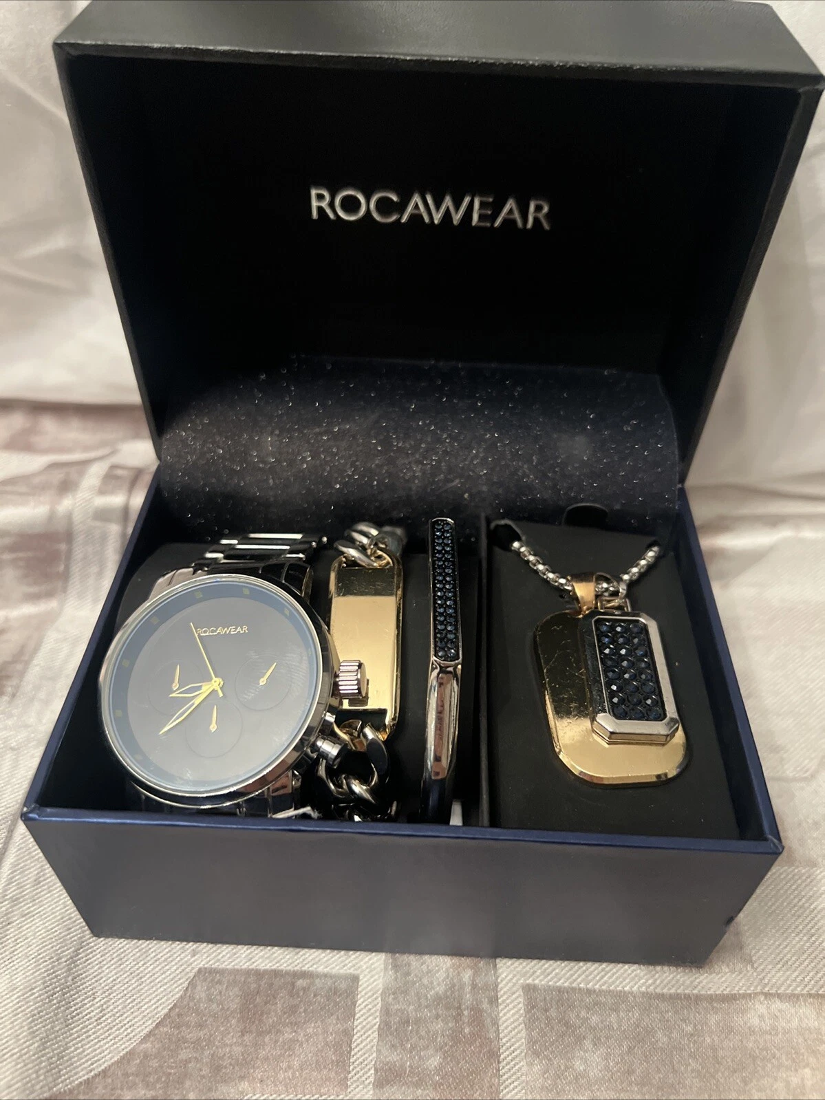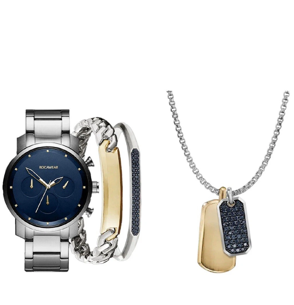 Rocawear Men's Chronograph Quartz Metal Strap Analog Watch W/nexklace