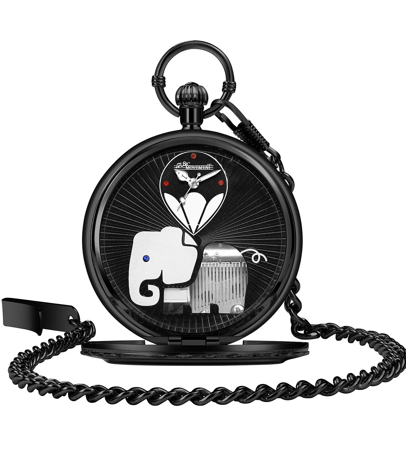 Pocket Watch Music Box Music Movement Skeleton Oversized Quartz Pendant Watches