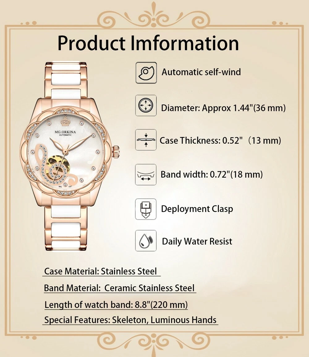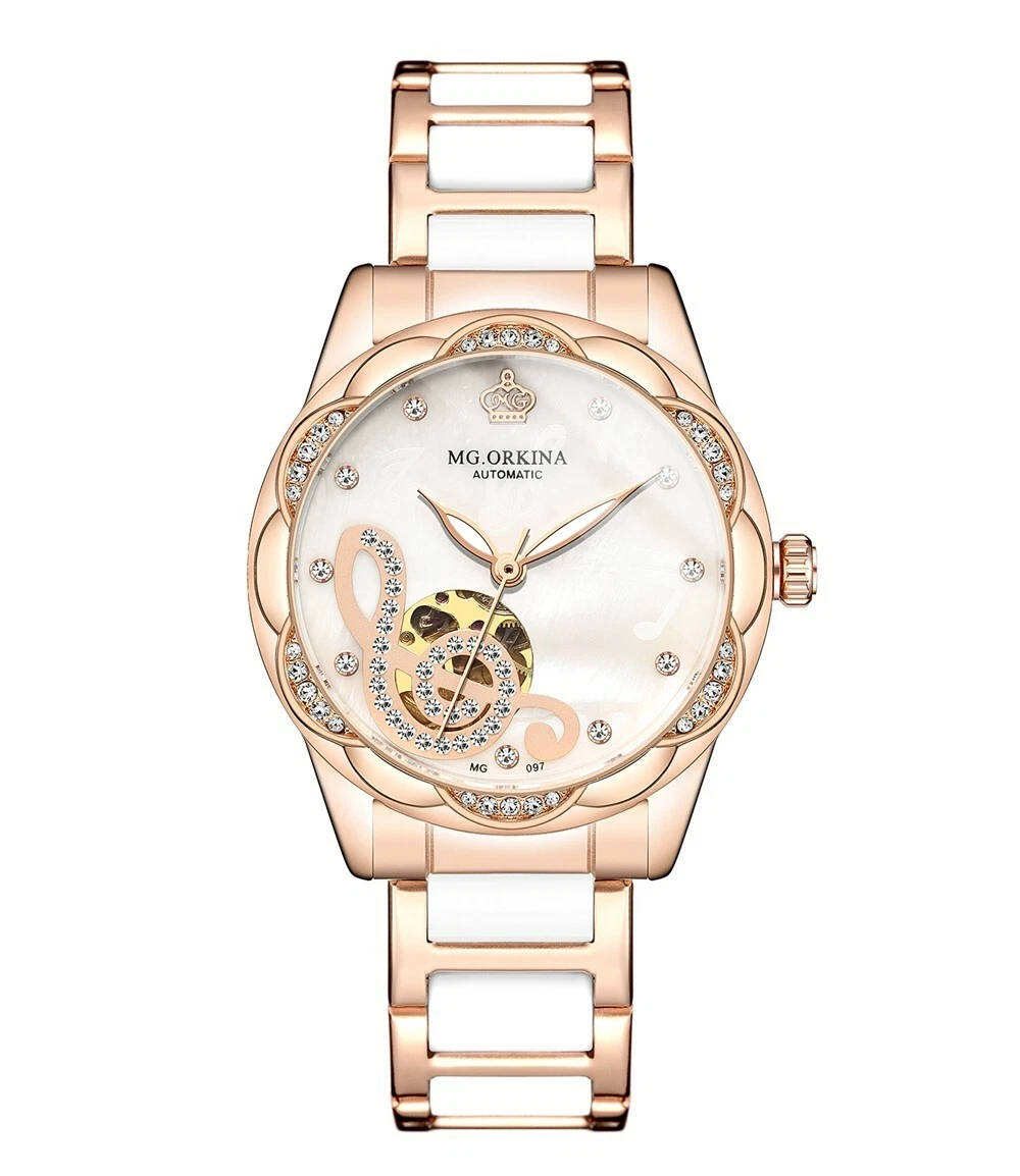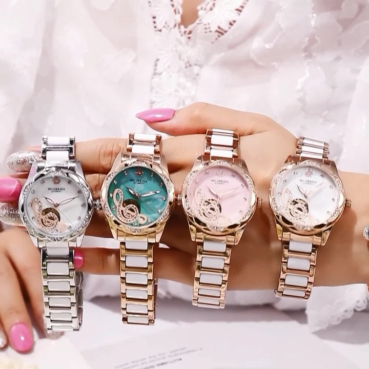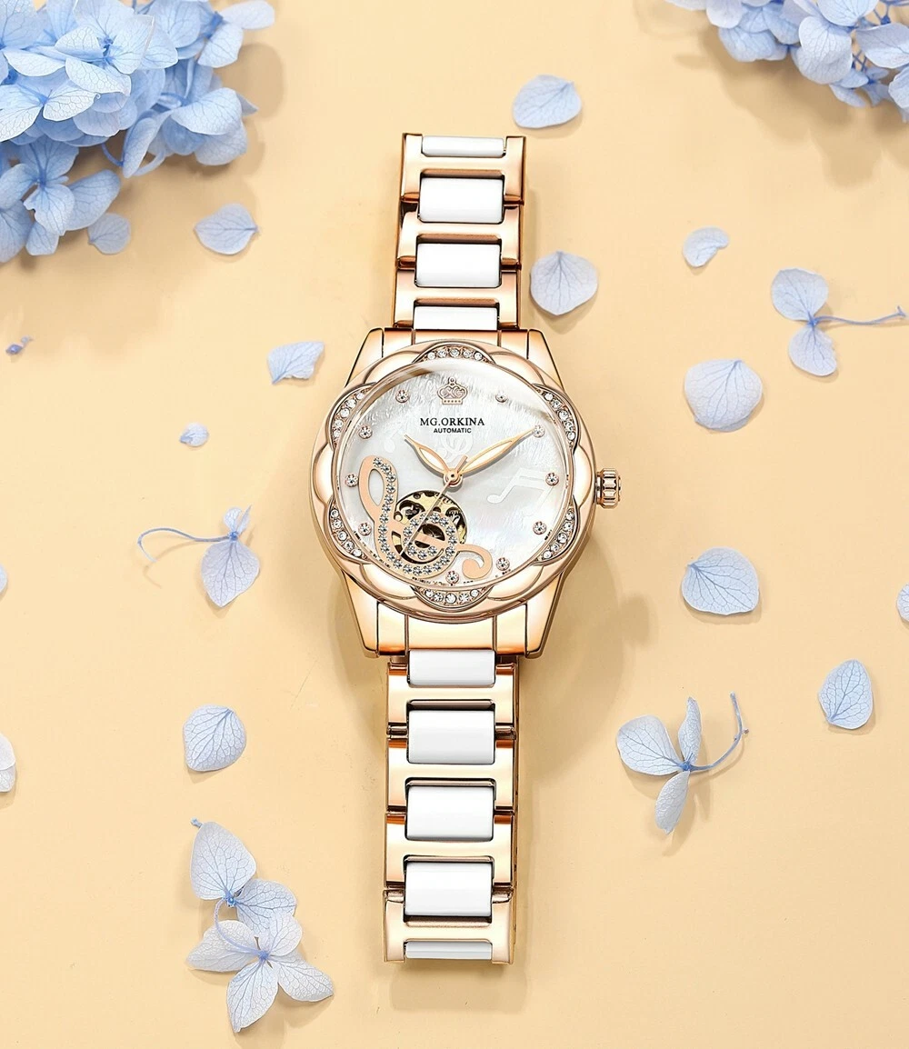 New Women Mechanical Wristwatches Hollow Crystal Petal Shape Automatic Watch
