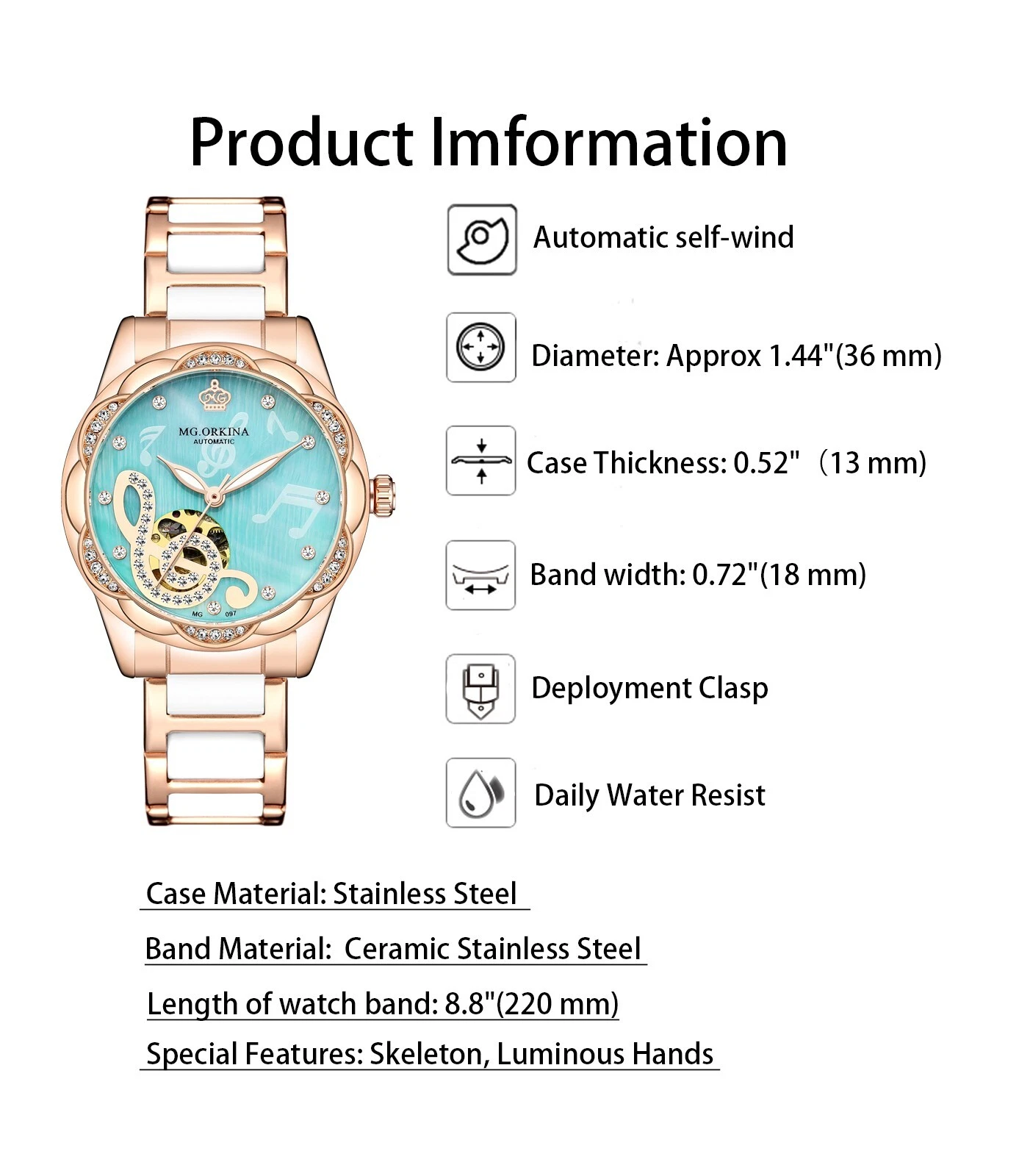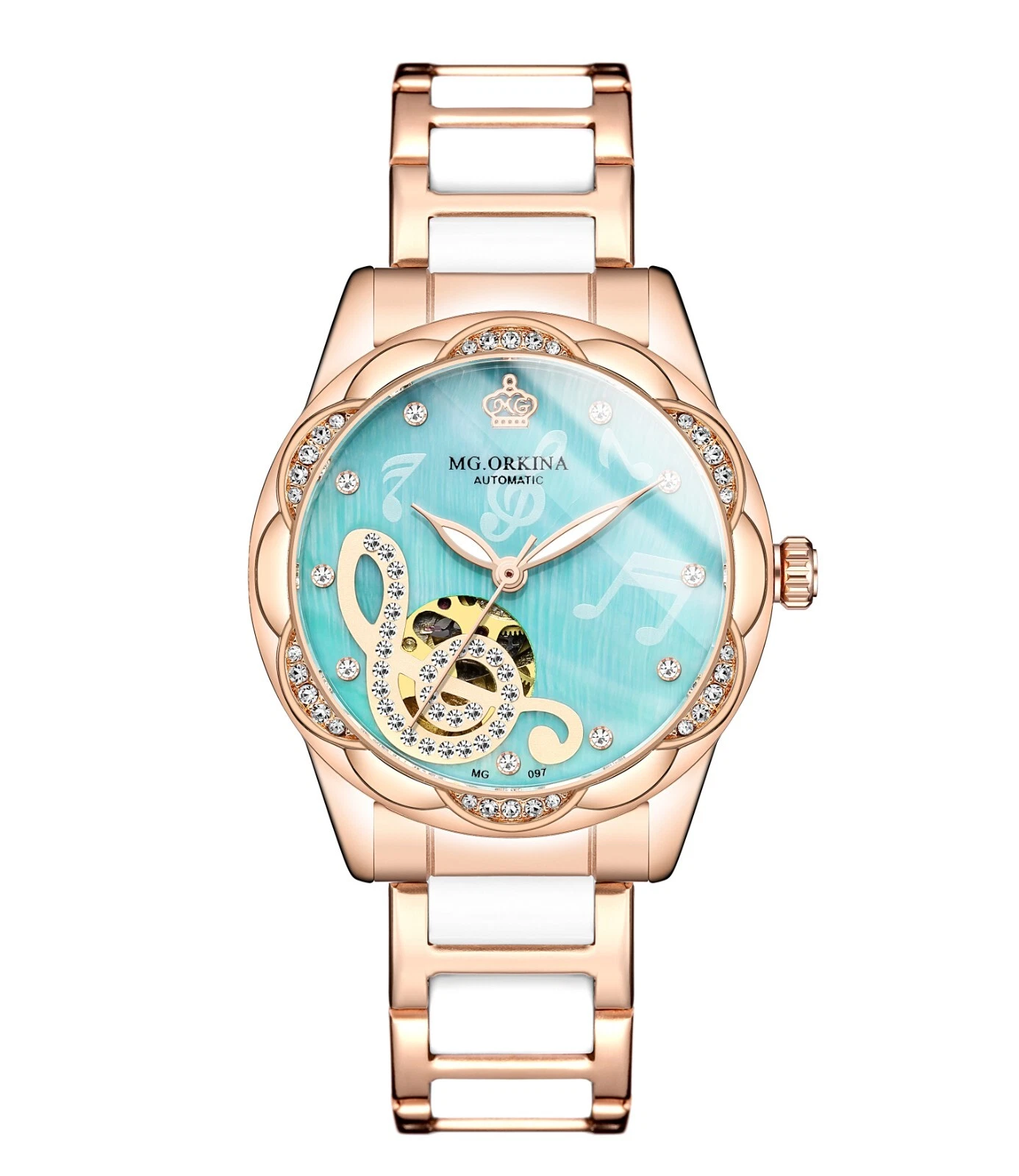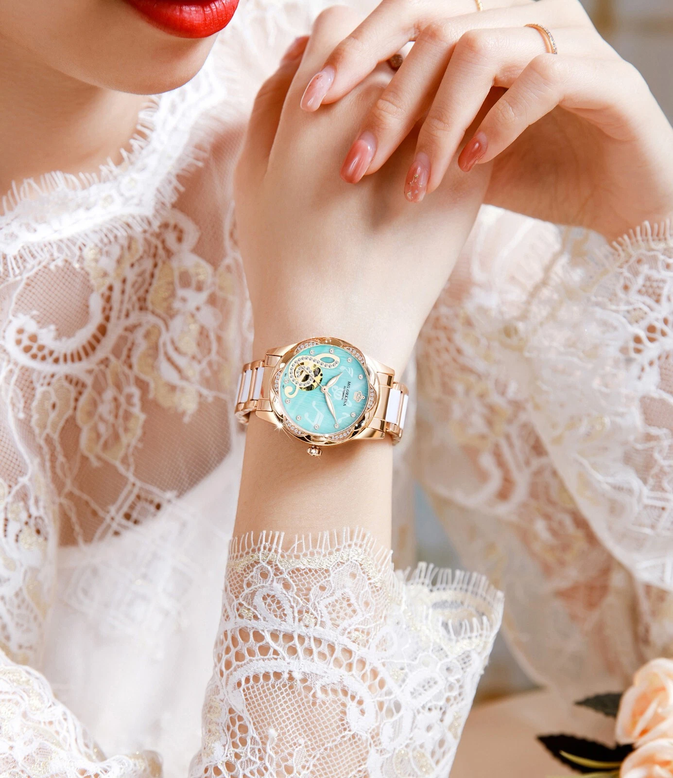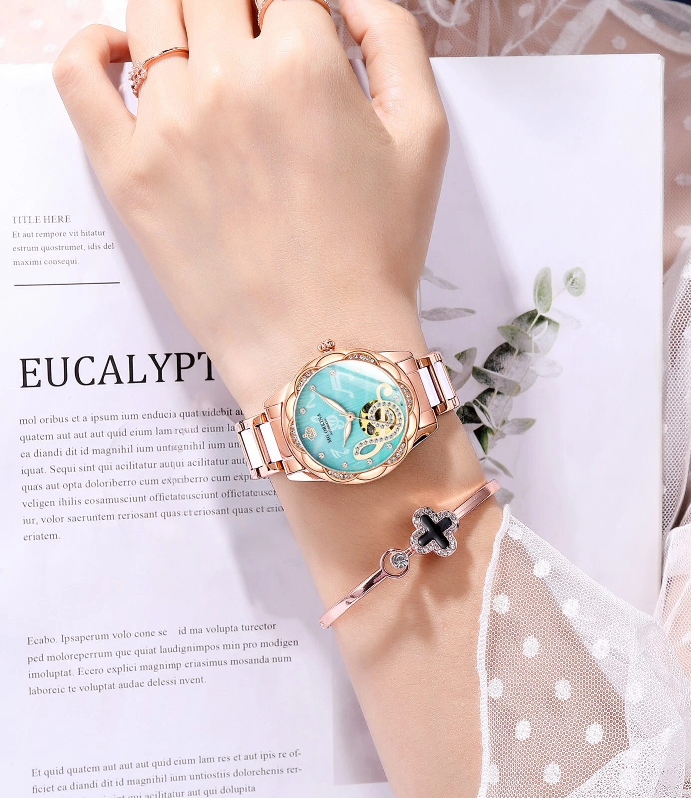 New Women Mechanical Wristwatches Hollow Crystal Petal Shape Automatic Watch