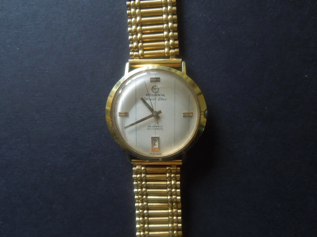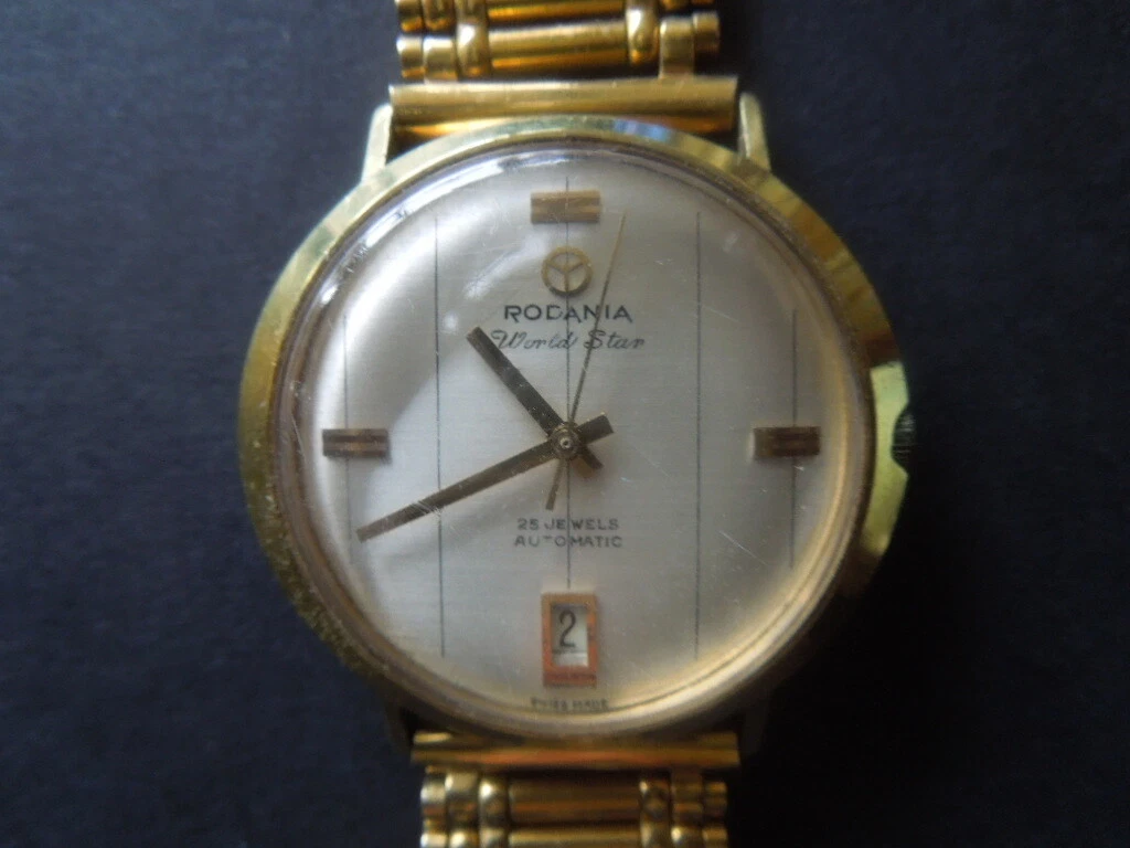 J1420  WRISTWATCH RODANIA 1970s  AUTOMATIC  25 JEWELS  GOLD  PLATED SEE DESCRIP