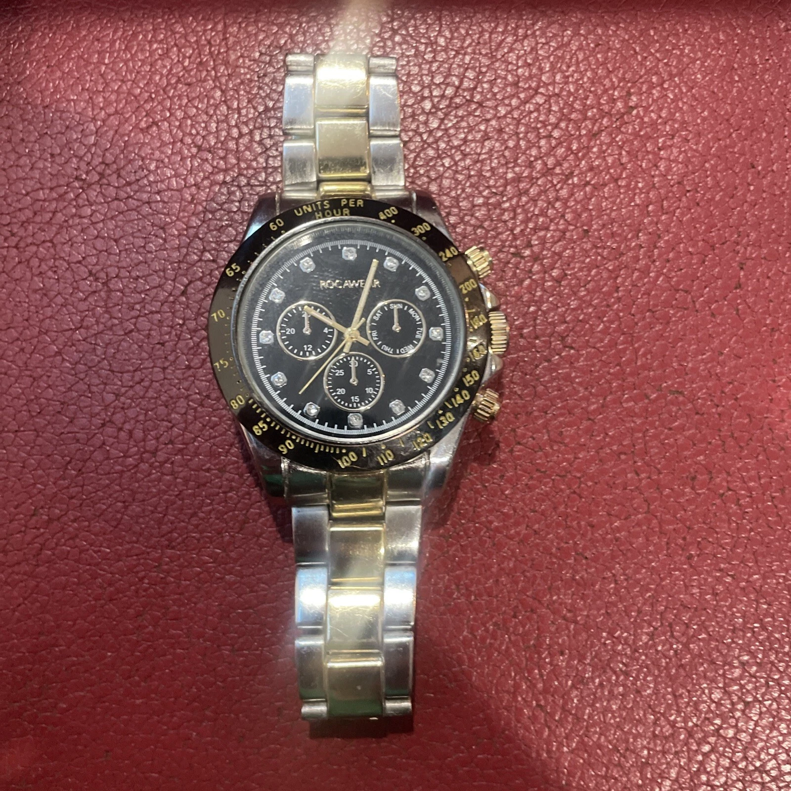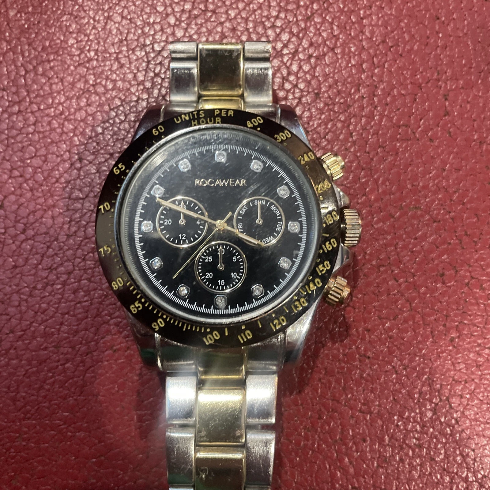 rocawear RM 9105 mens stainless steel silver and gold watch. read description