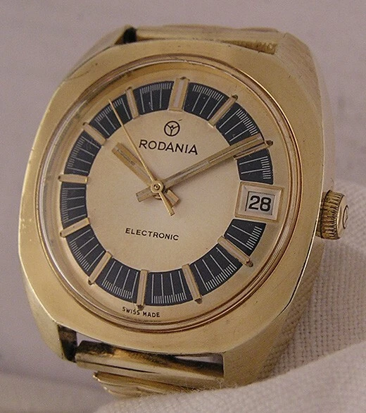 Vintage RODANIA ELECTRONIC 1970's Swiss Gold Plated Wrist Watch Perfect Serviced