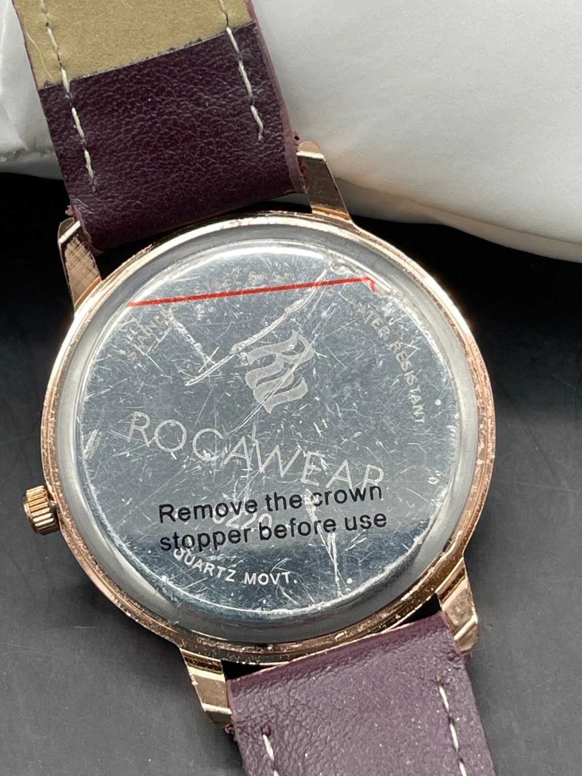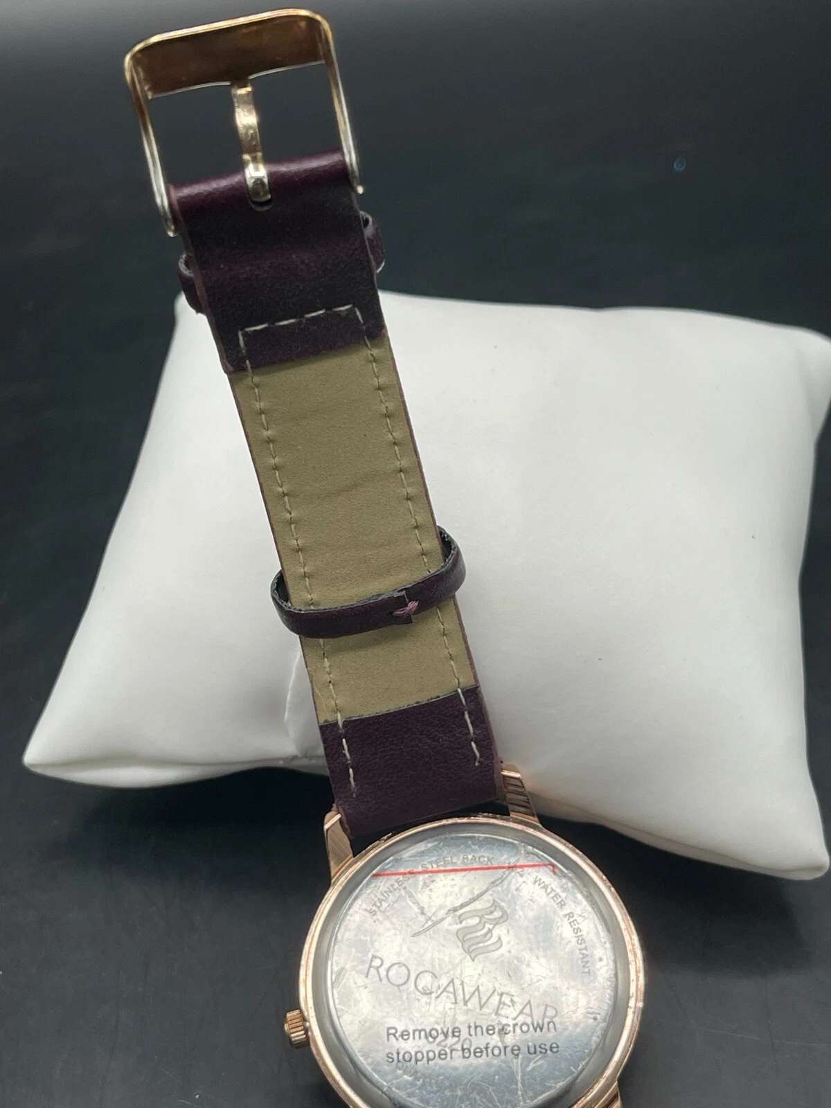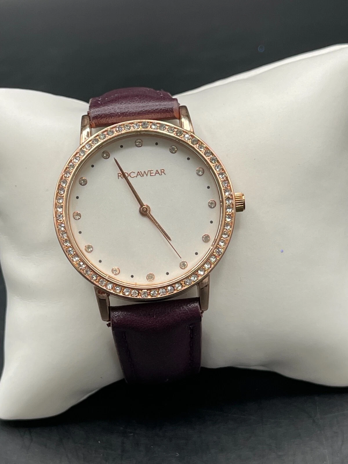 Rocawear Women's Watch Rose Gold Tone with rhinestones, Maroon Band