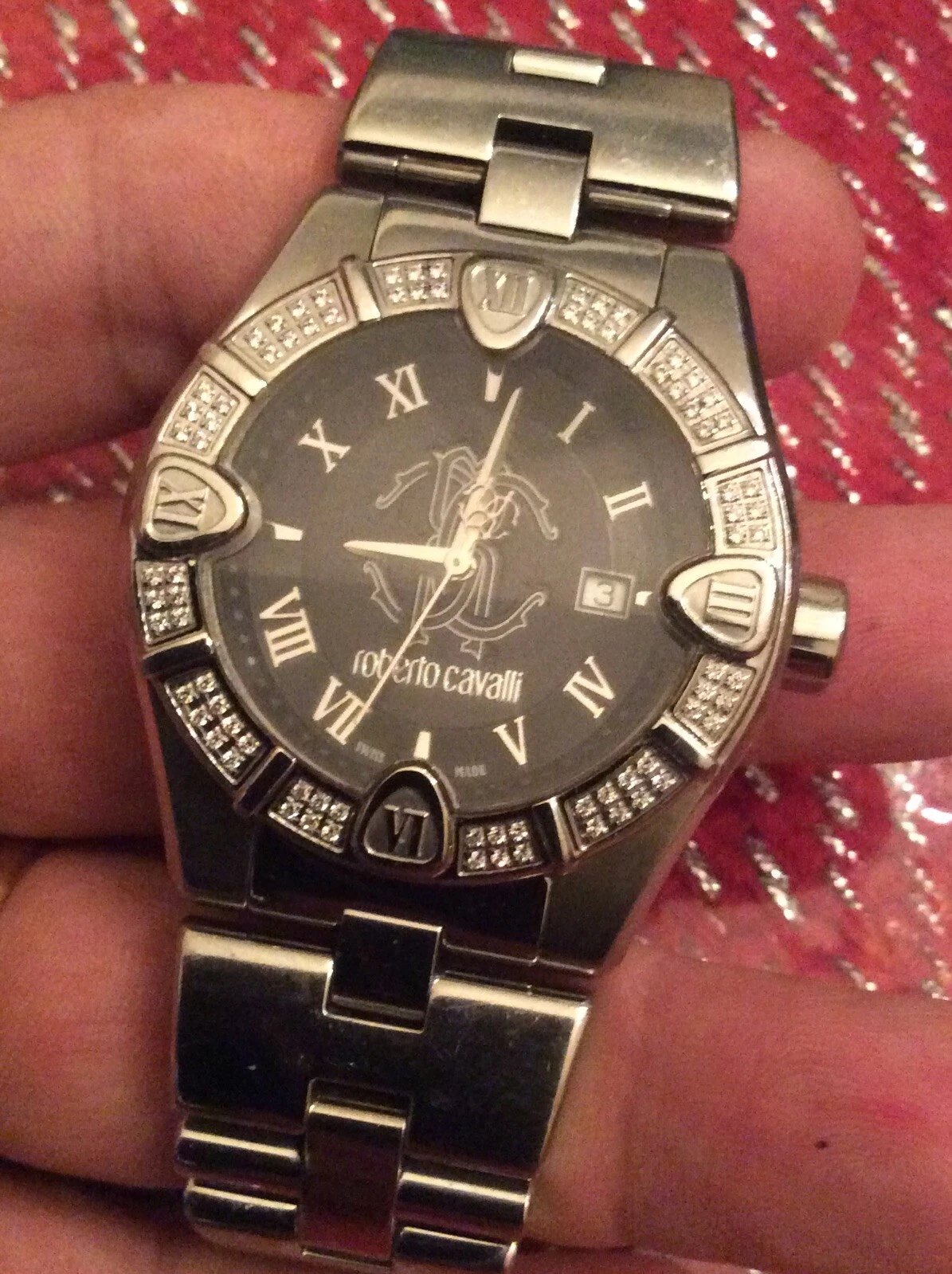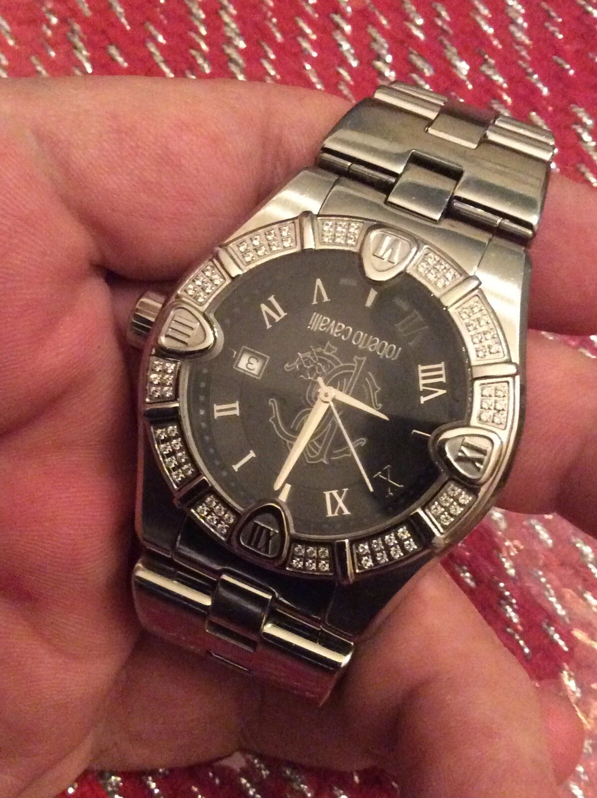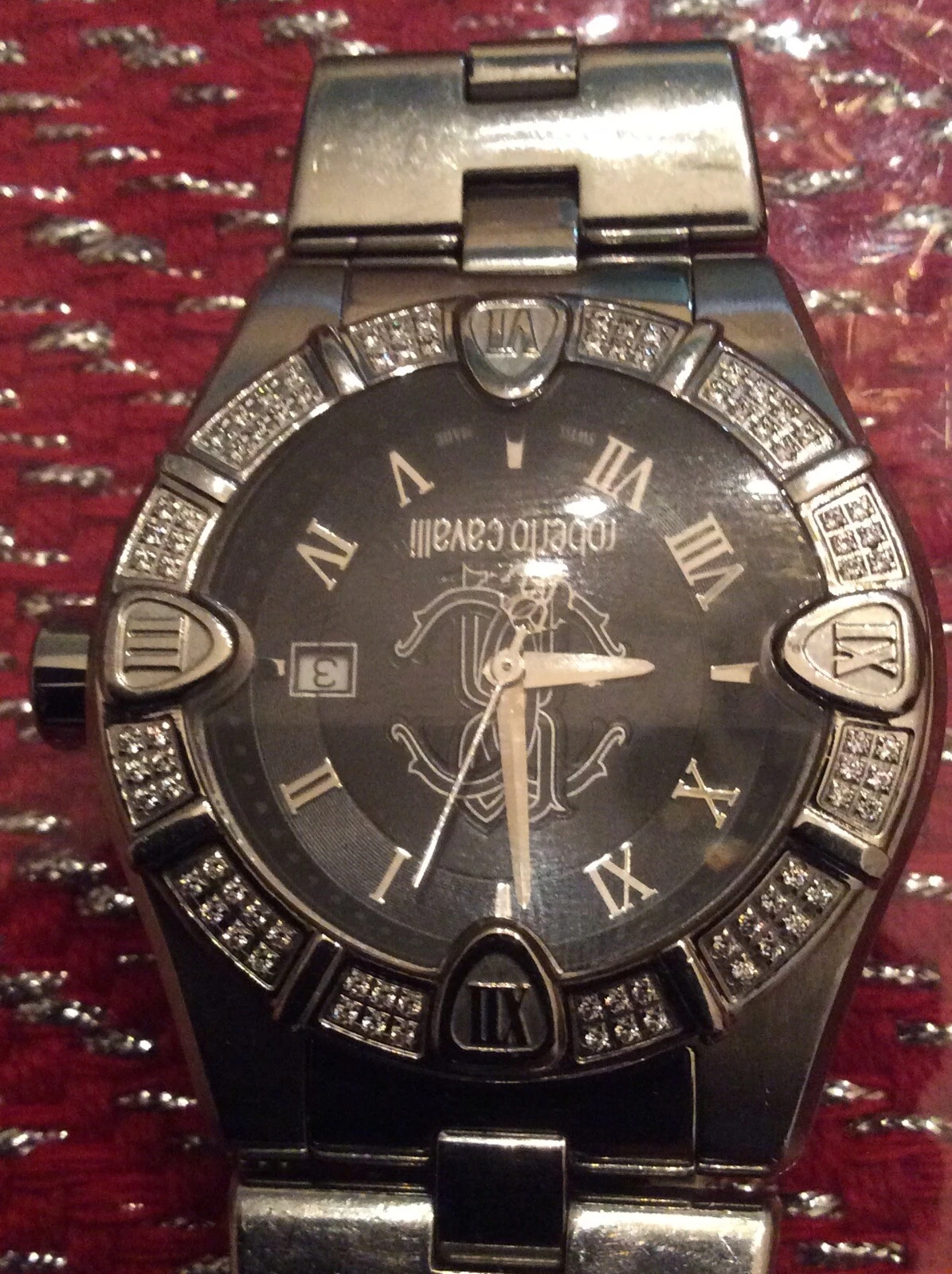 Roberto Cavalli R7253116525 Diamond Time Men's Analog Date Clear Stones Watch