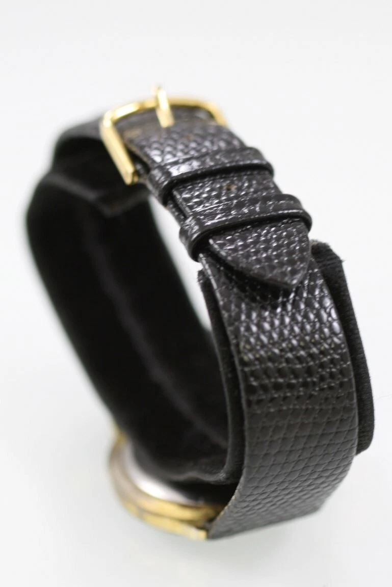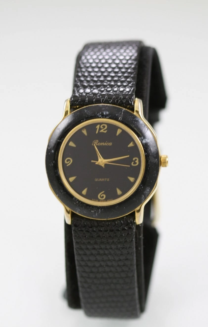 Ronica Watch Men Midsize Gold Stainless Steel WR Black Leather Battery Quartz
