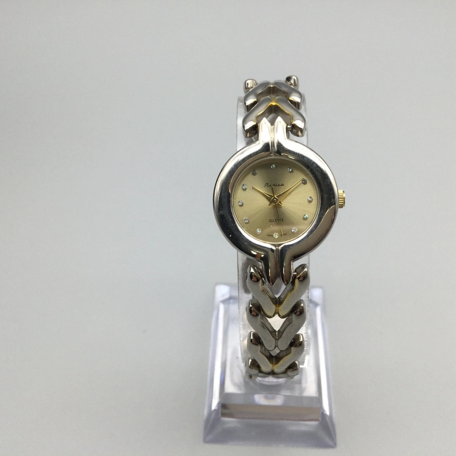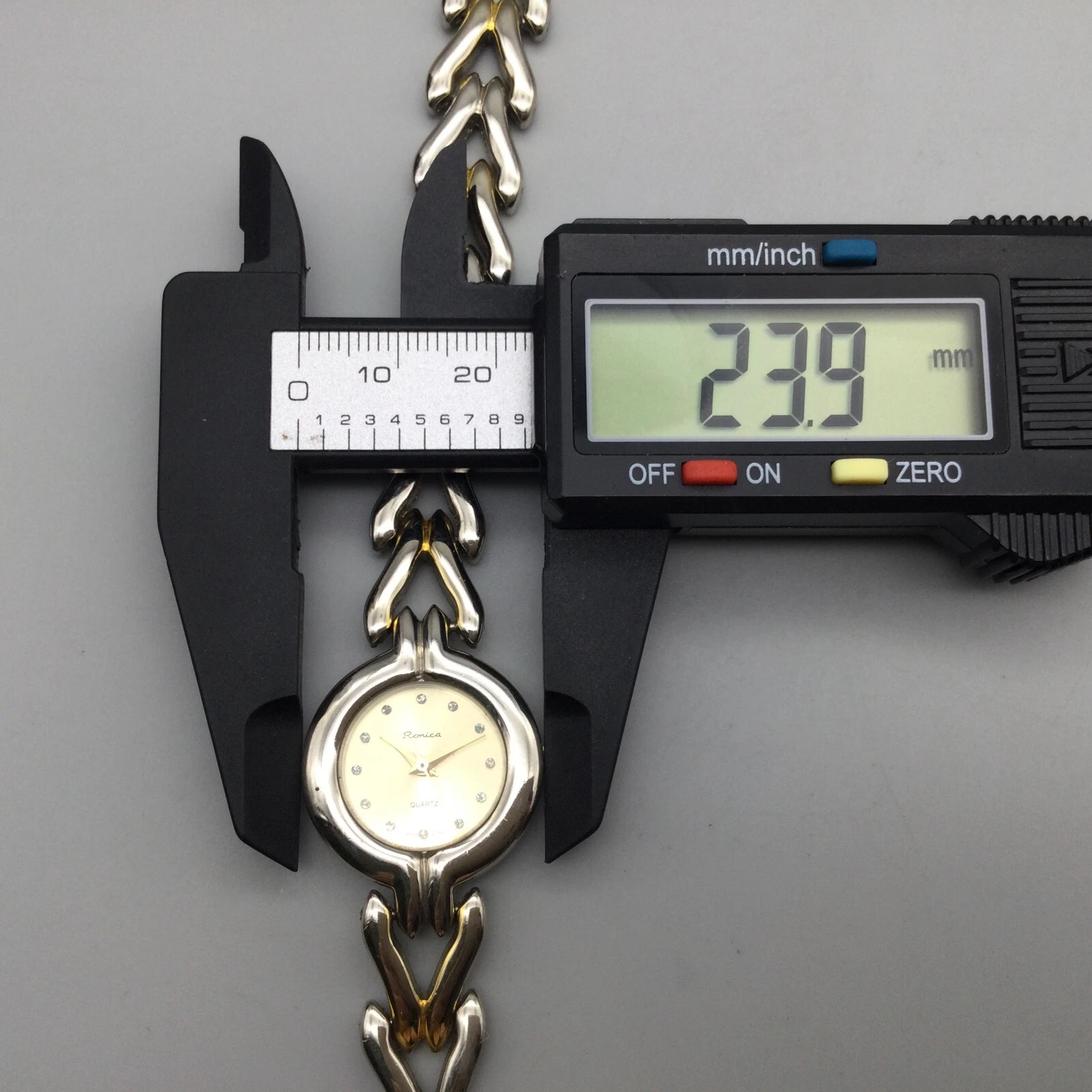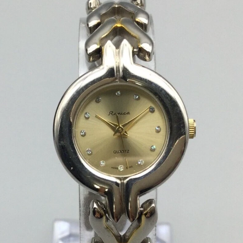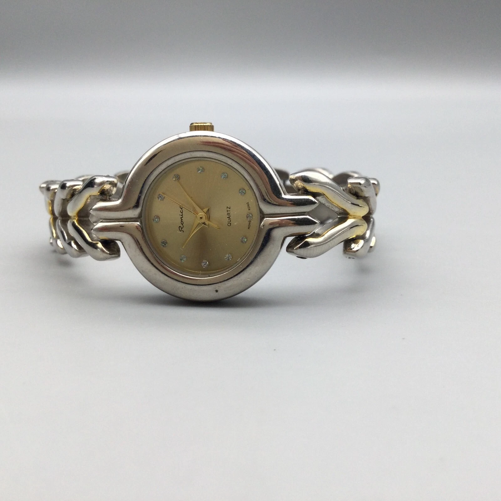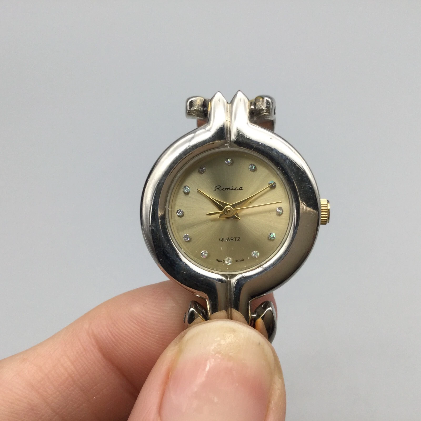 VIntage Ronica Watch Women 24mm Silver Gold Tone Bling New Battery 6.75"