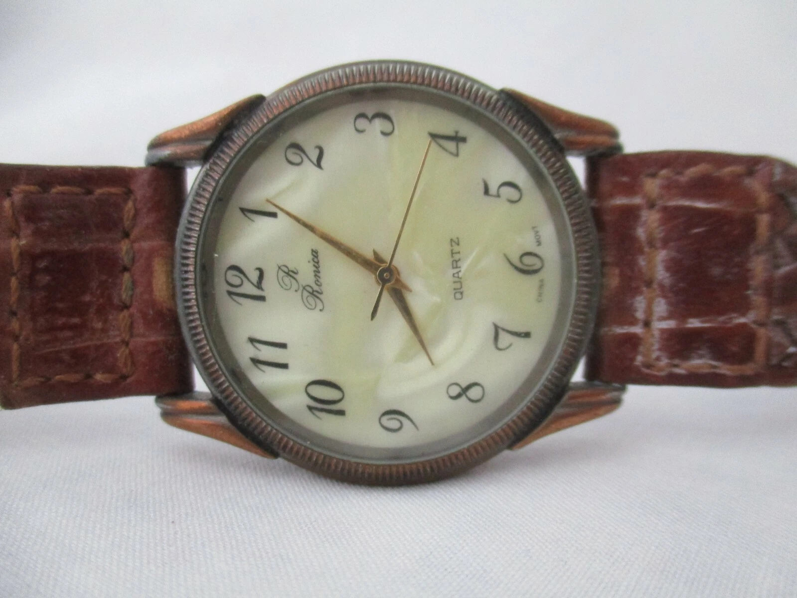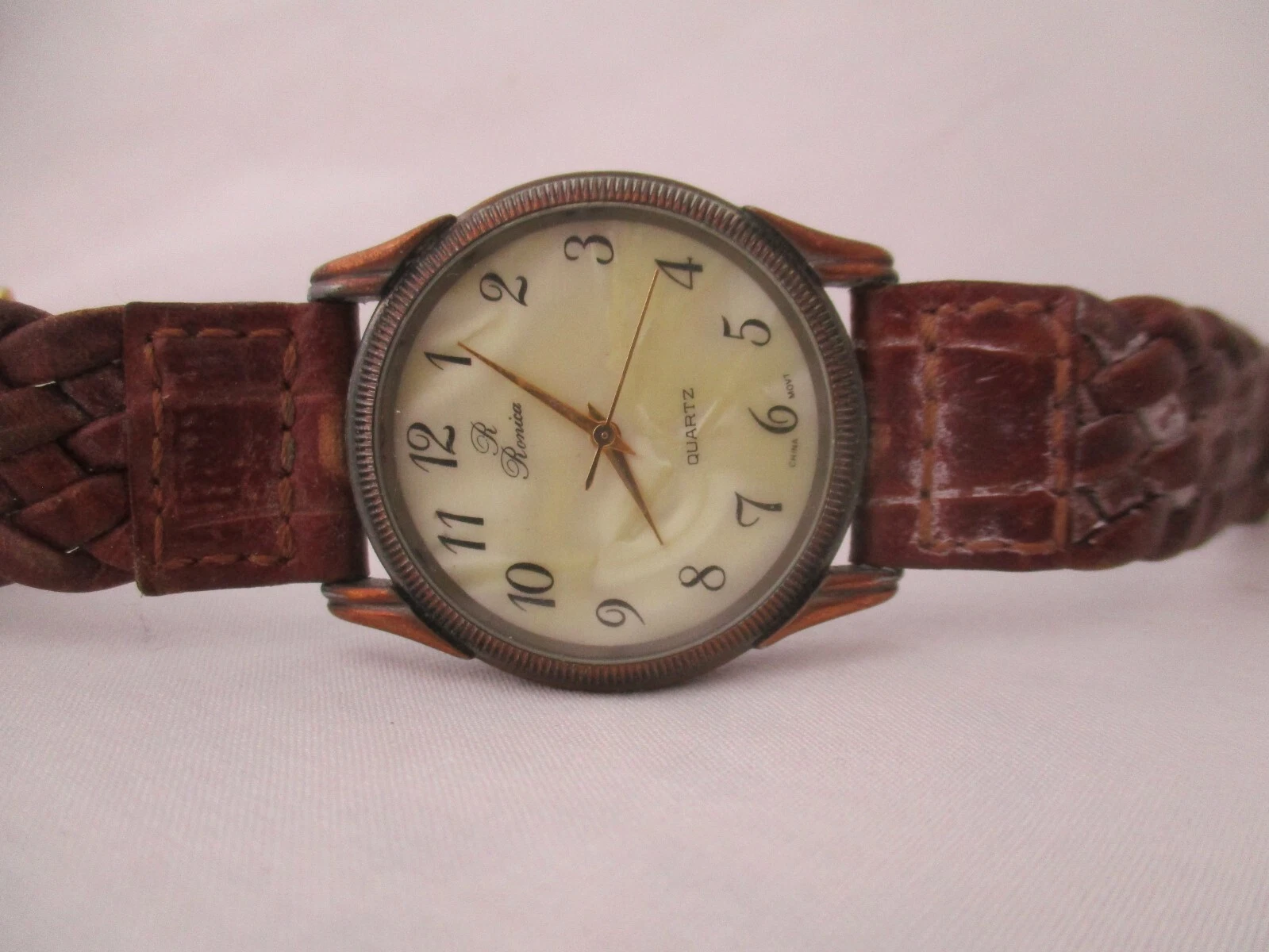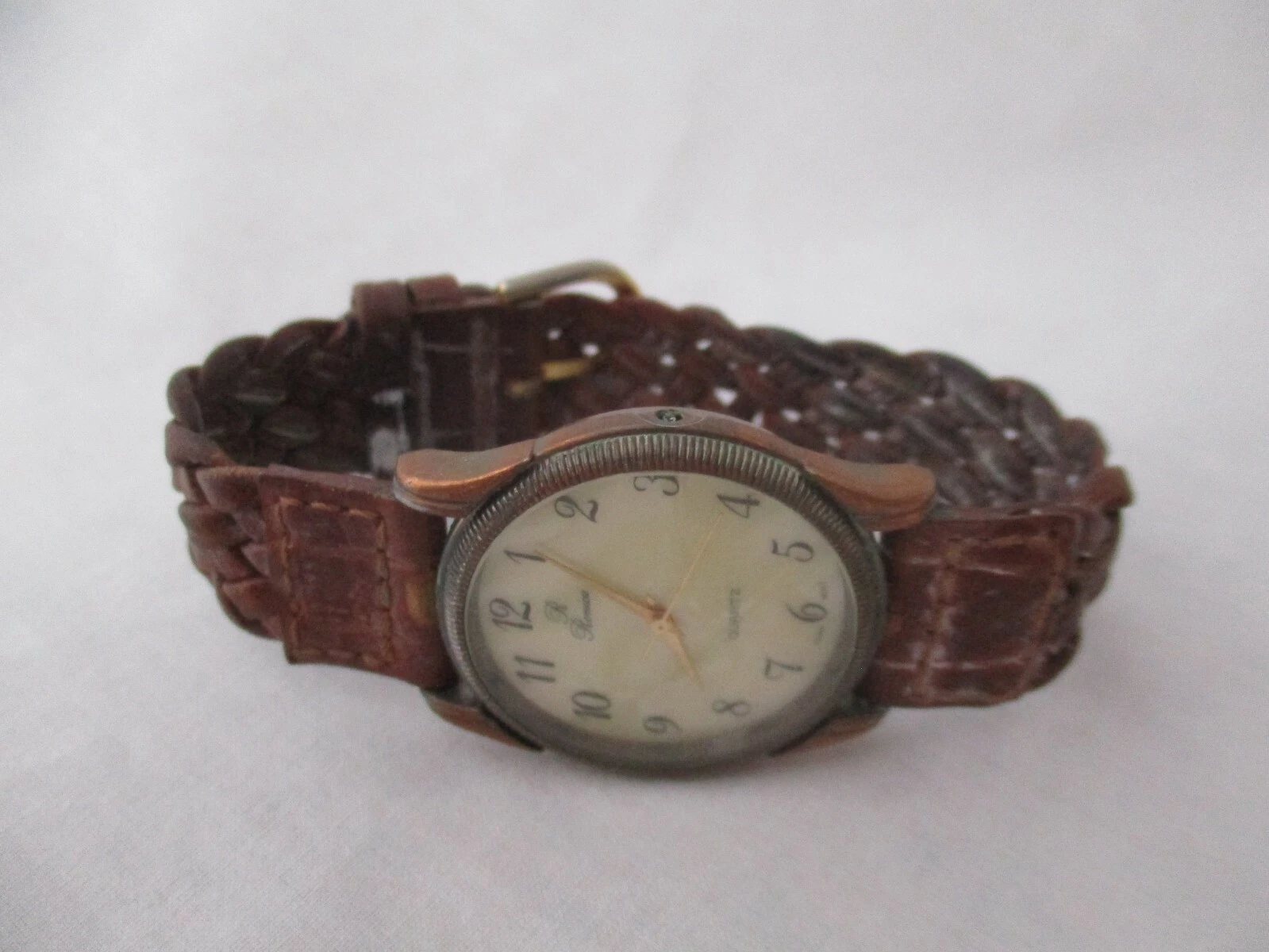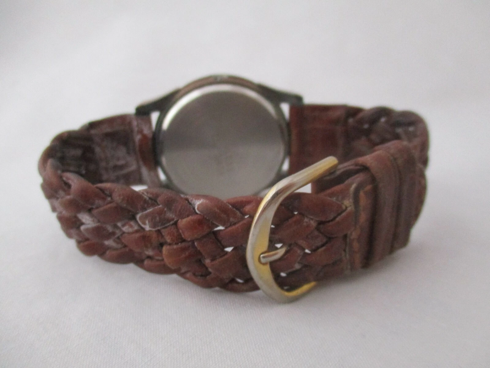 Ronica Wristwatch Brown Woven Buckle Band Round Face
