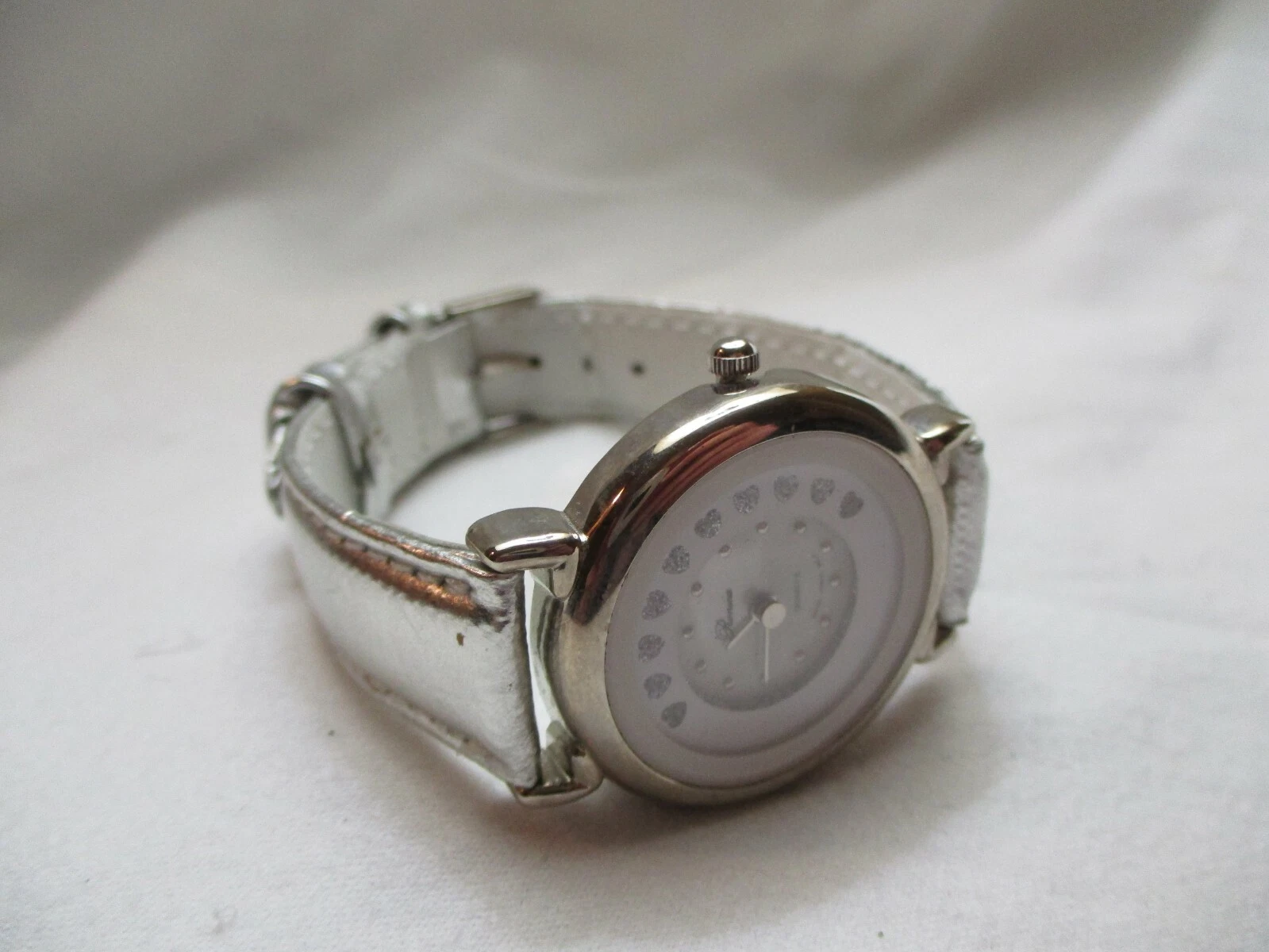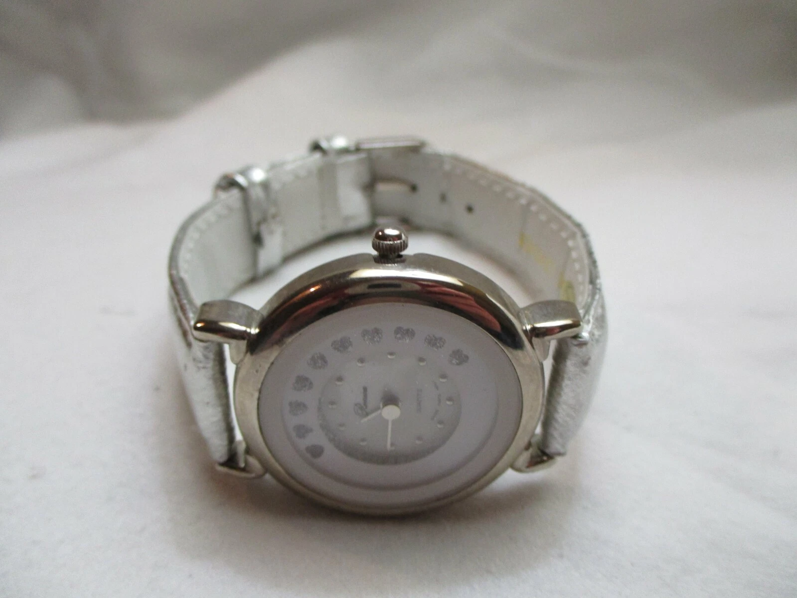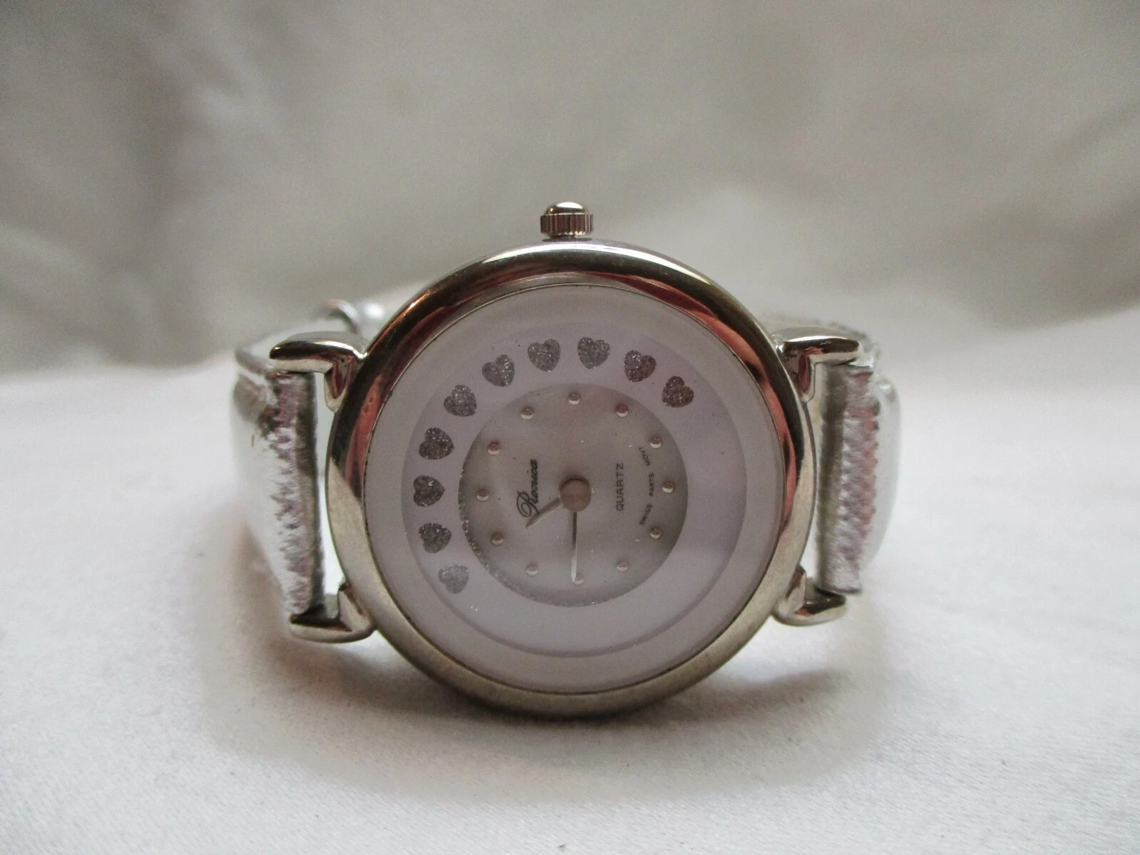 Ronica Wristwatch Silver Tone Leather Buckle Band Round White Face Sparkly