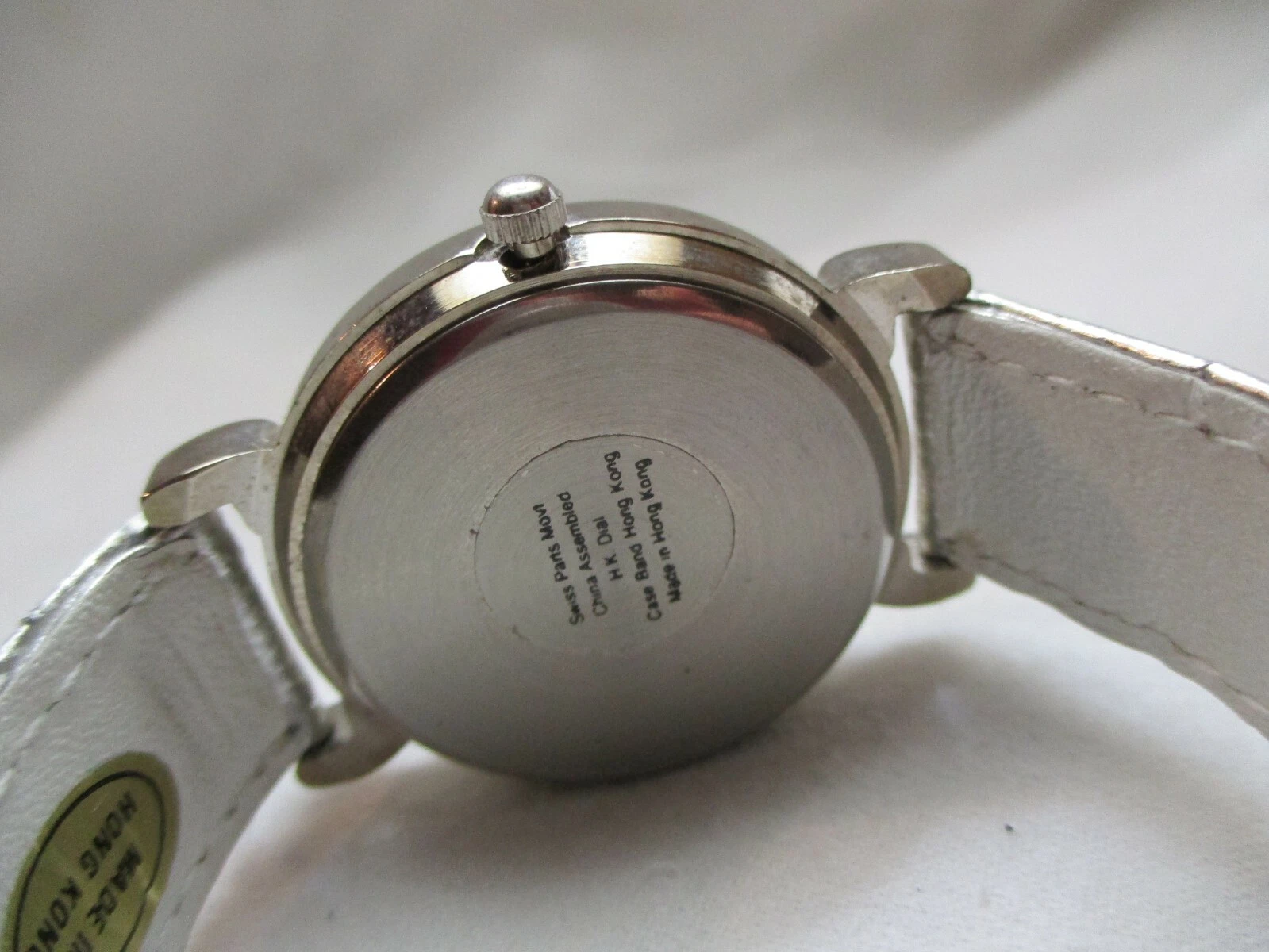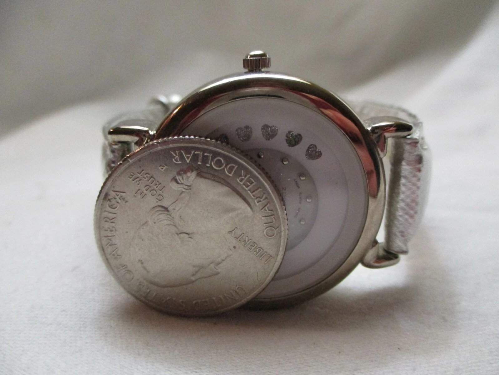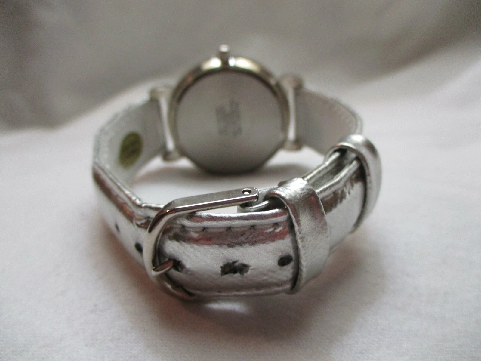 Ronica Wristwatch Silver Tone Leather Buckle Band Round White Face Sparkly