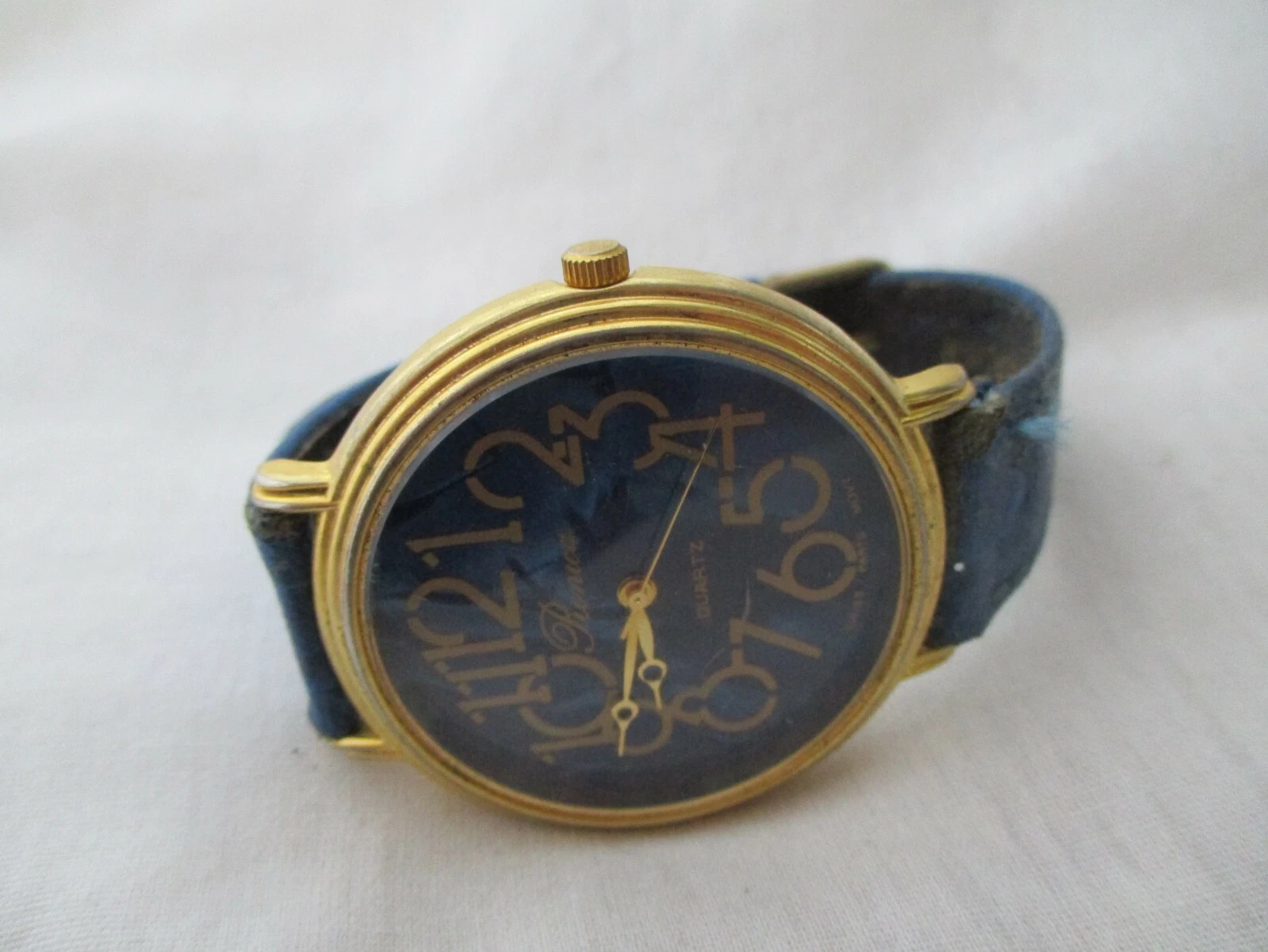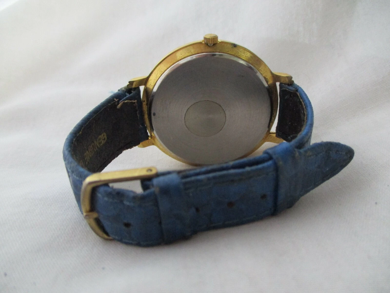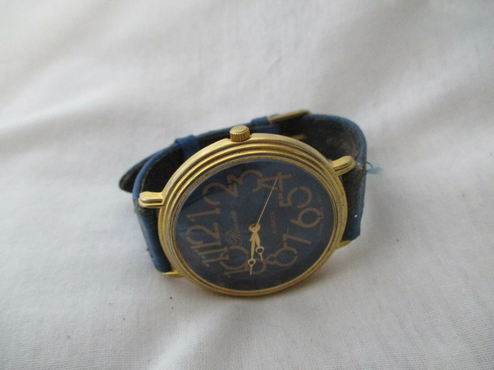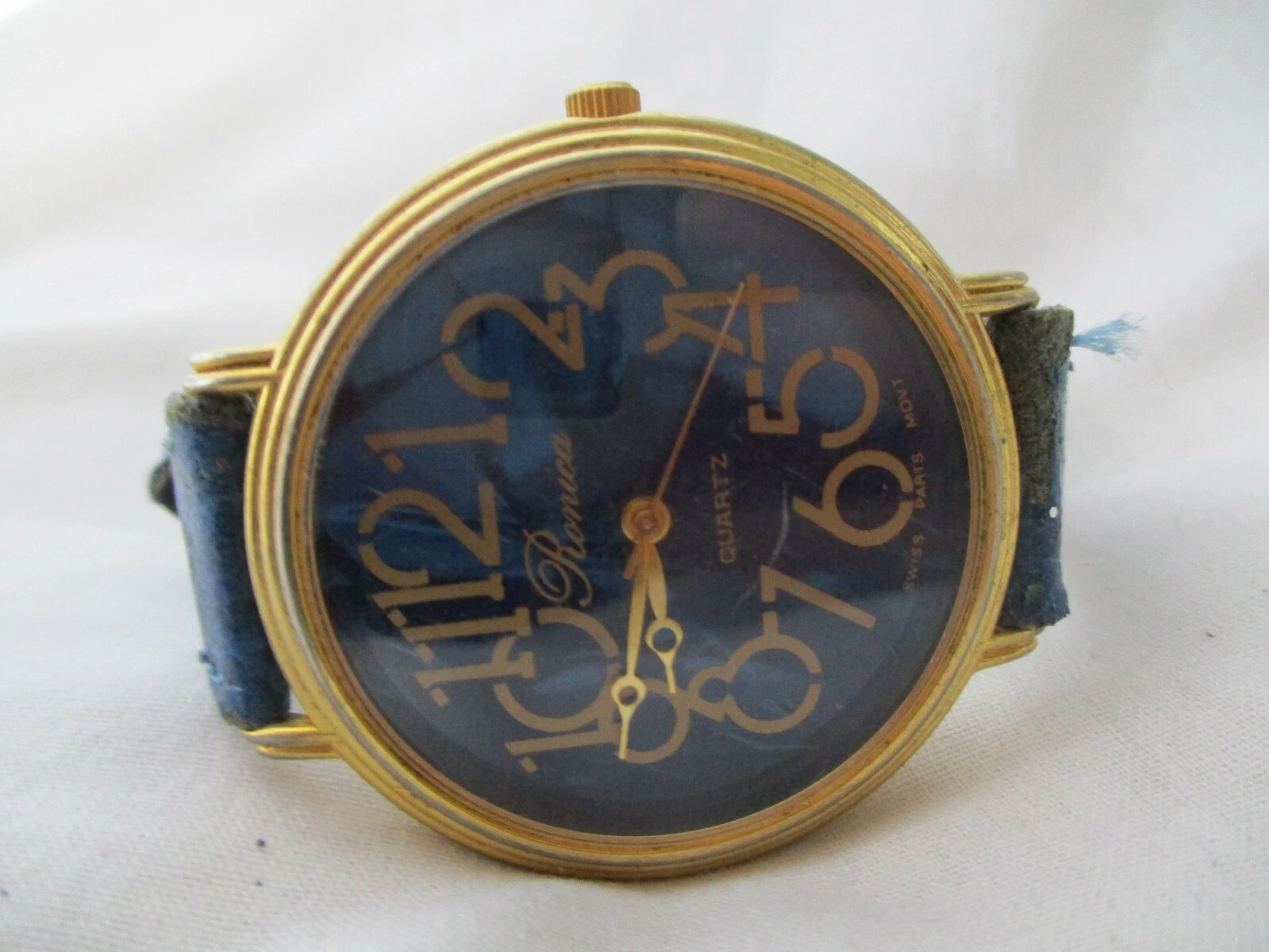 Ronica Swiss Parts Watch Blue & Gold Toned Leather Band Stylish WORKING!