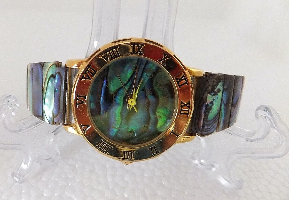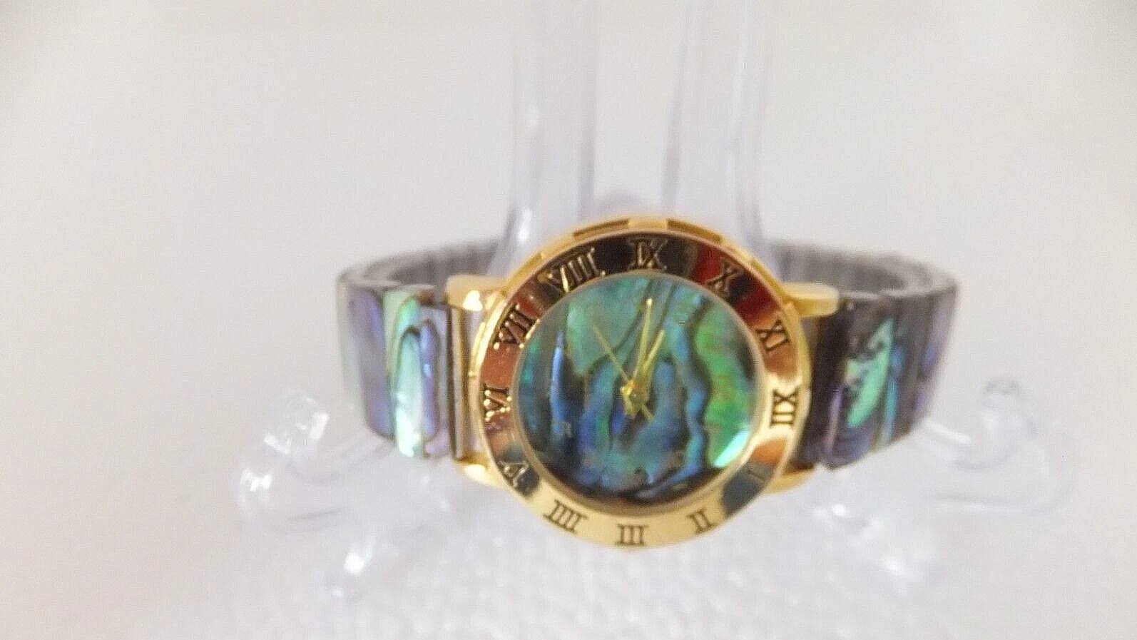 Ronica Women's Gold Tone Abalone Stretch Analog Quartz  Vintage Battery Needed