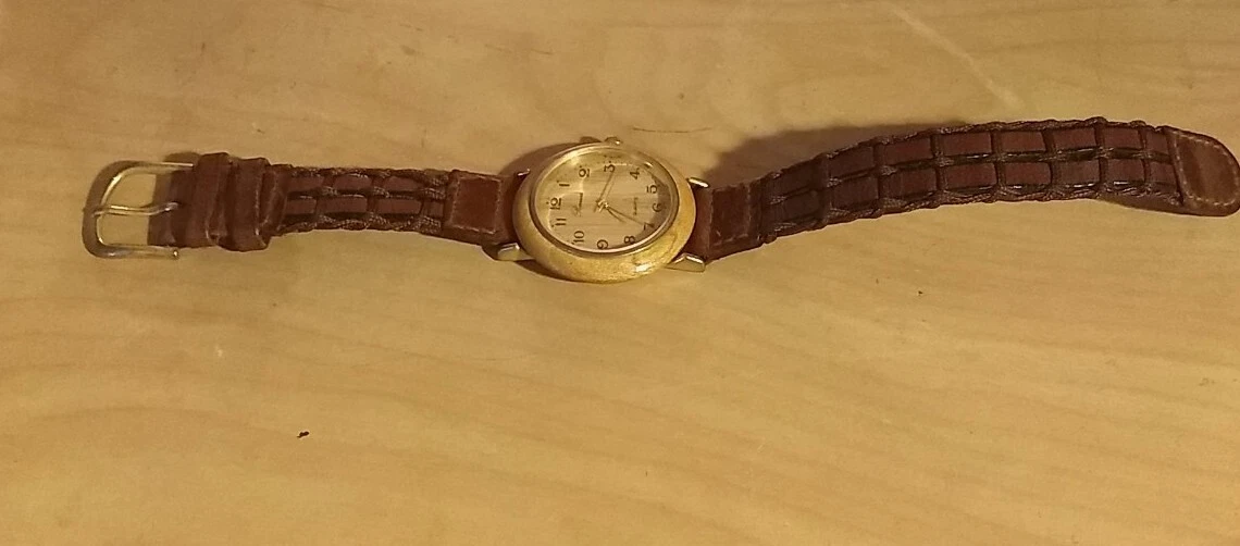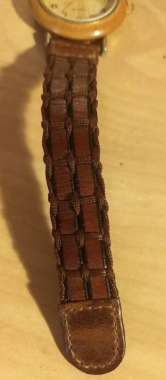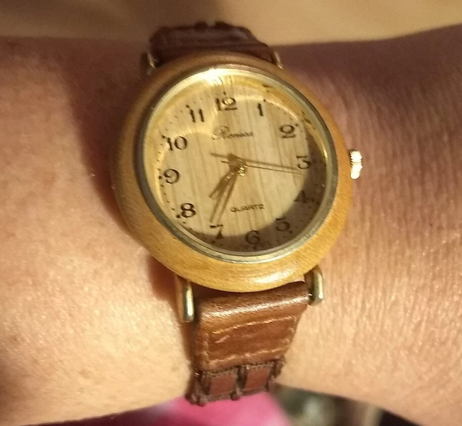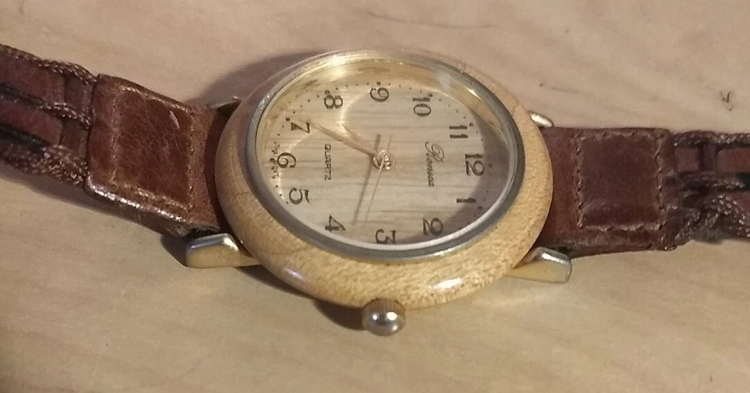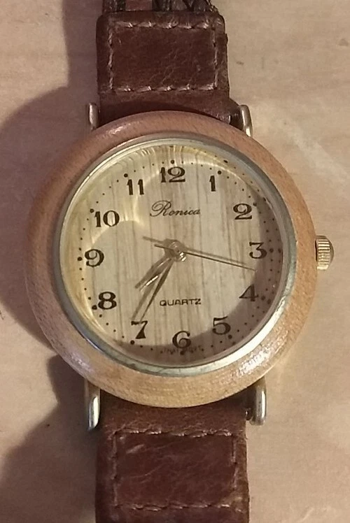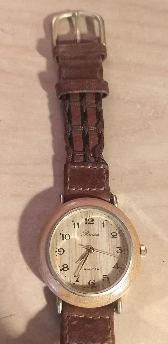Vintage Collectable Ronica Wood Grain Quartz Watch With Genuine Leather Band