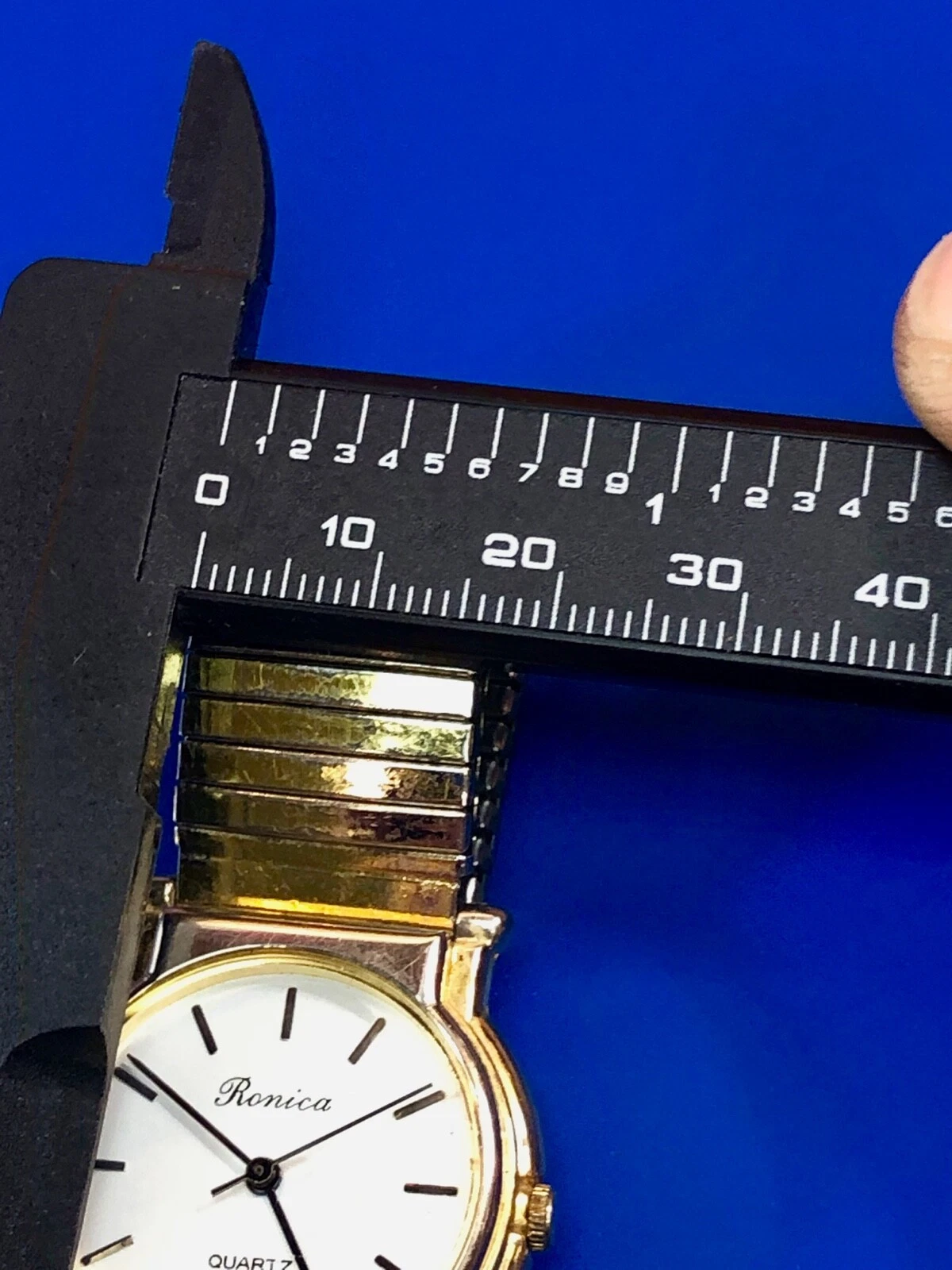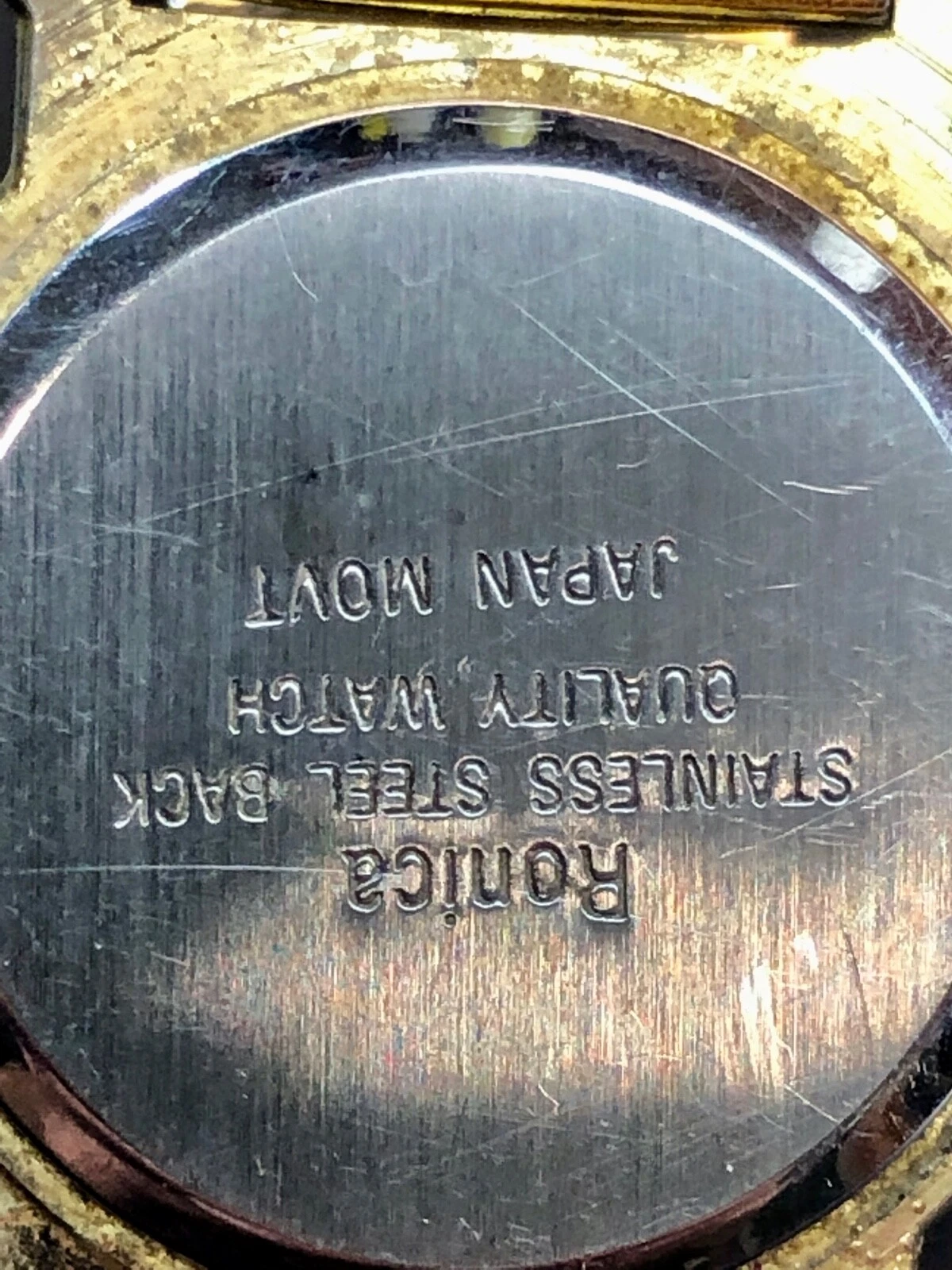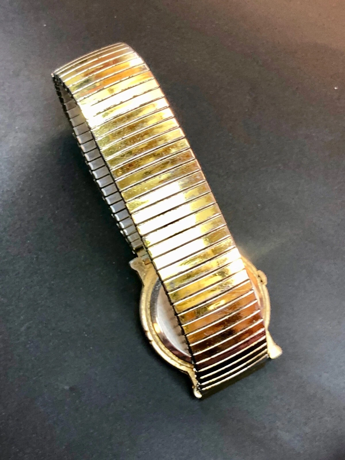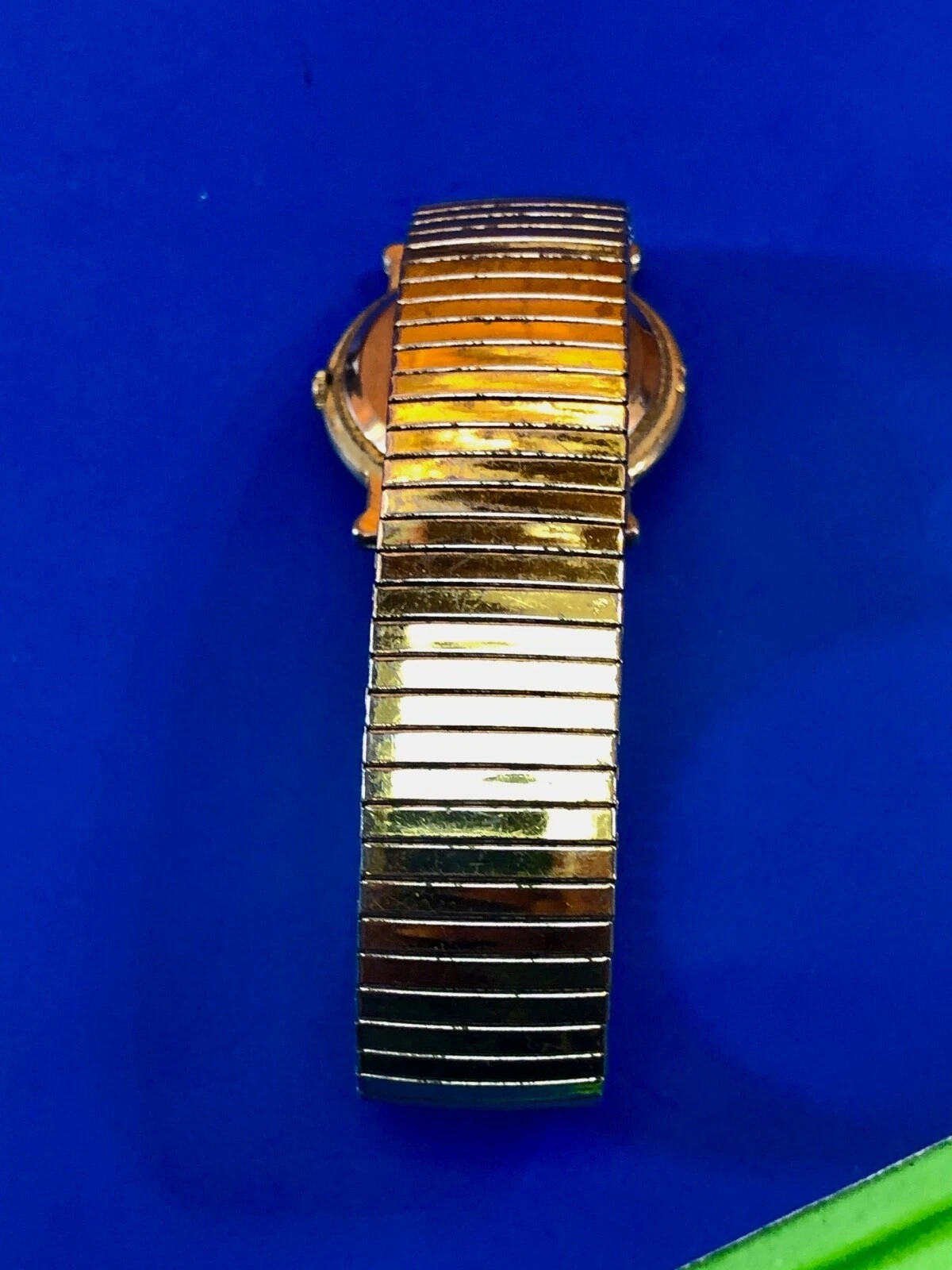Ronica Quartz WIDE gold tone stretch band ladies dress watch - new battery