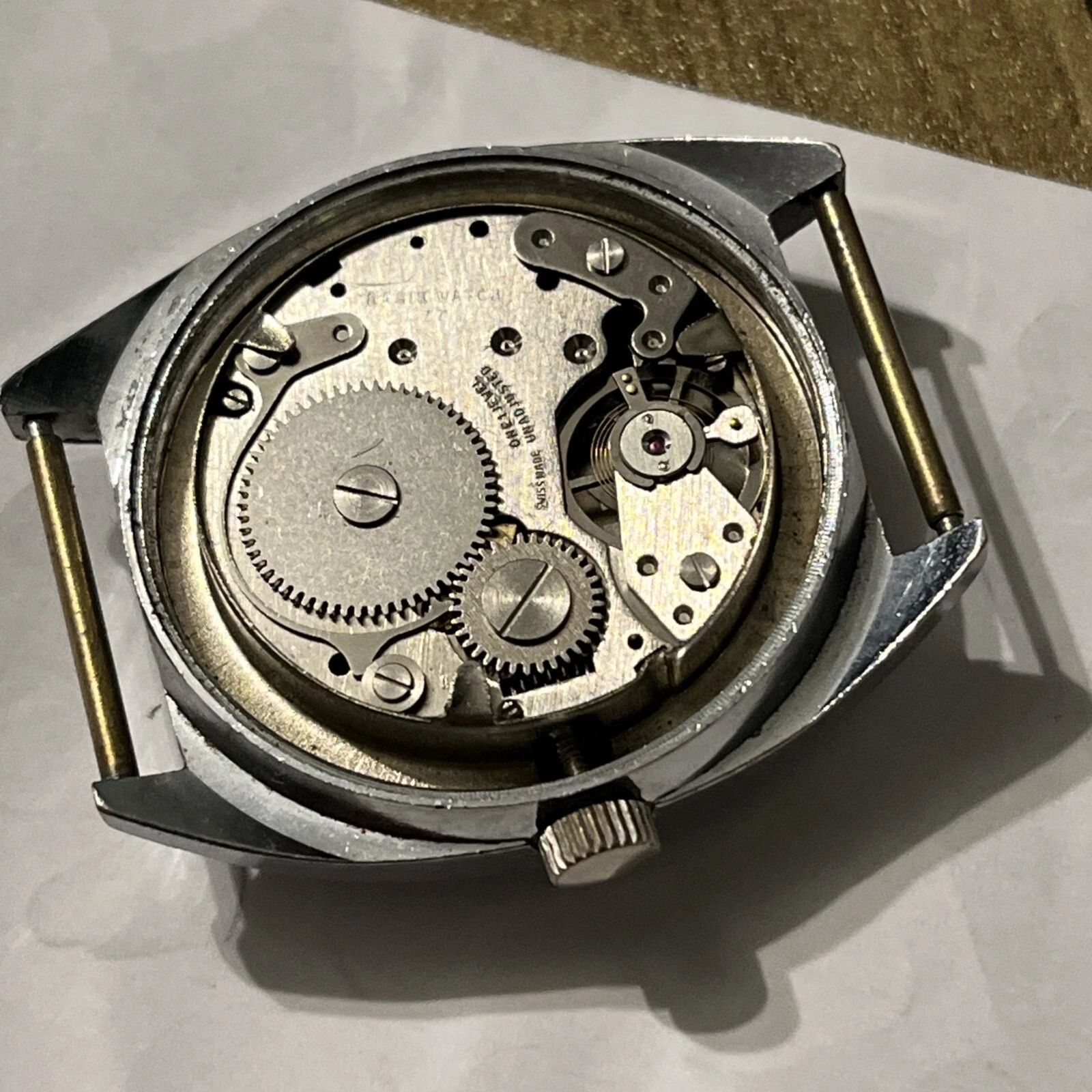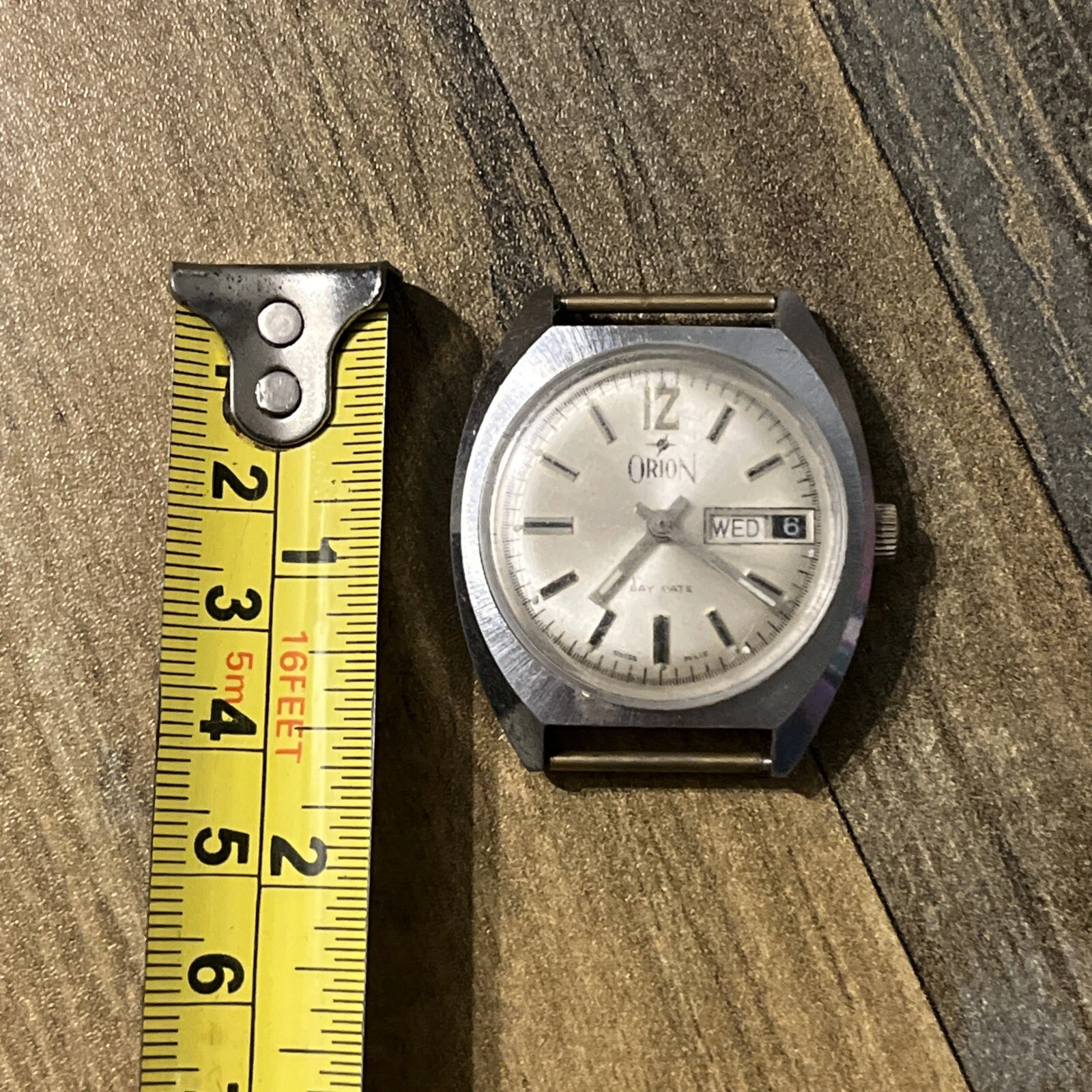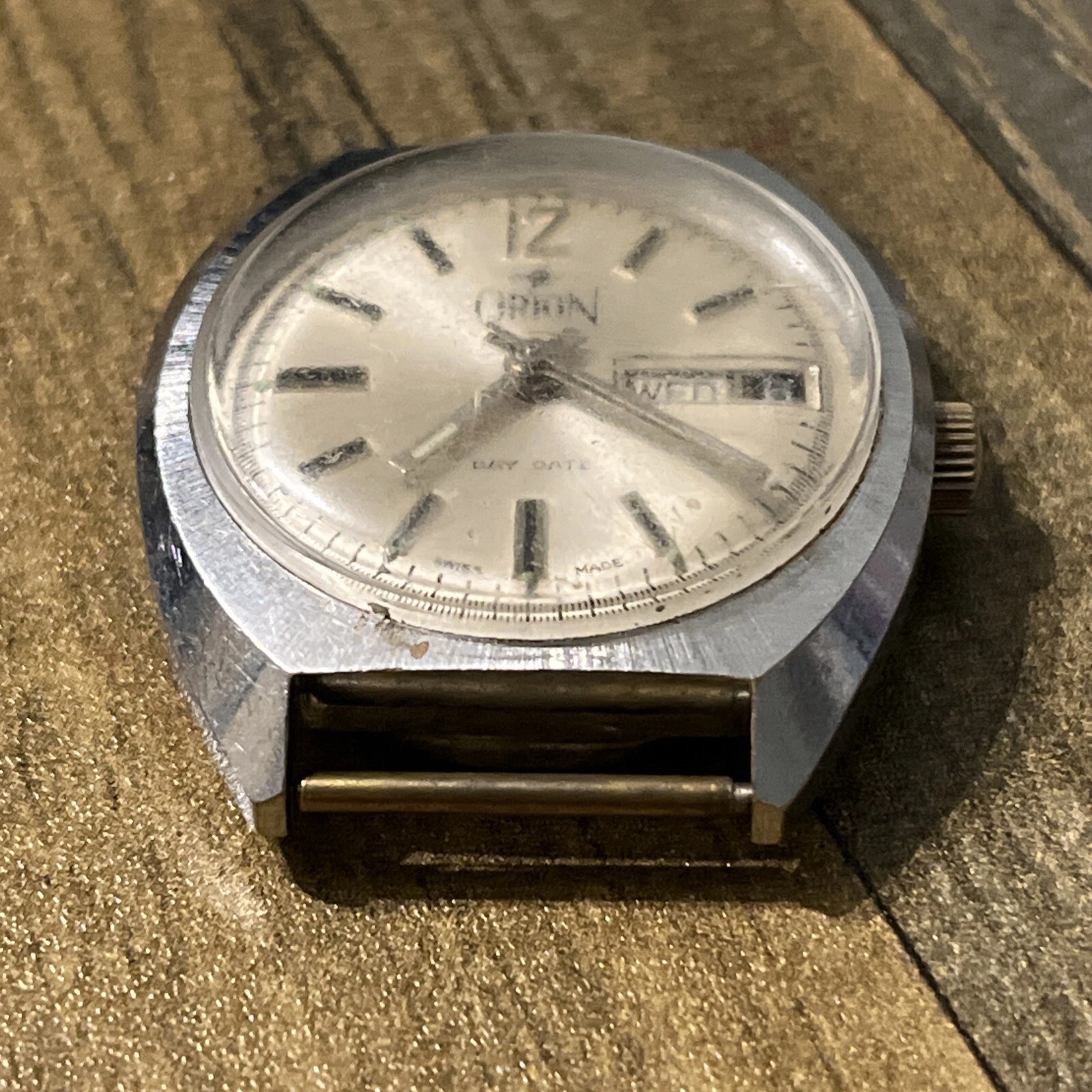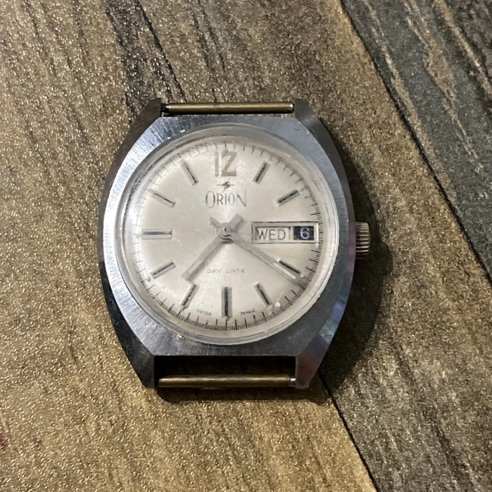 Vintage Swiss Made Orion Day Date 3010 Watch Face Stainless Steel Base Bezel