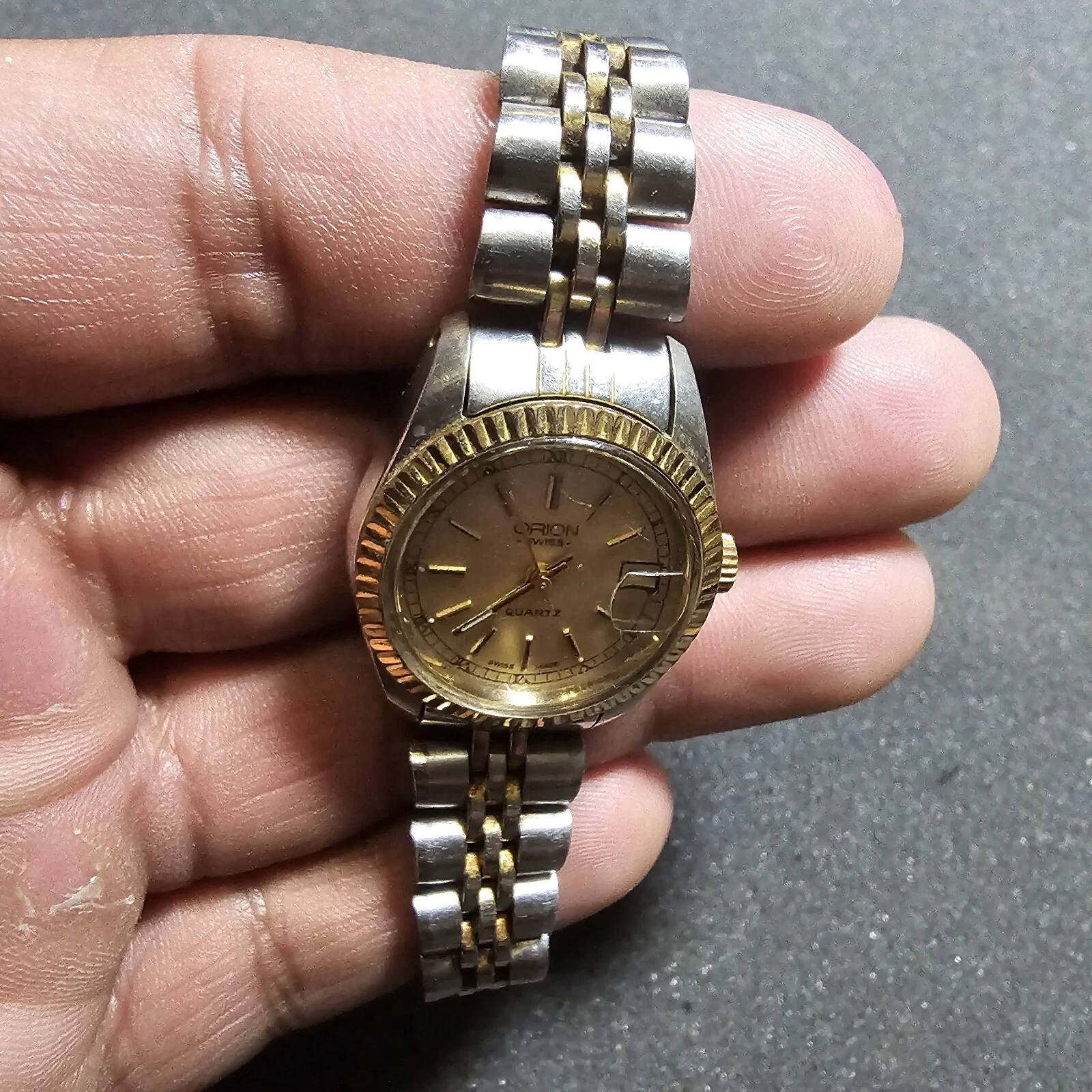 Orion Swiss Made Ladies Quartz Watch Silver And Gold Tone Date Just Working