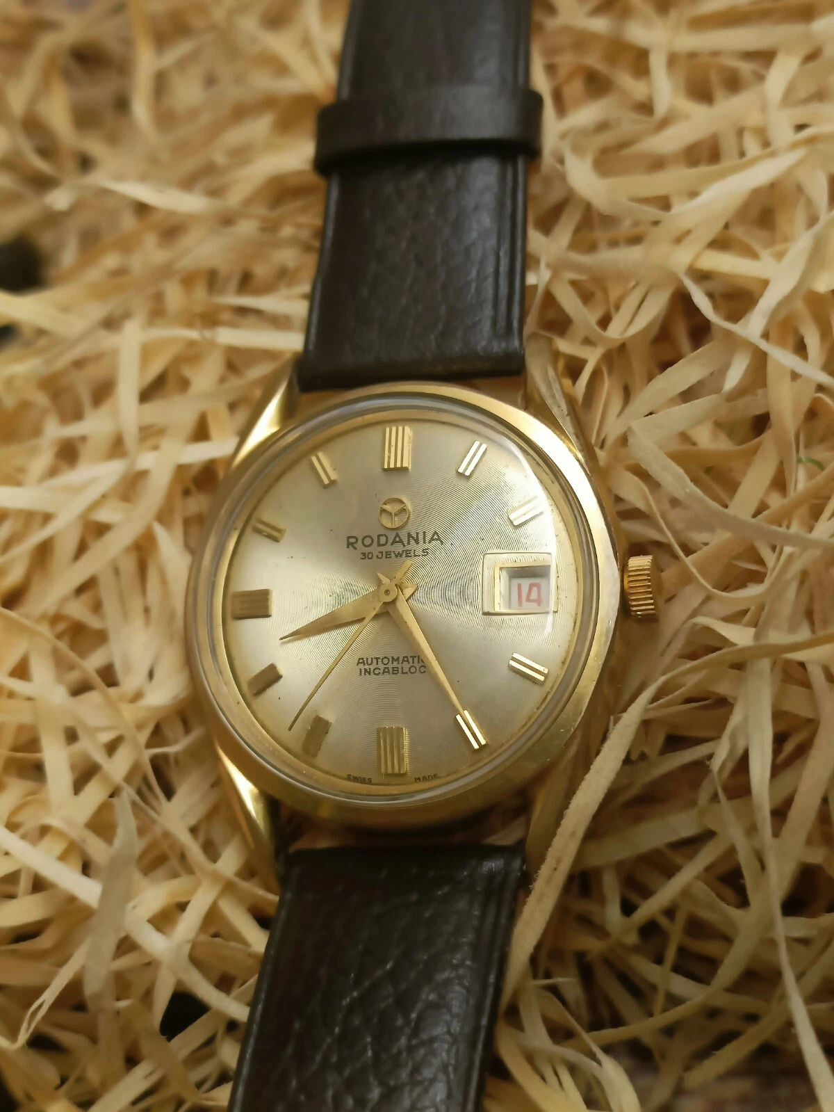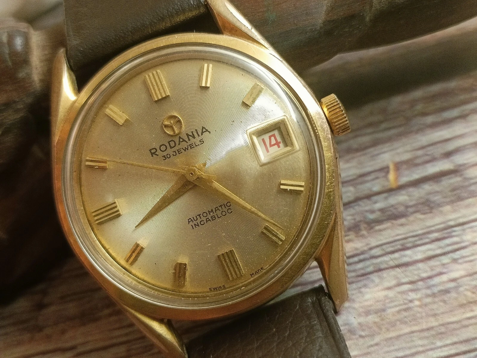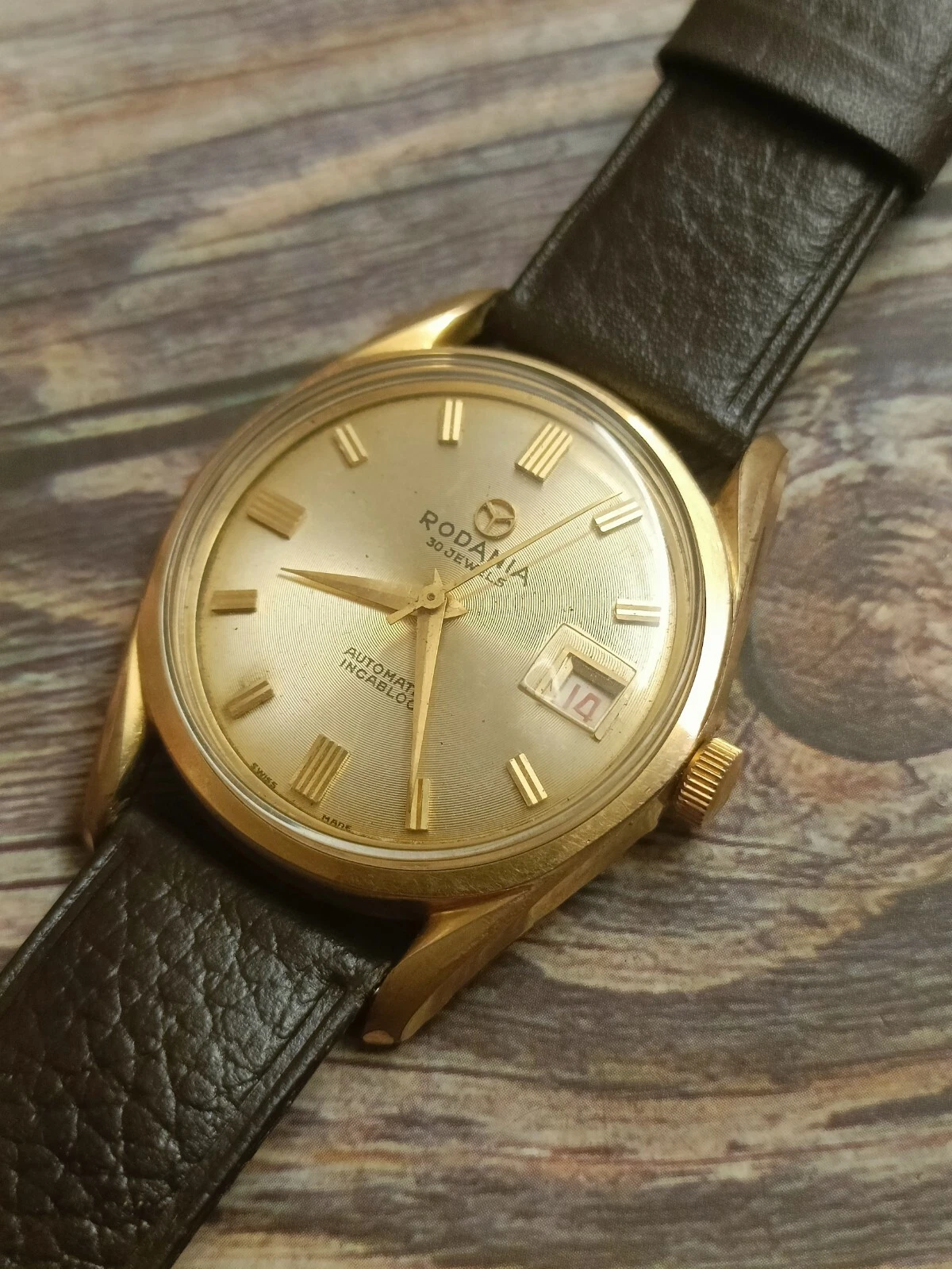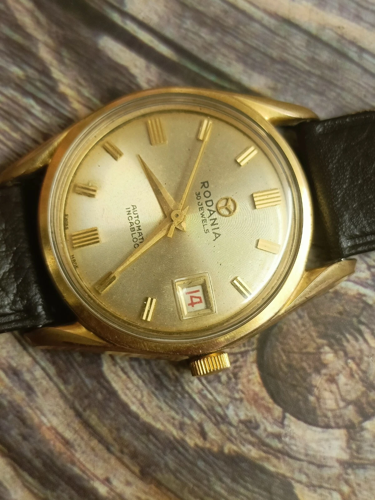 RODANIA 30 JEWELS AUTOMATIC INCABLOC SWISS MEN'S DATE RETRO 5829 B
