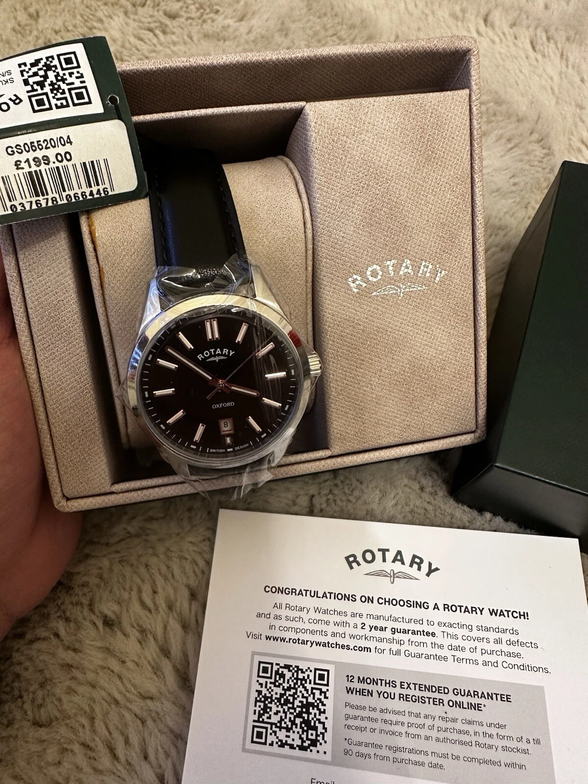 Rotary Gents Steel Battery Watch on Black Leather Strap Date Oxford GS05520/04