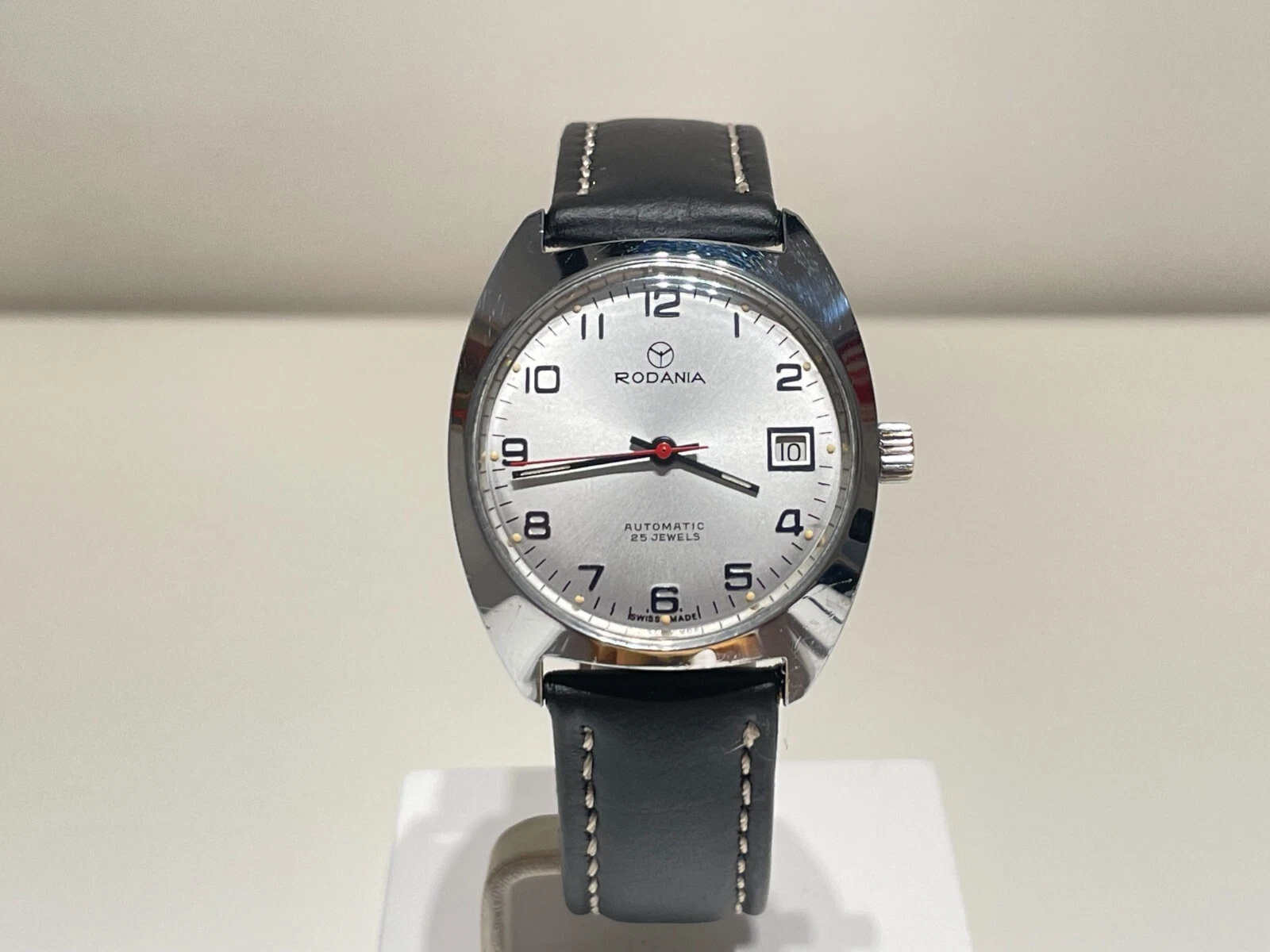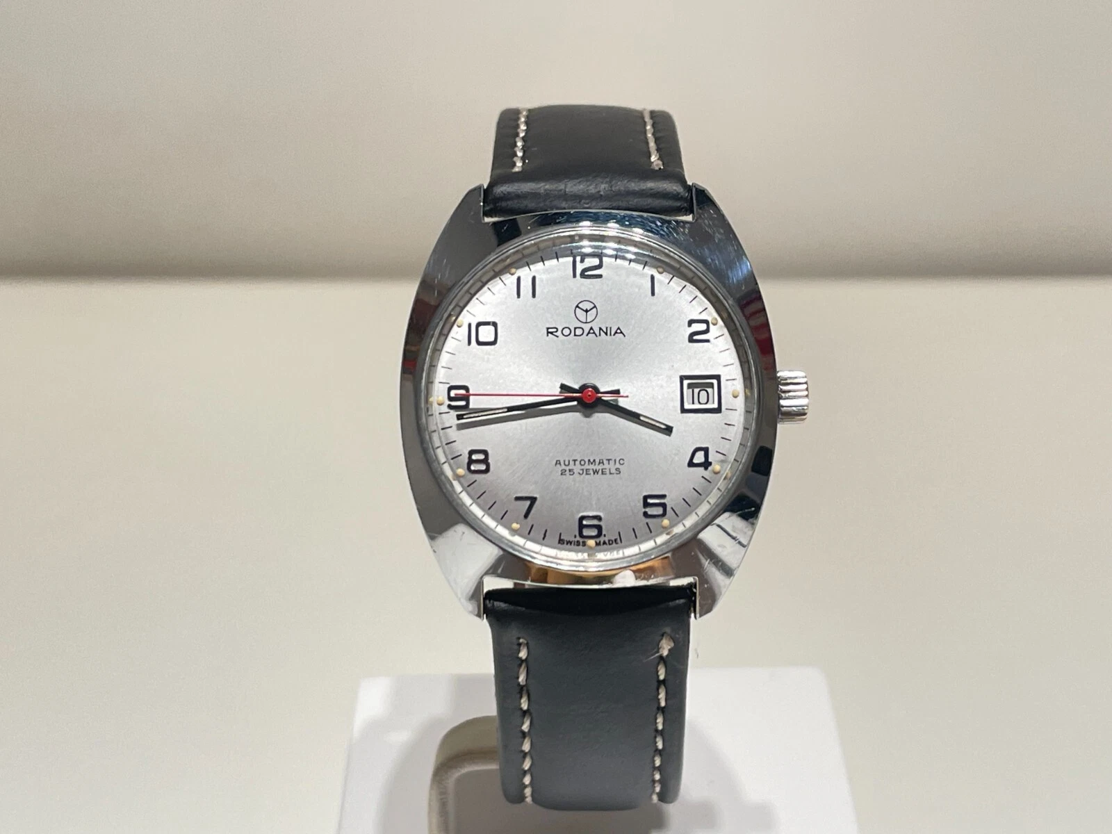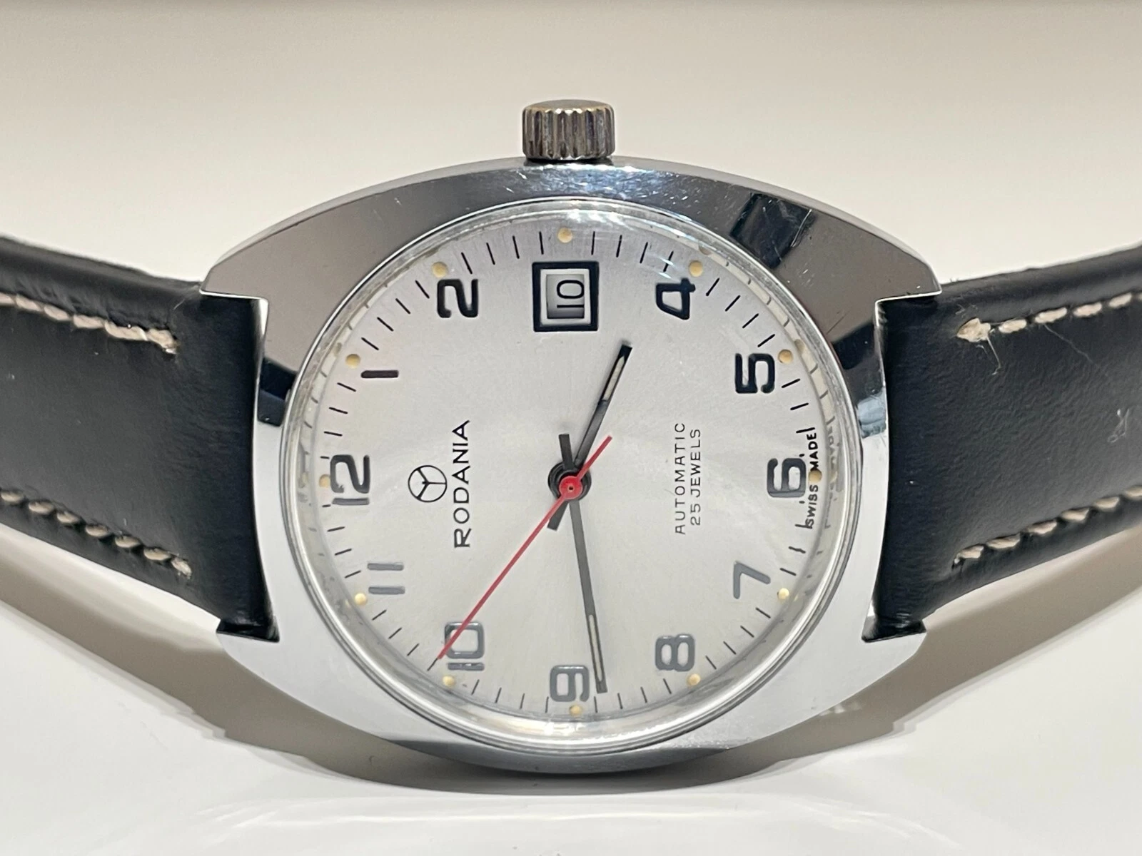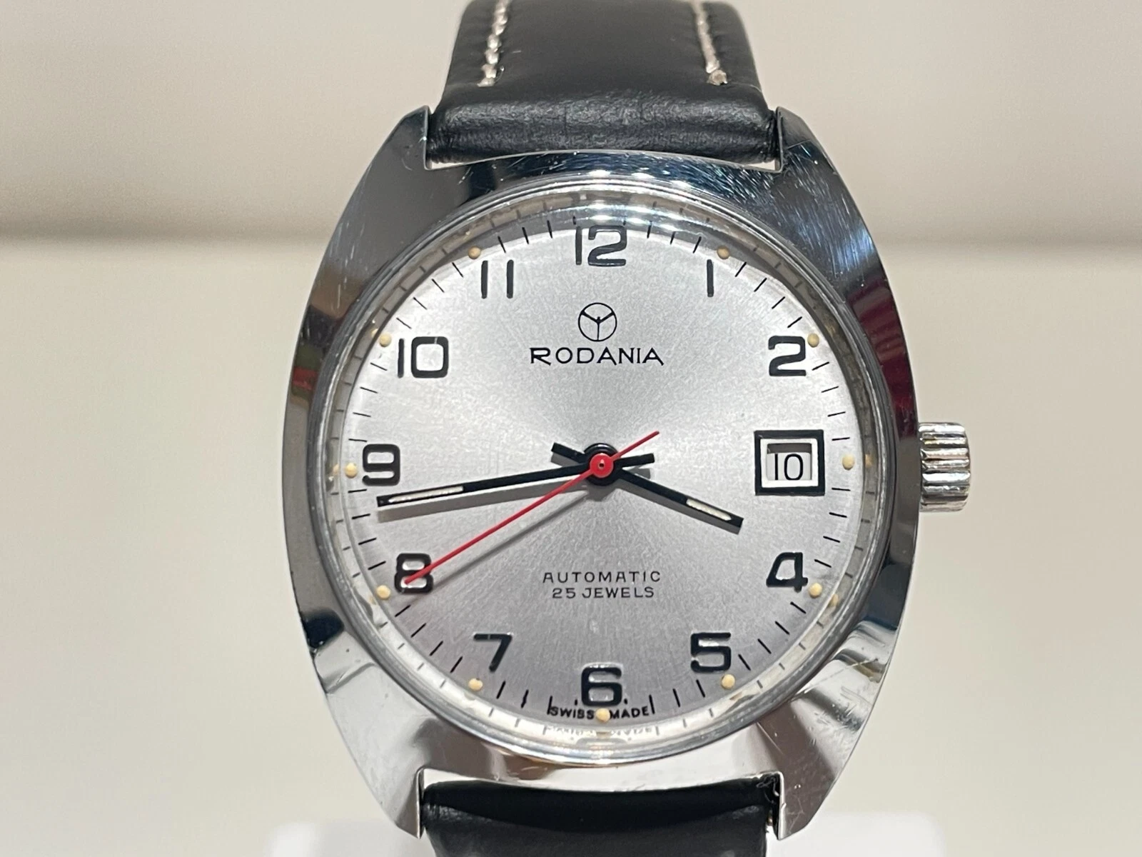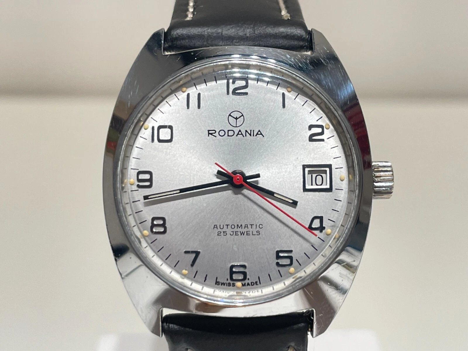 VINTAGE RARE BEAUTIFUL CLASSIC CHROMED MEN'S SWISS AUTOMATIC WATCH "RODANIA"25J.