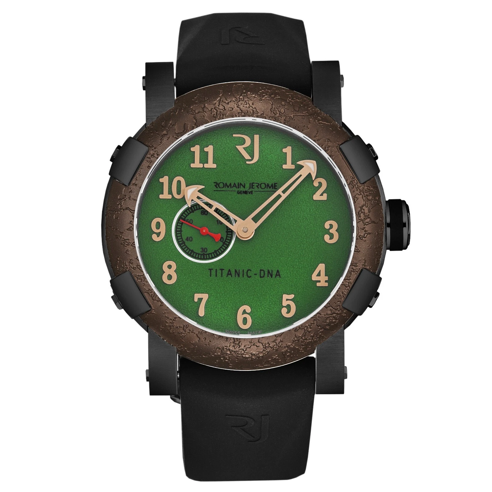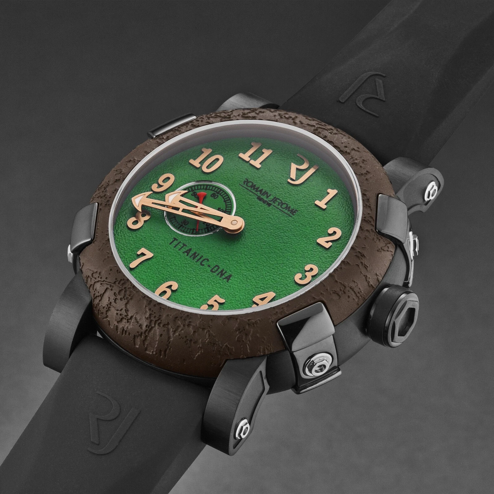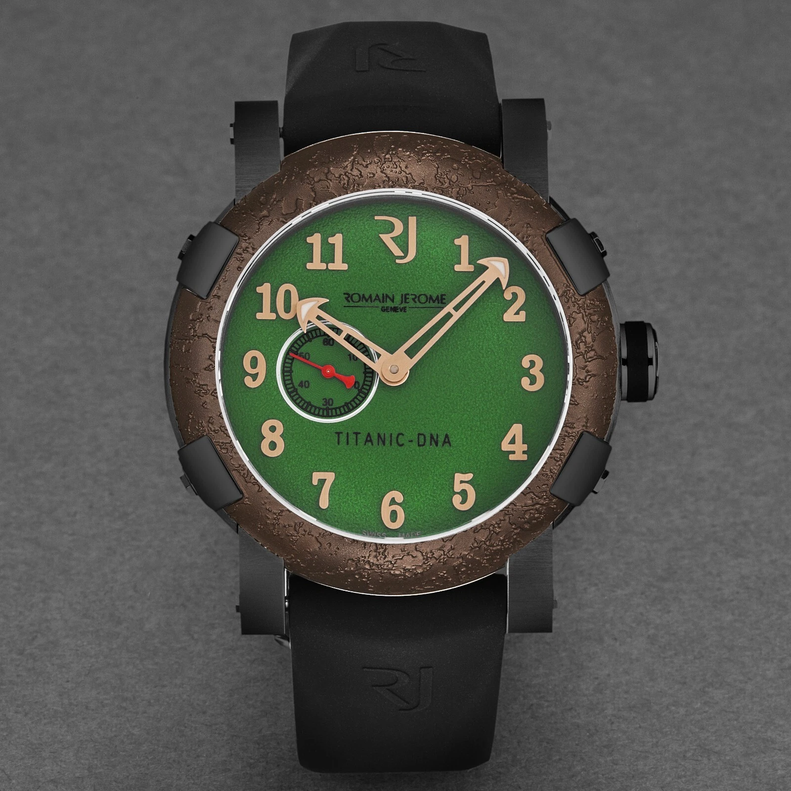 Romain Jerome Mens 'Titanic' Green Dial Black Rubber Strap Watch RJ.TI.AU.603.20