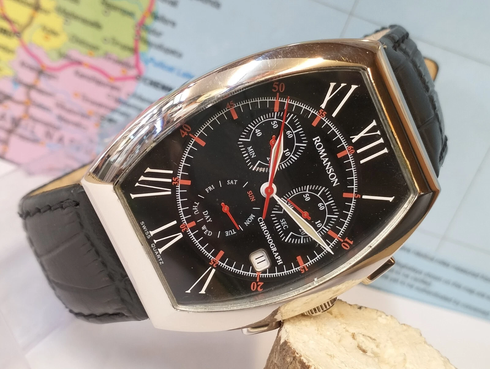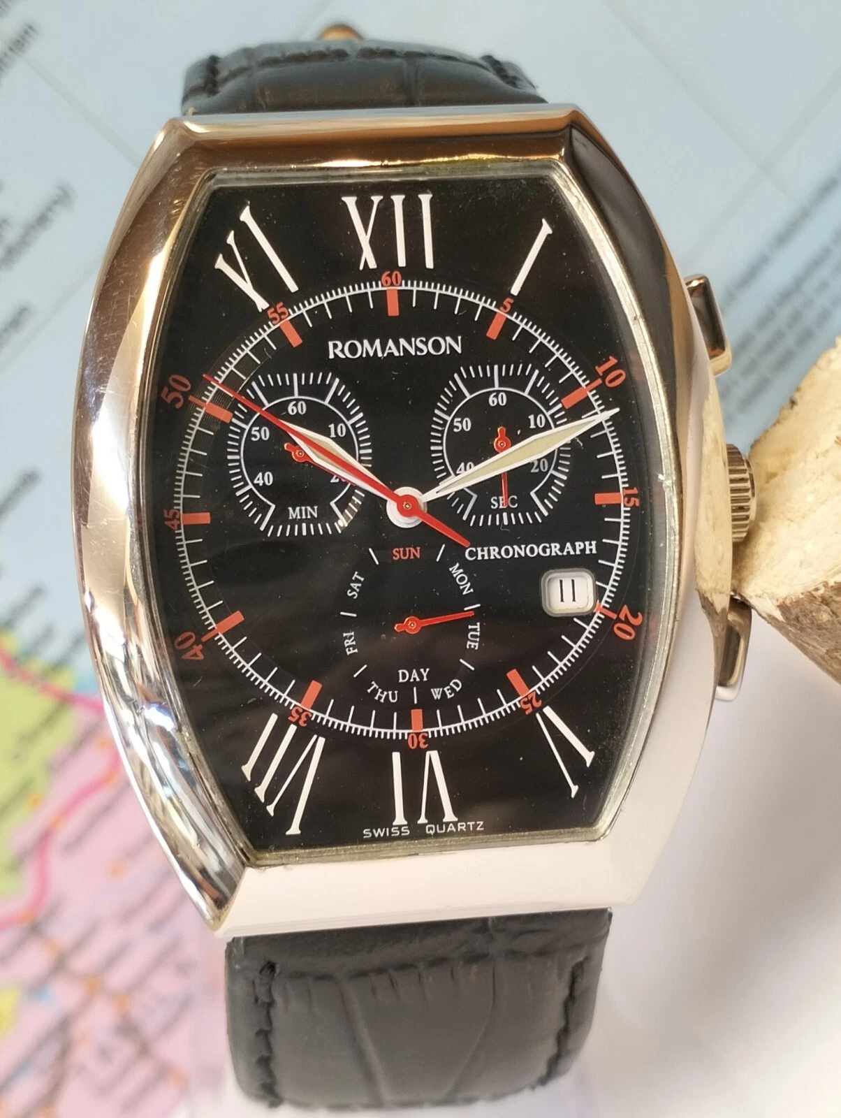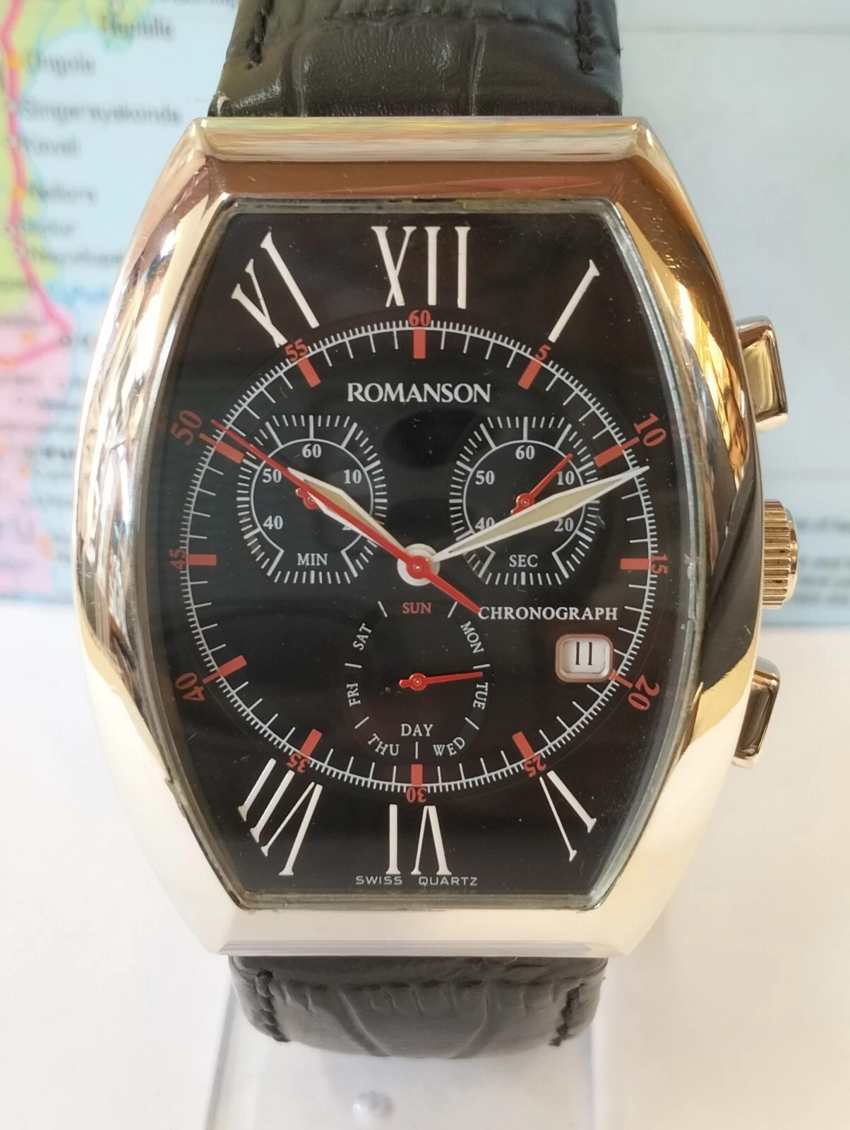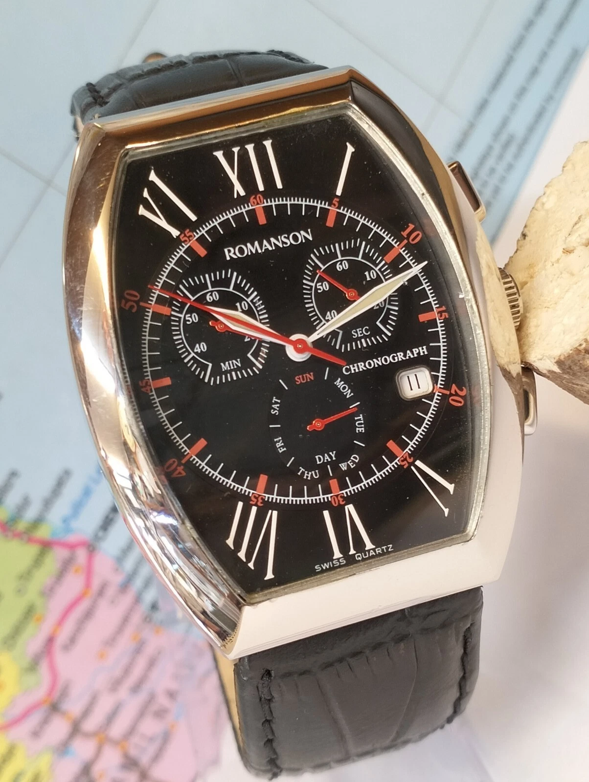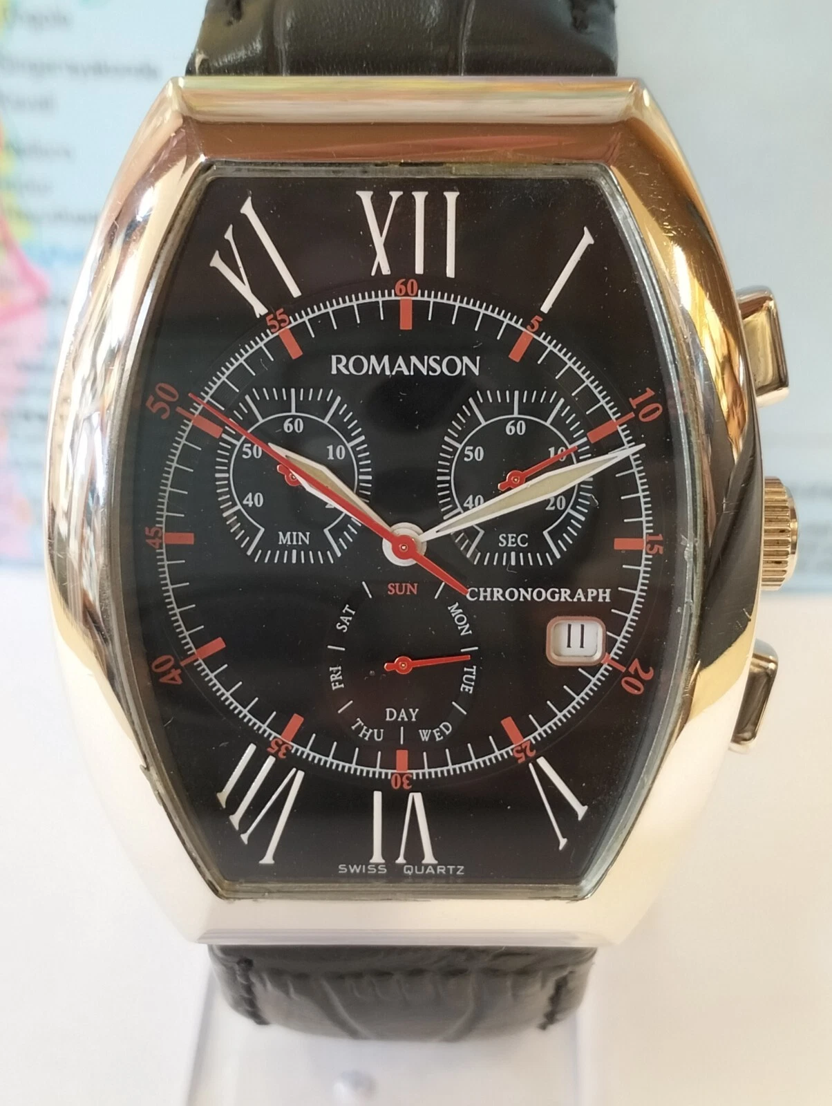 ROMANSON CHRONOGRAPH QUARTZ BLACK DIAL TL4137HM SWISS MEN'S FULL WORKING VINTAGE