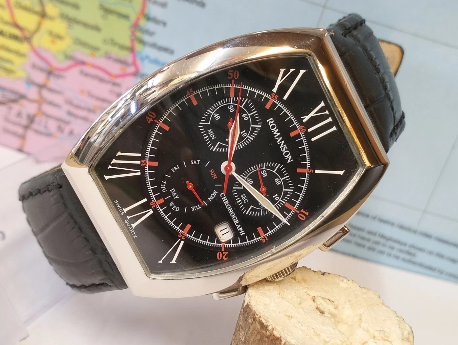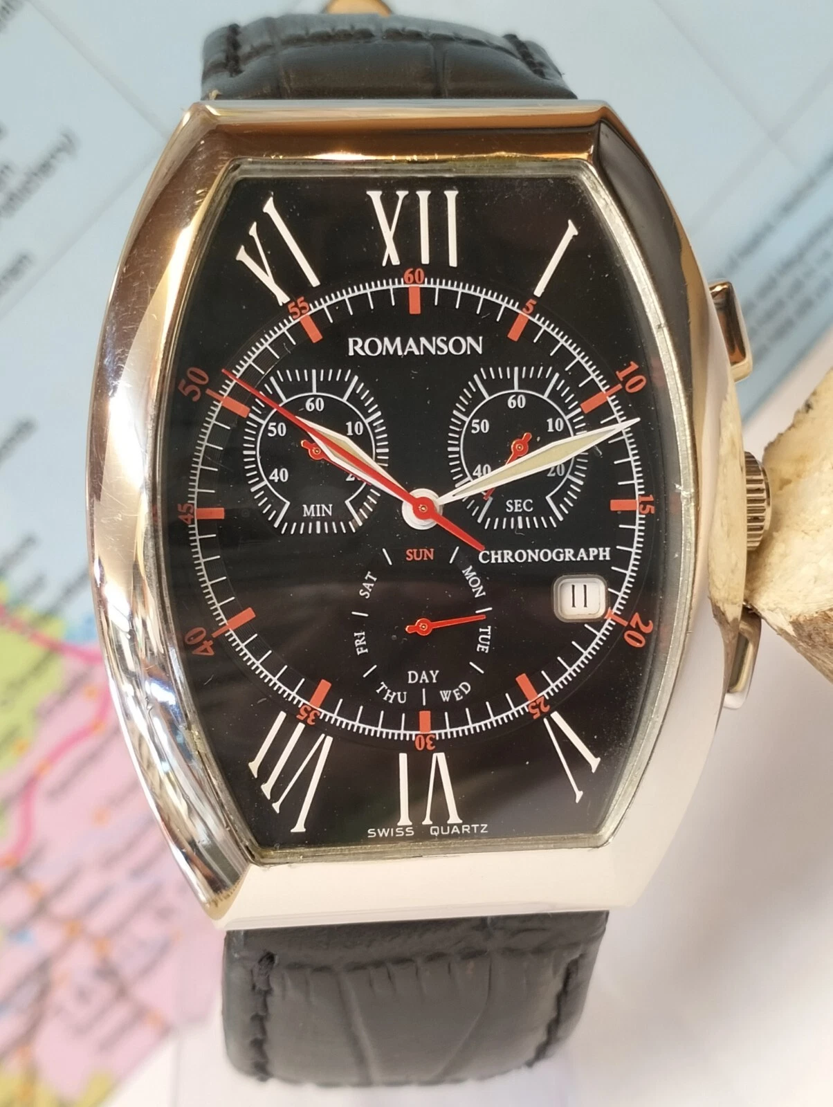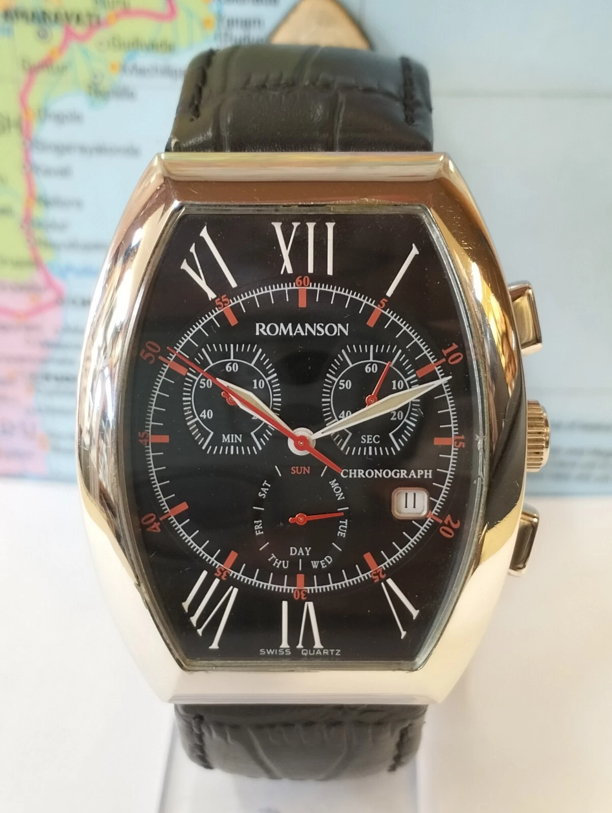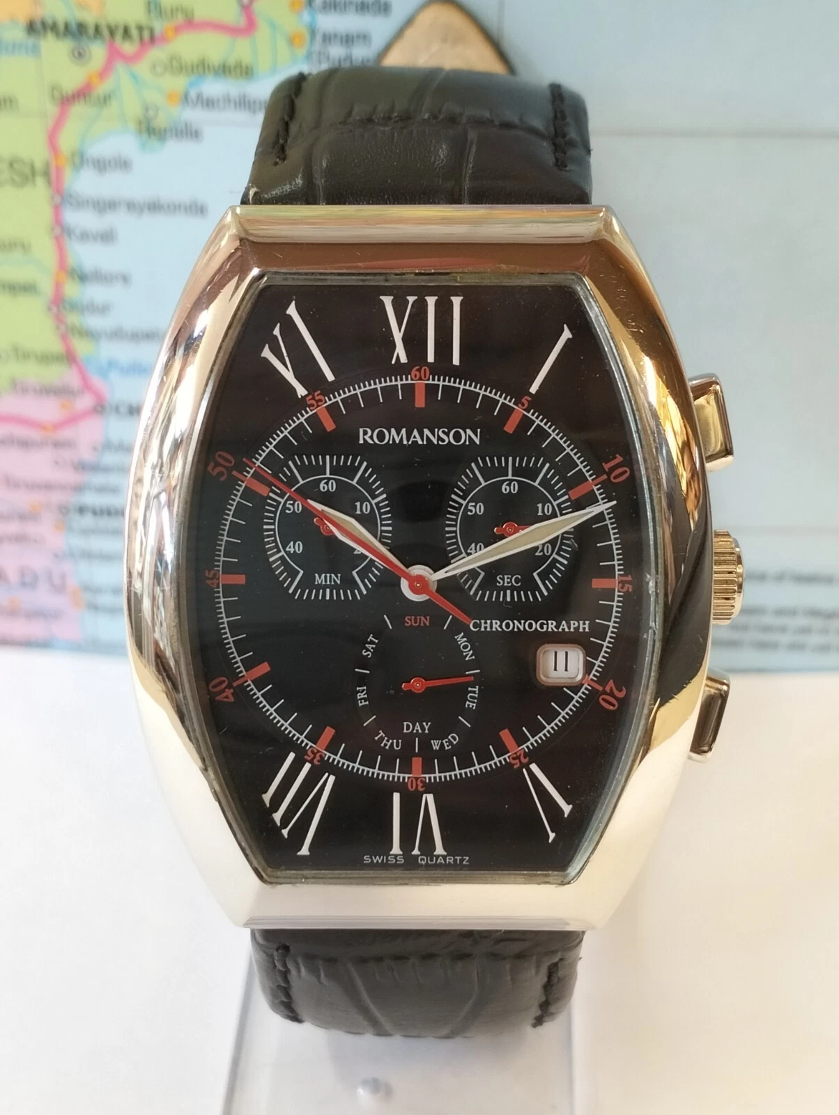 ROMANSON CHRONOGRAPH QUARTZ BLACK DIAL TL4137HM SWISS MEN'S FULL WORKING VINTAGE
