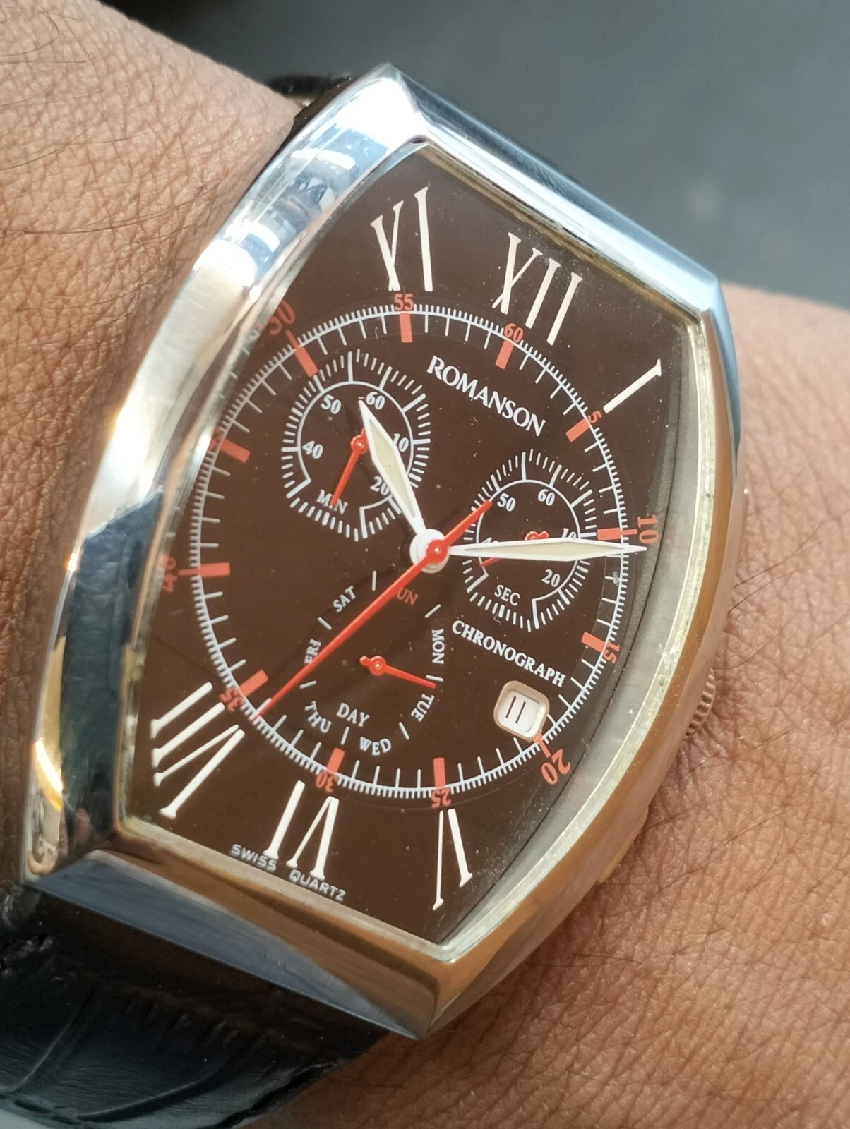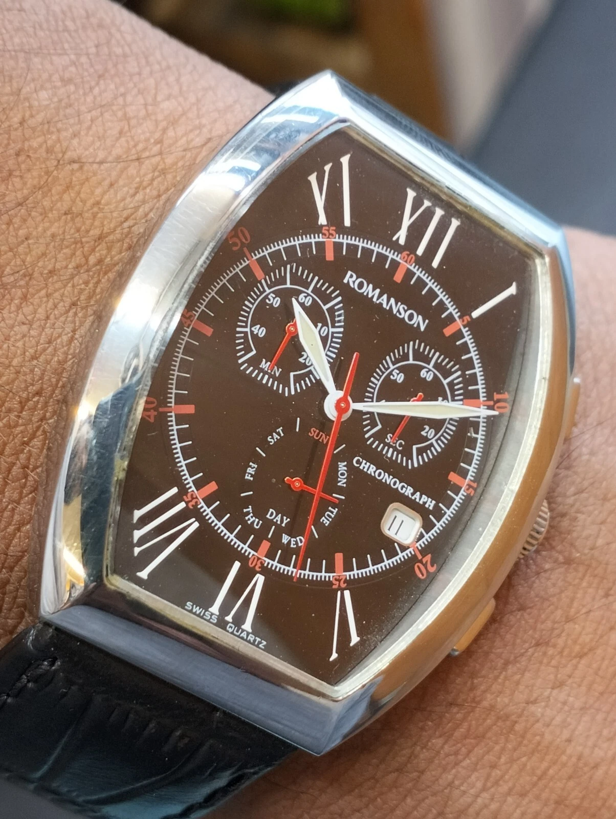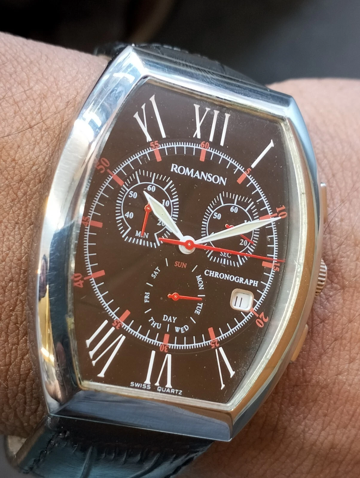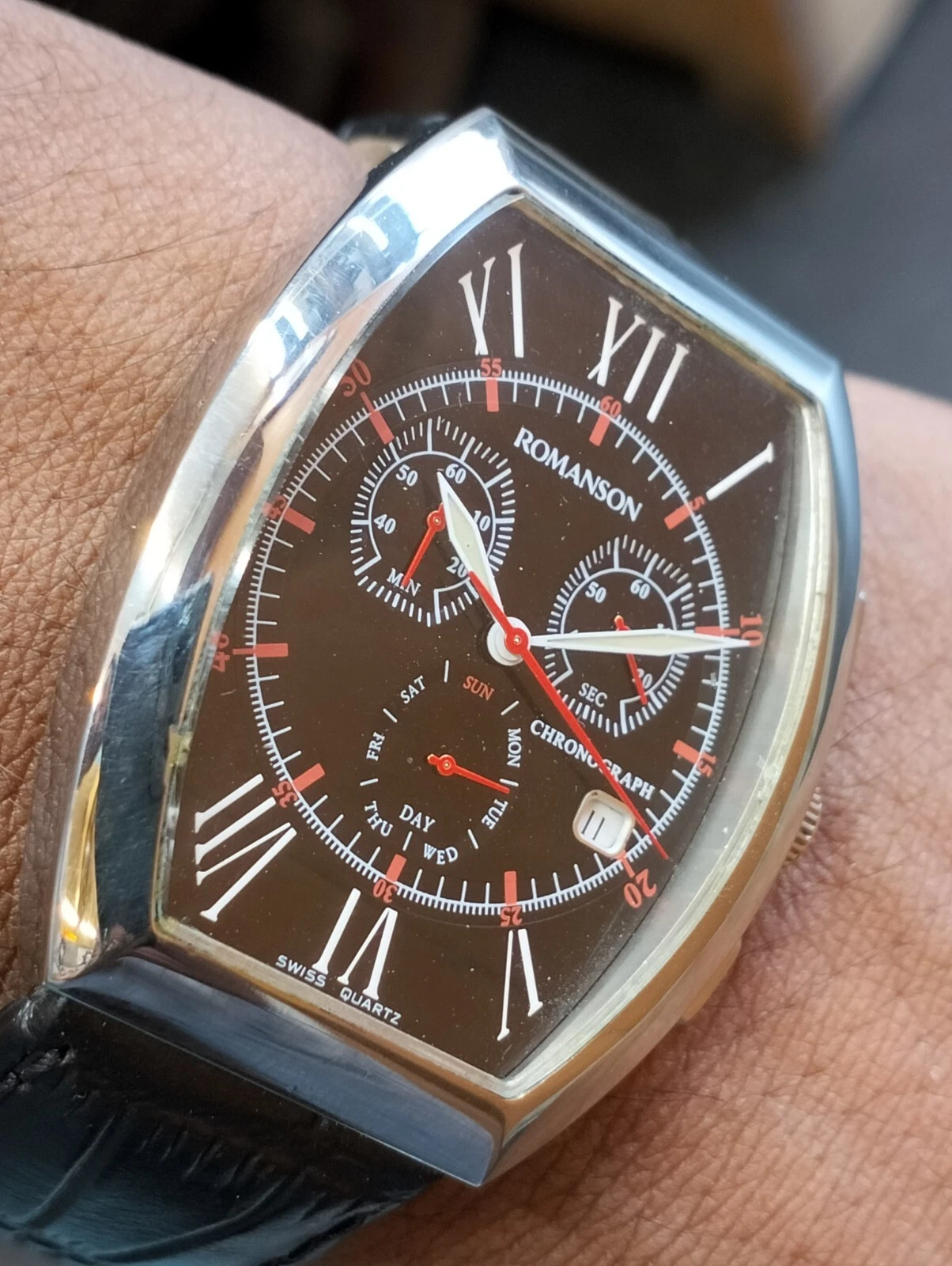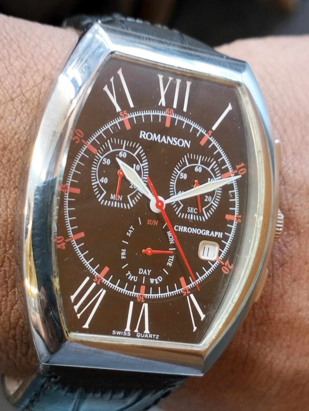 ROMANSON CHRONOGRAPH QUARTZ BLACK DIAL TL4137HM SWISS MEN'S FULL WORKING VINTAGE