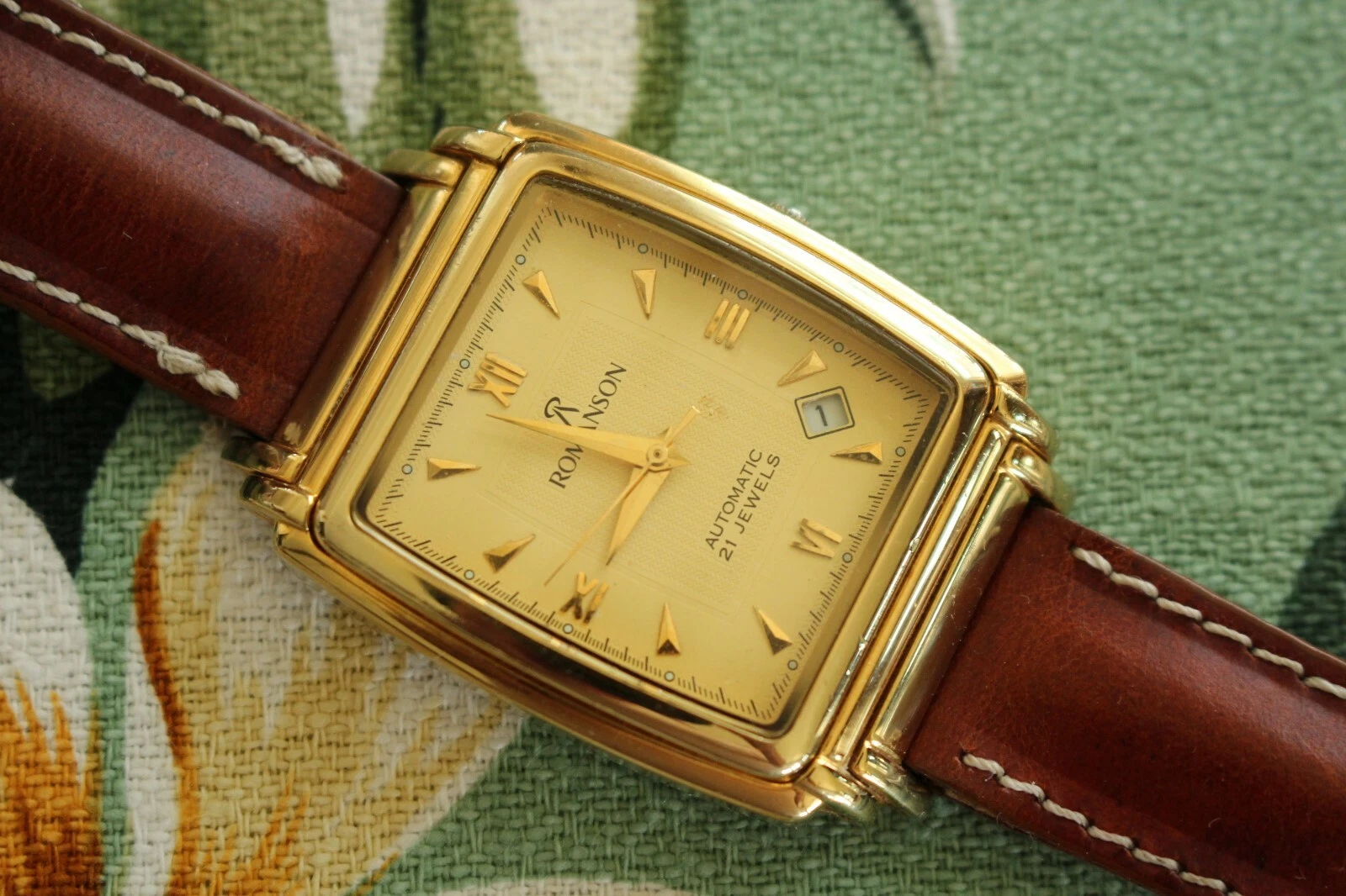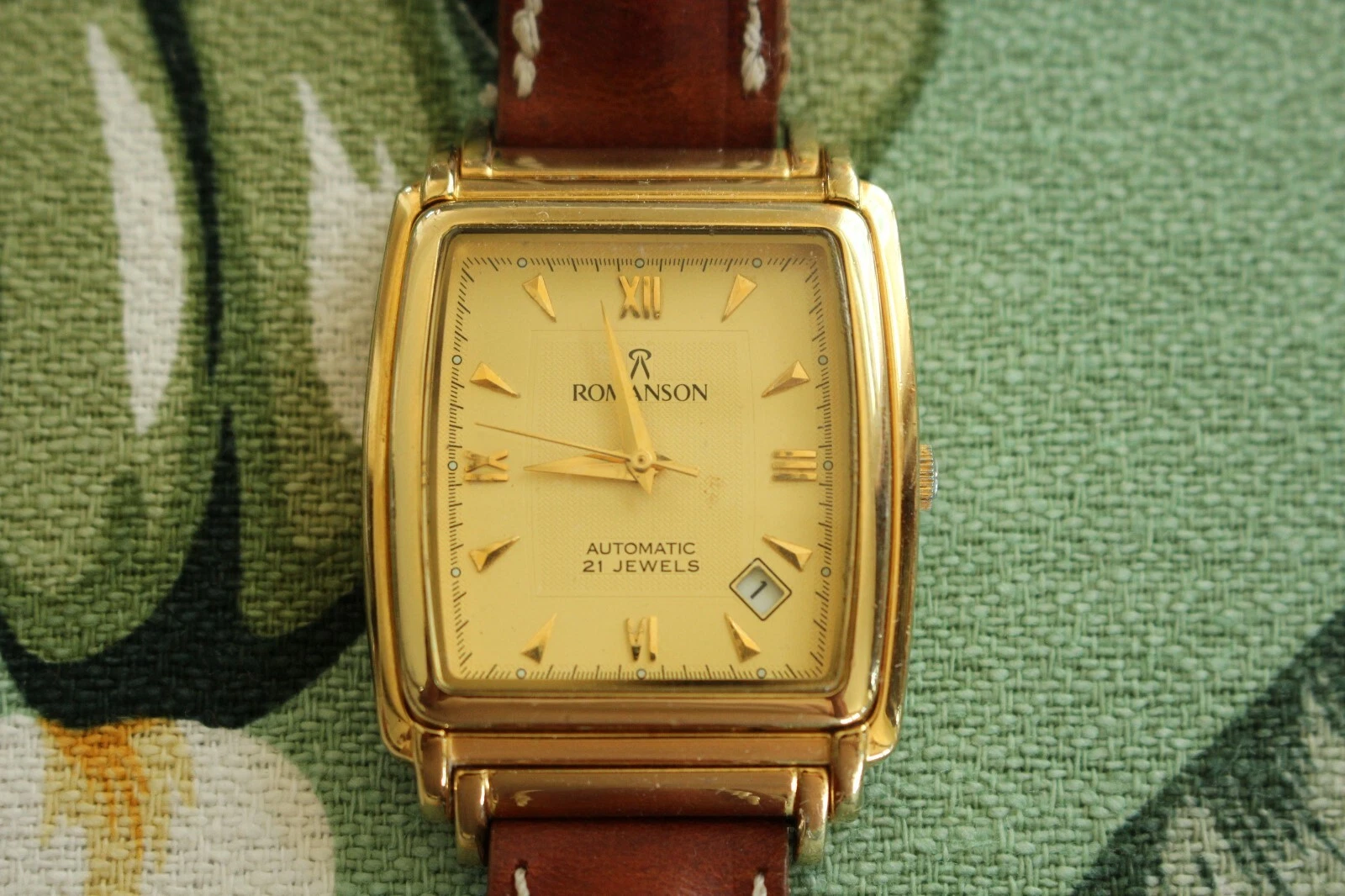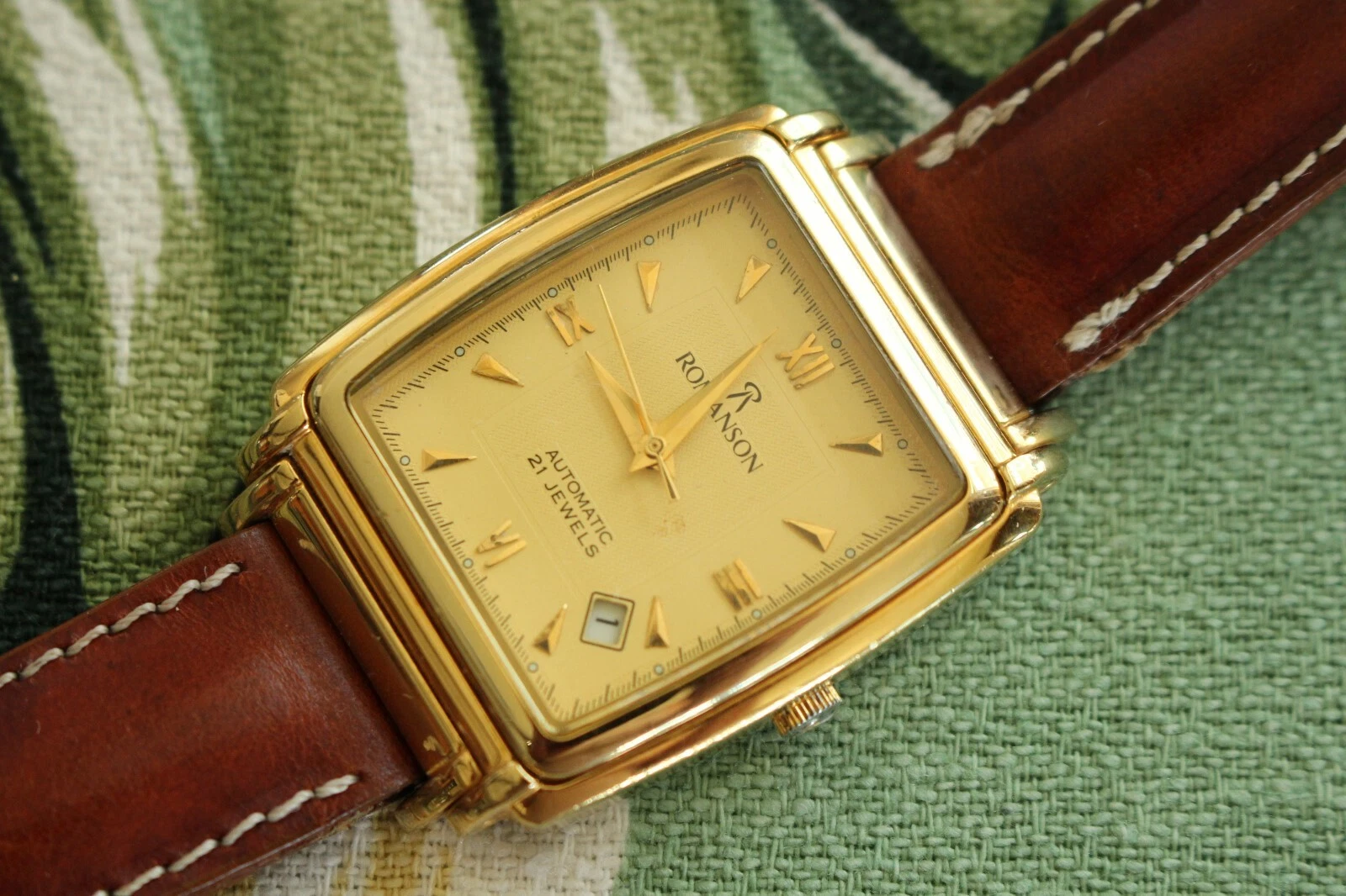 STUNNING ROMANSON 21 JEWEL TRIPLE GOLD DATE DIAL & CASE AUTOMATIC WATCH BOX SET