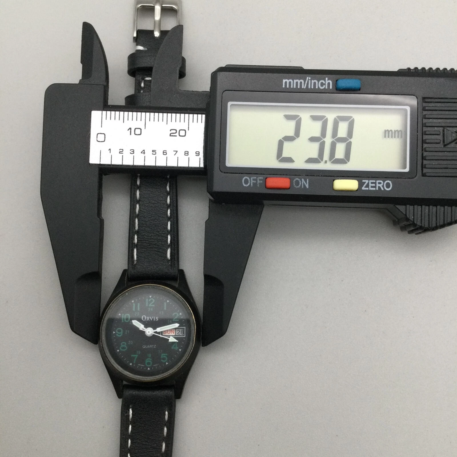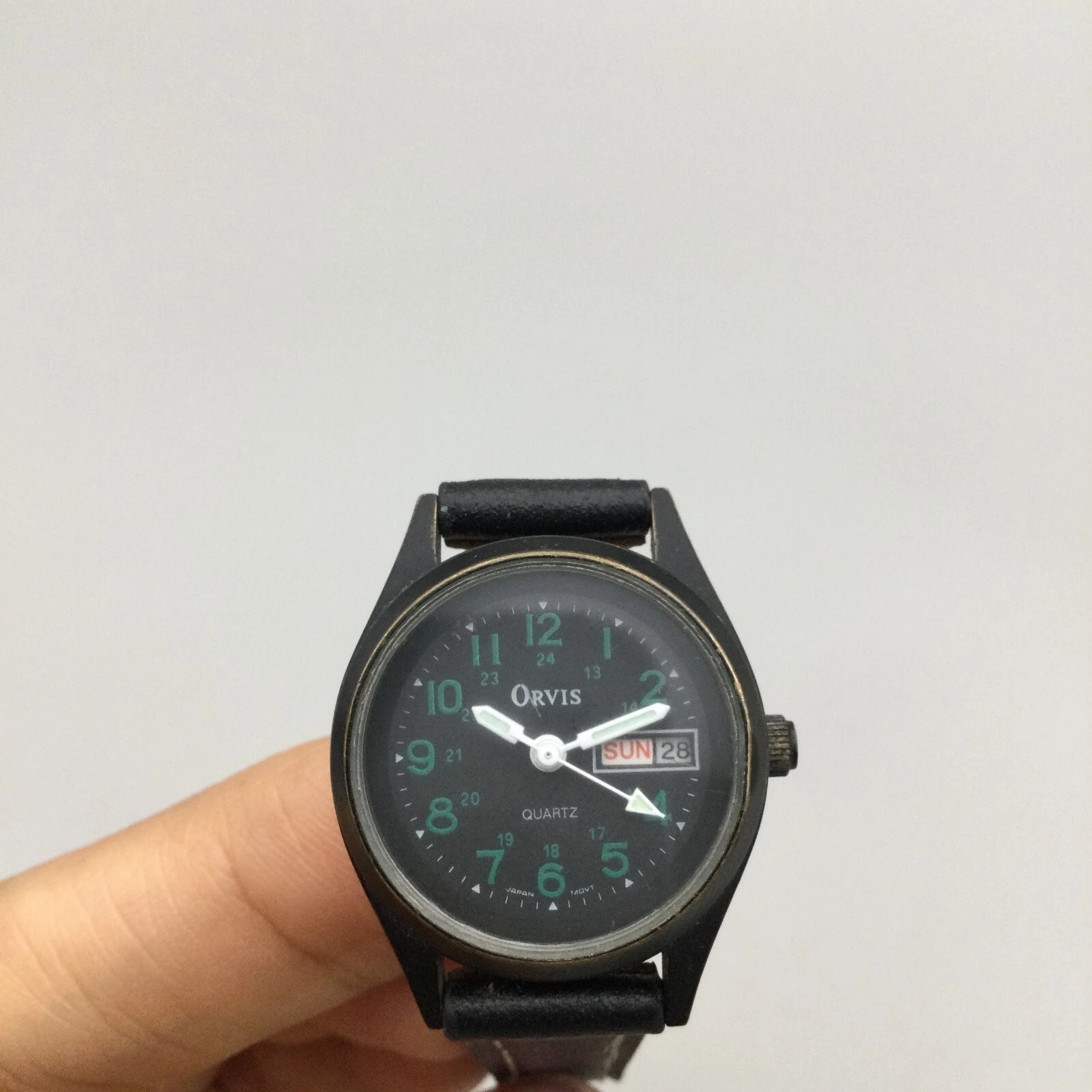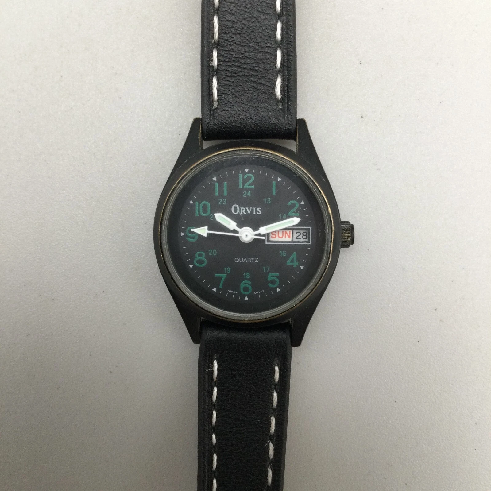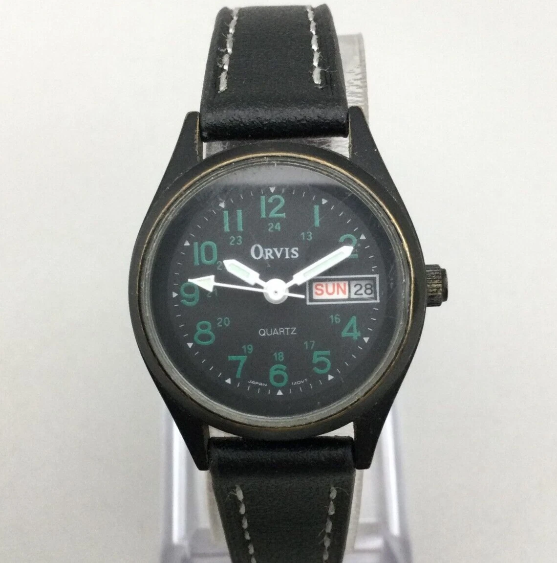 Vintage Orvis Watch Women 24mm Black Tone Day Date Leather Band New Battery