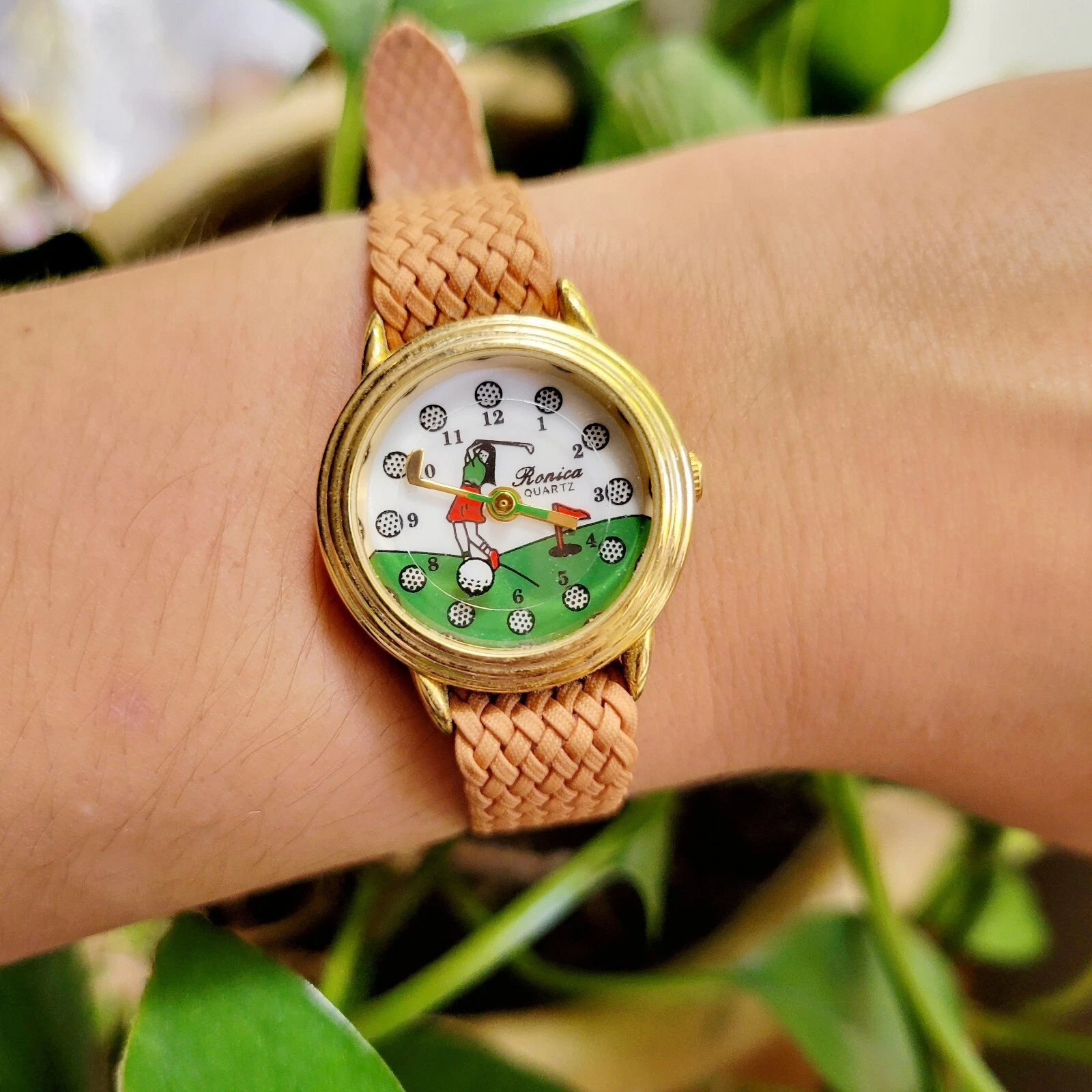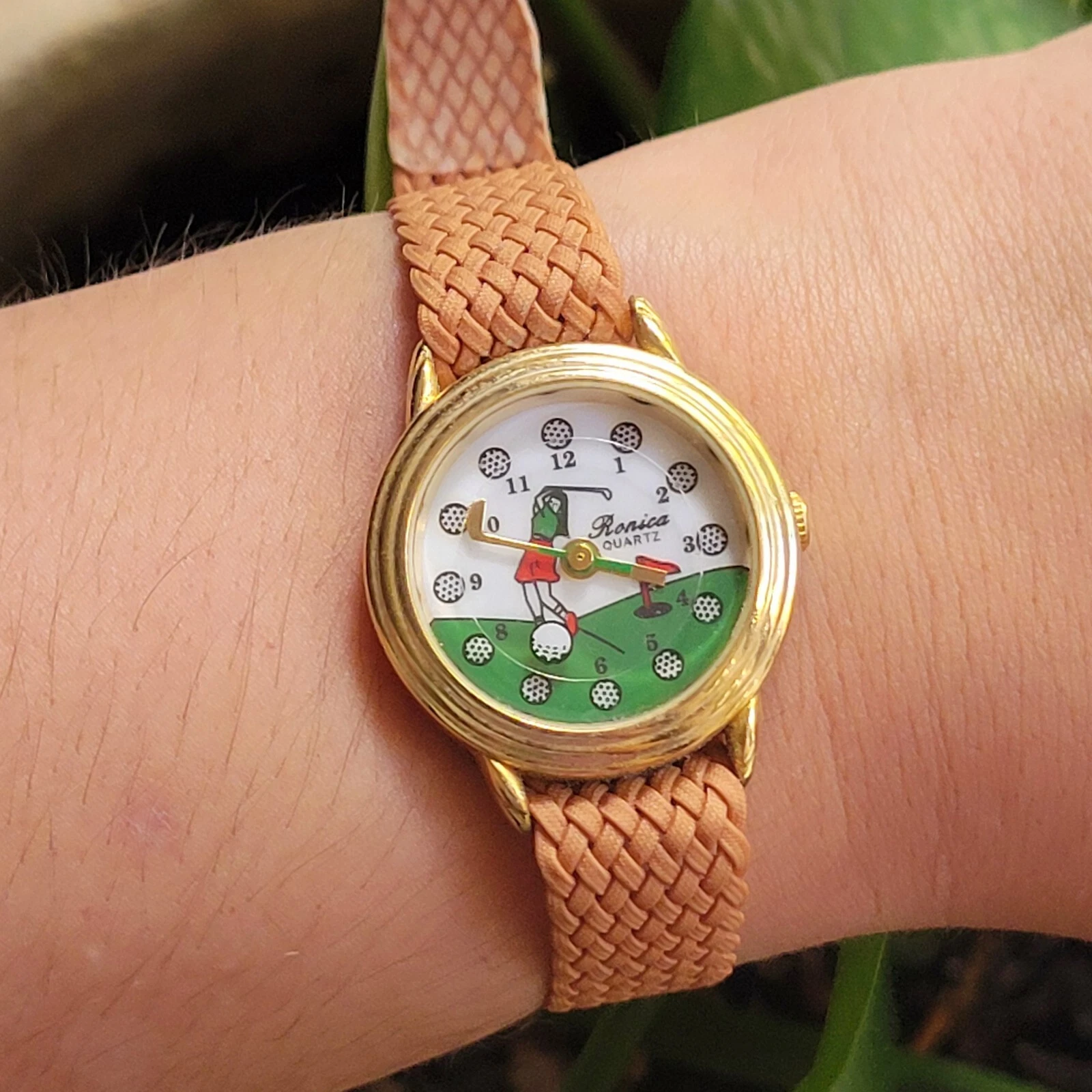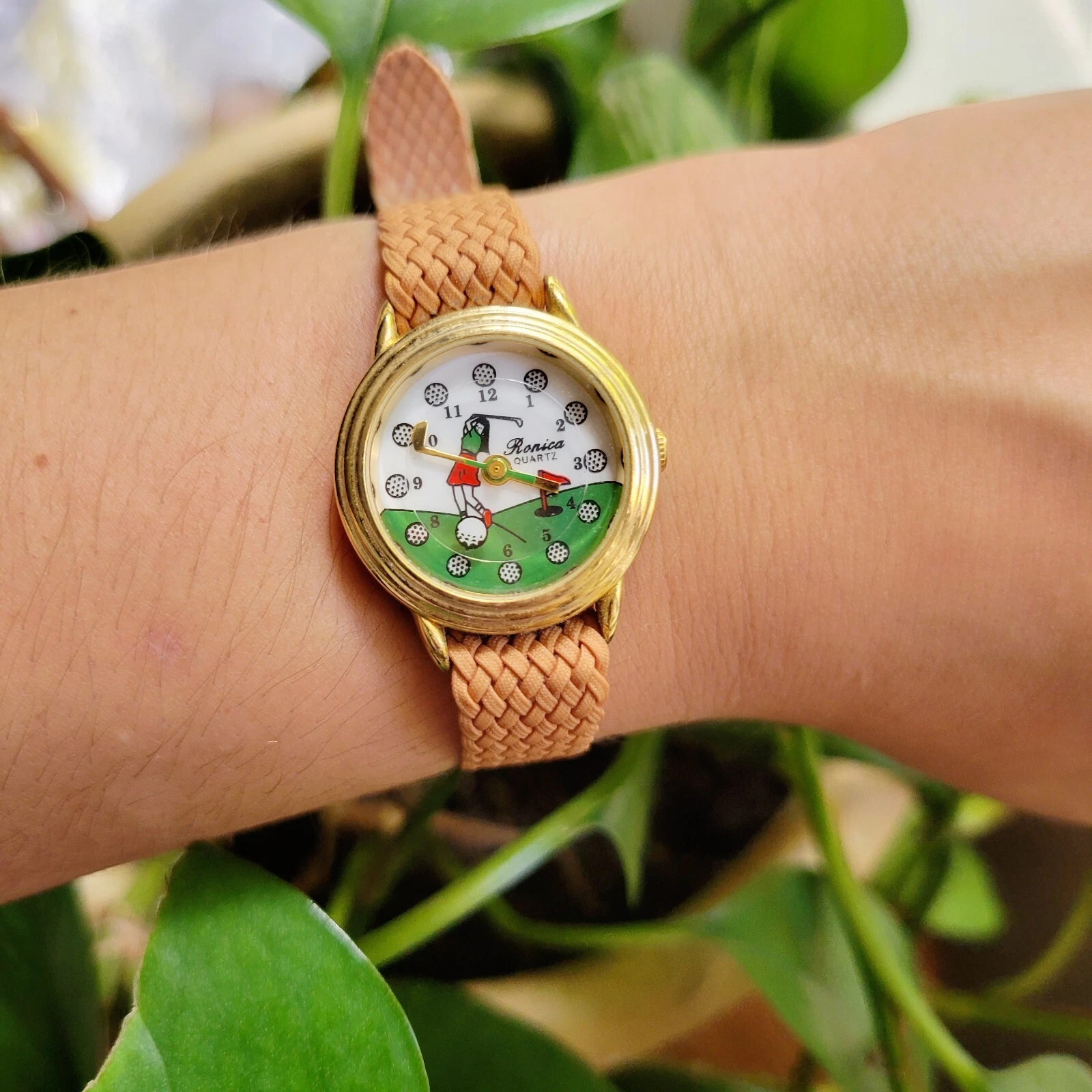 Vintage Ronica Quartz Gold & Tan Golf Watch