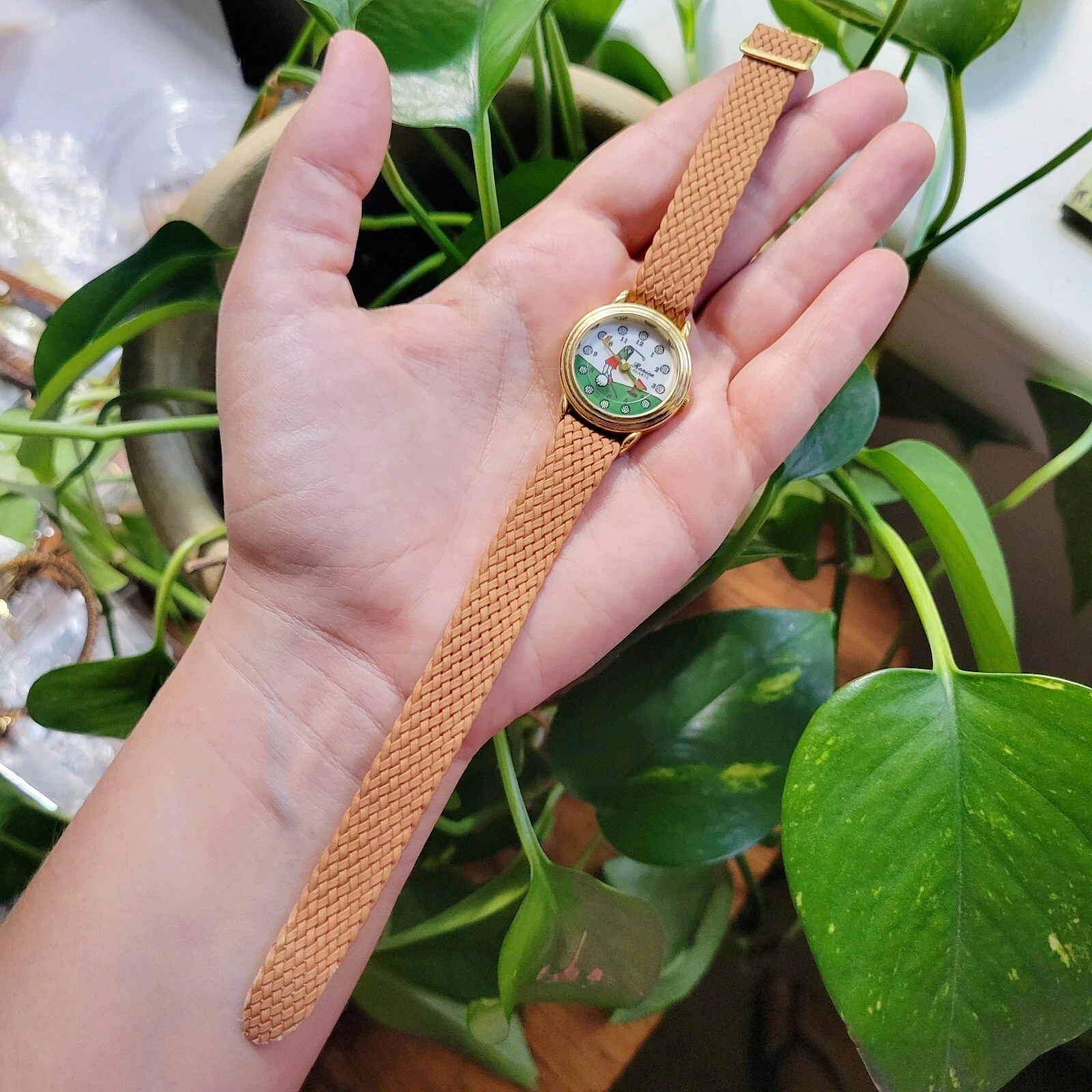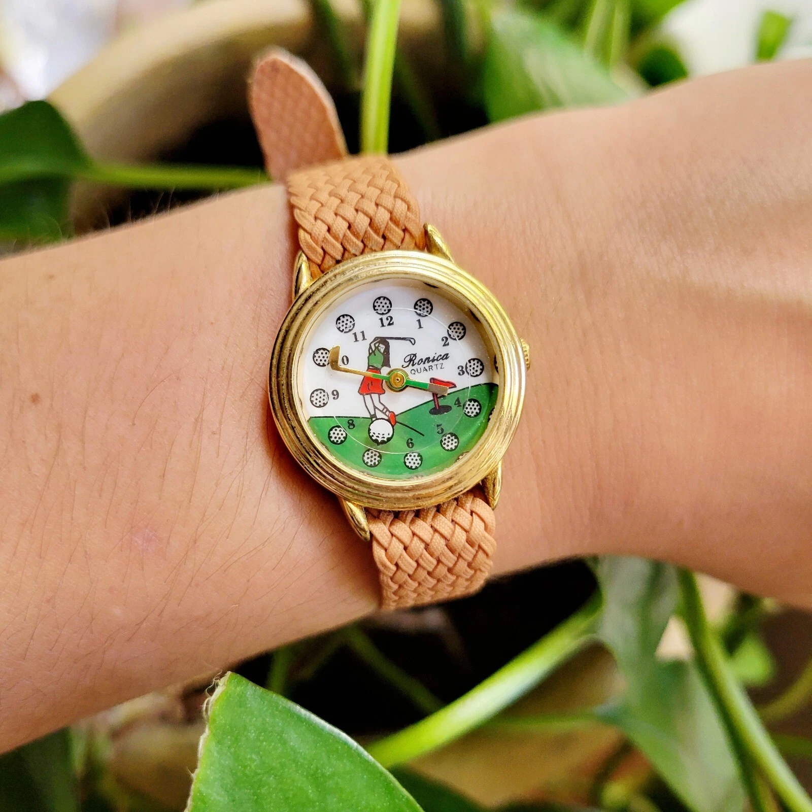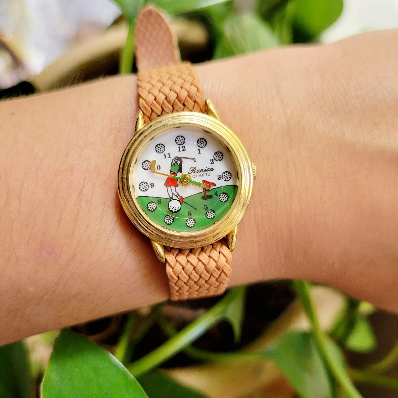 Vintage Ronica Quartz Gold & Tan Golf Watch