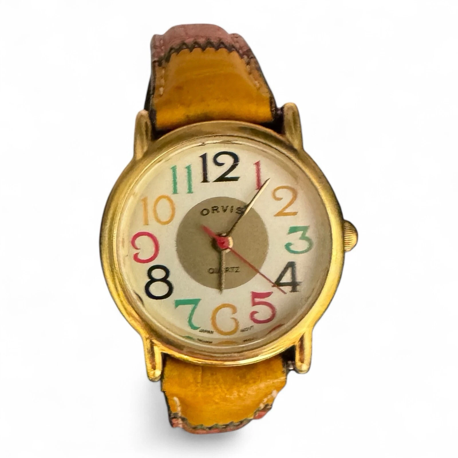 Orvis Ladies Multicolor Leather Band Quartz Watch—New Battery