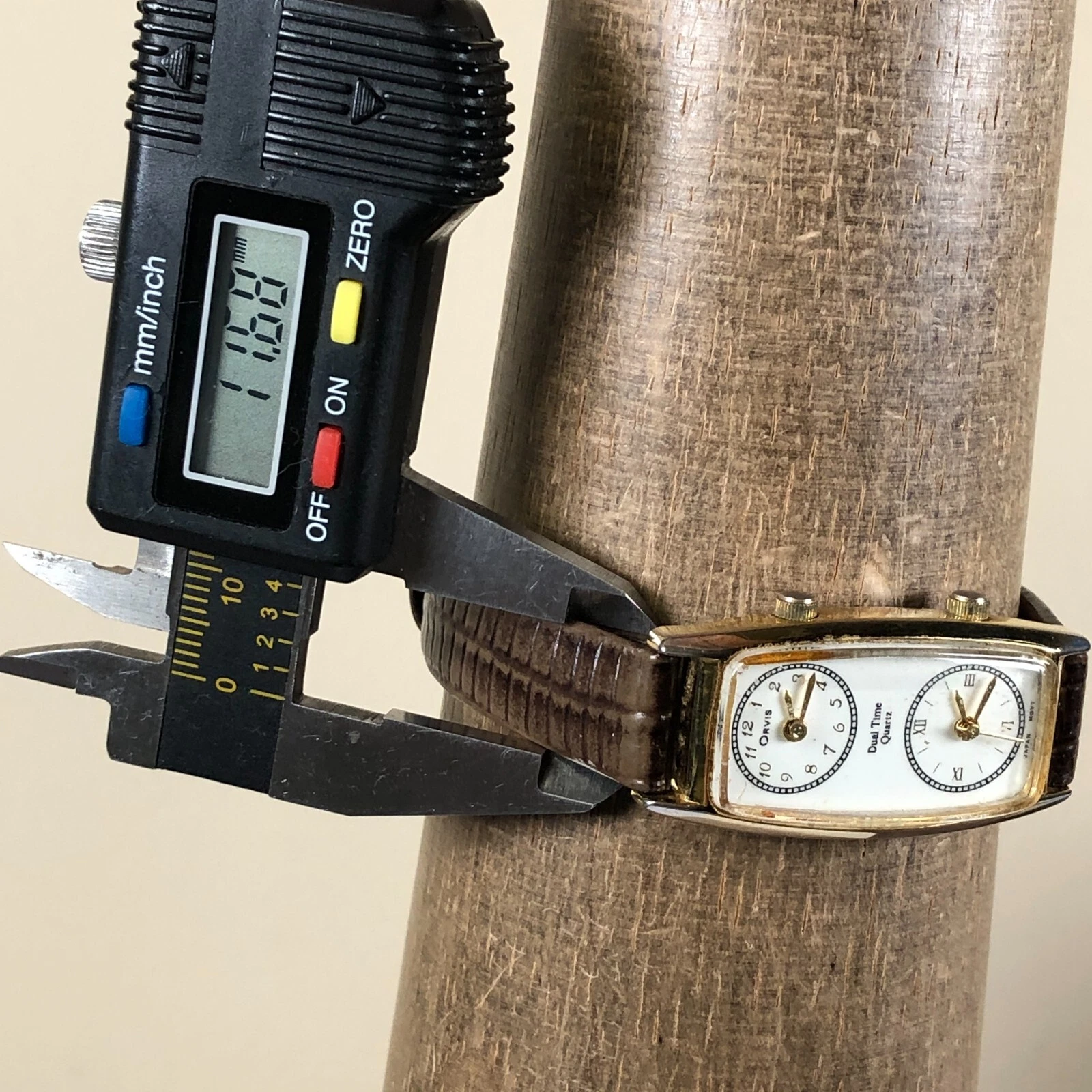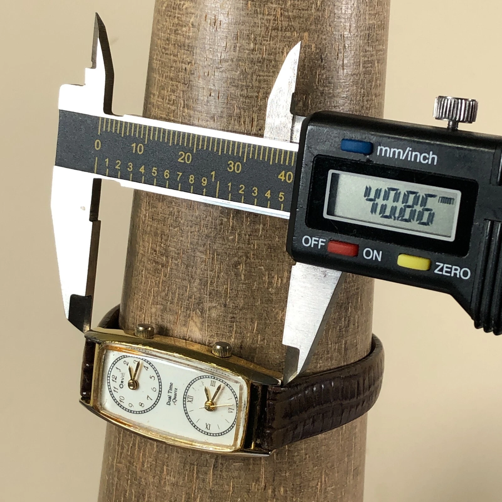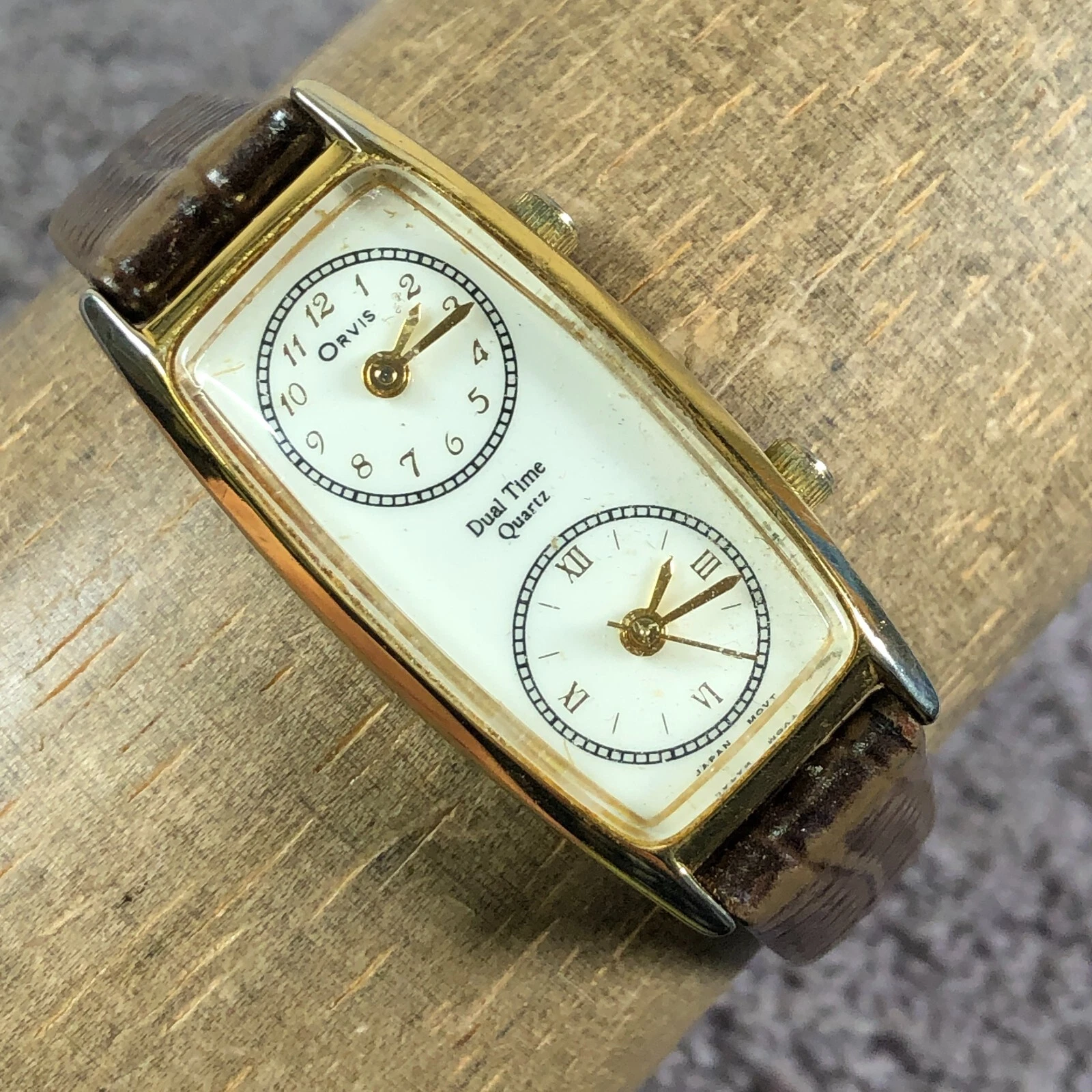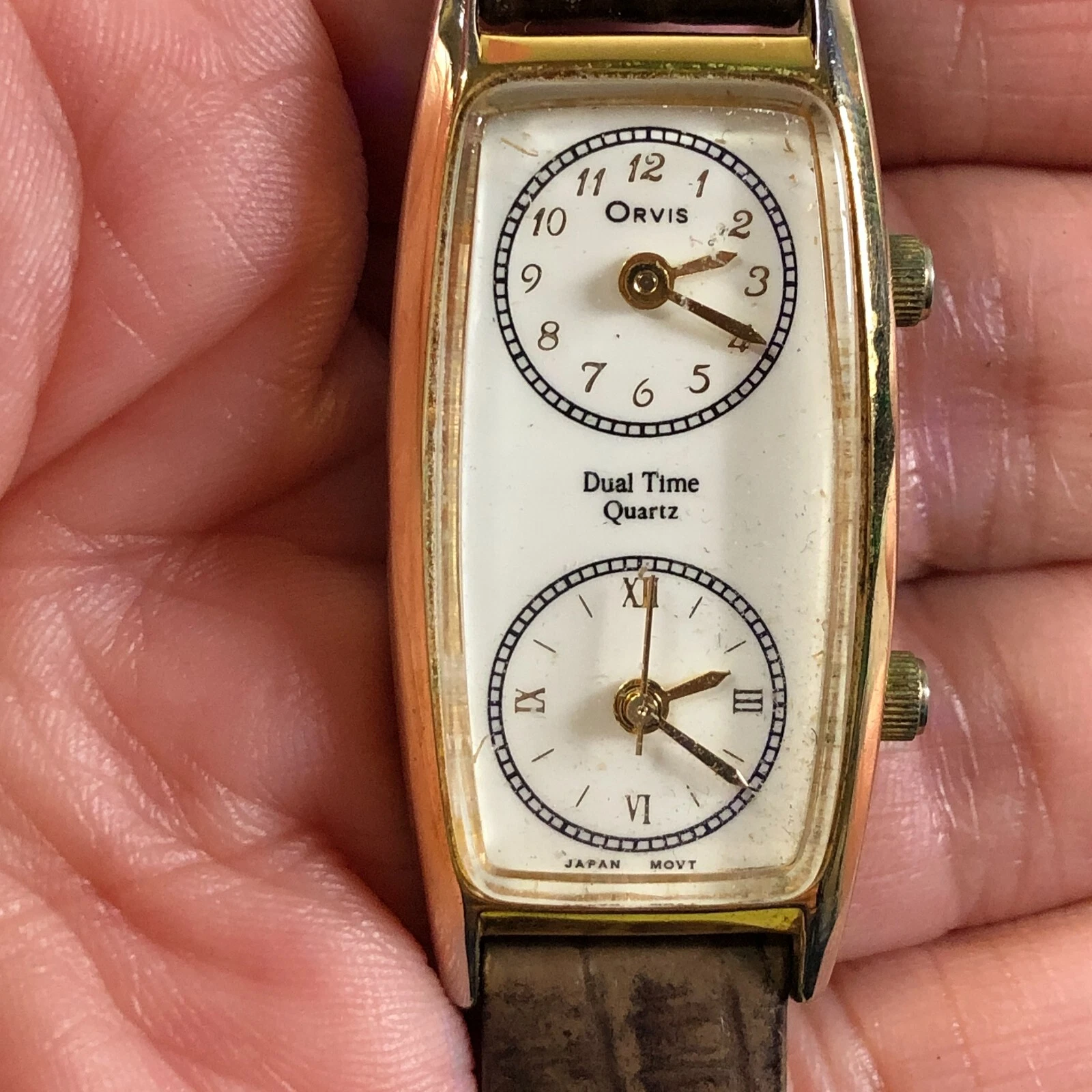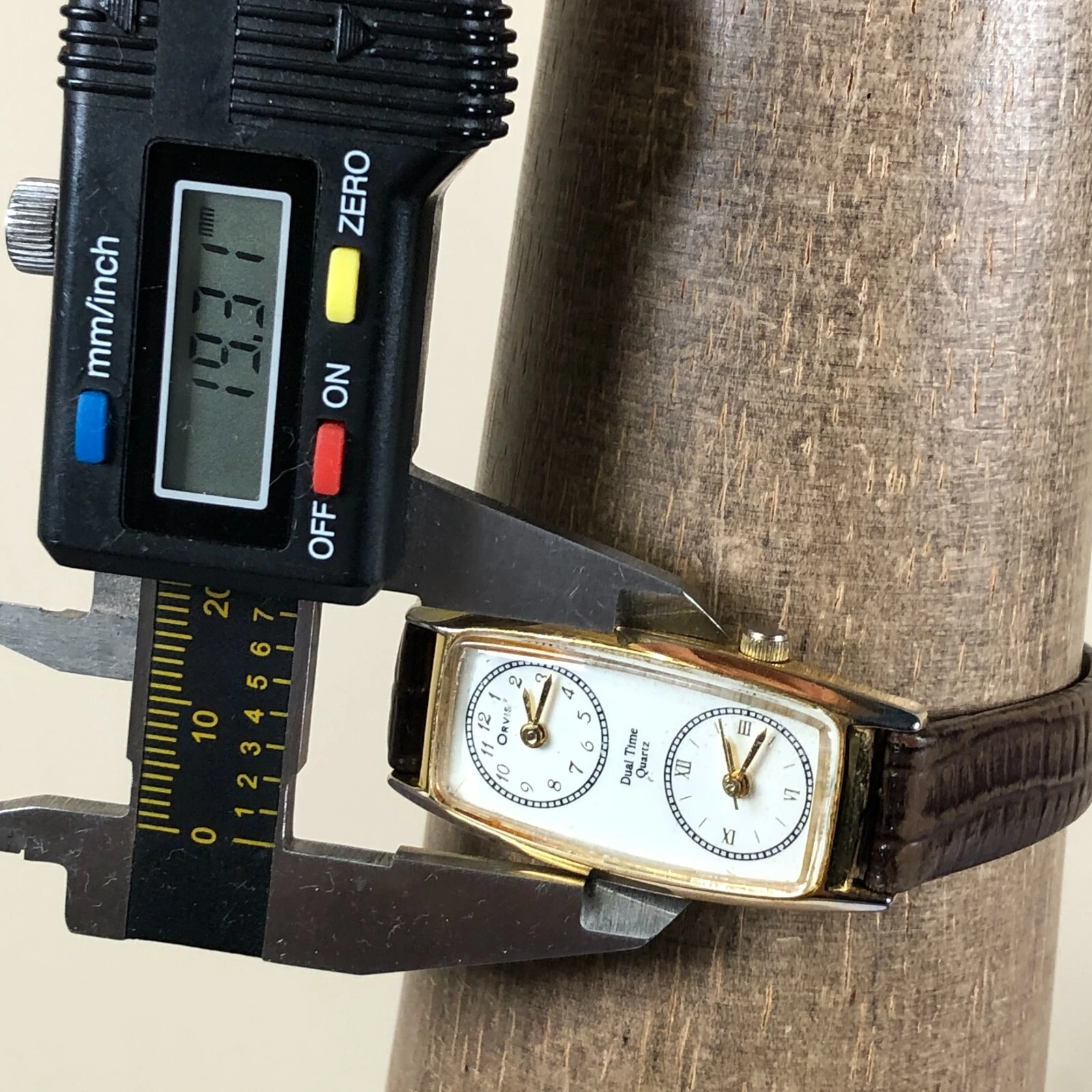 Orvis Women Dual Time Black Leather Rectangular 19mm Quartz Analog Watch 6 3/4"
