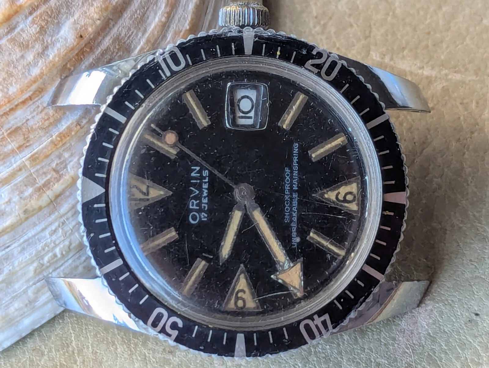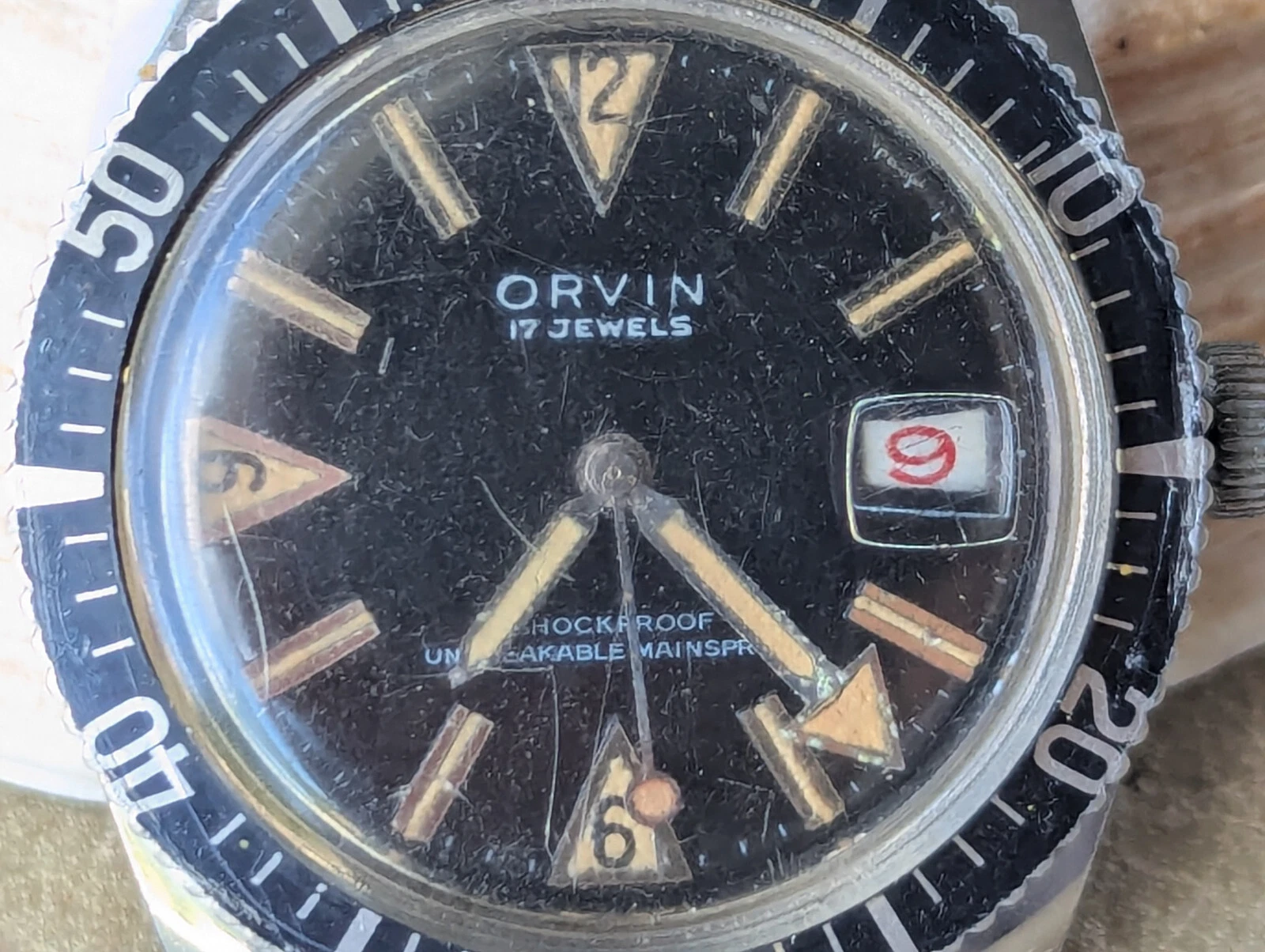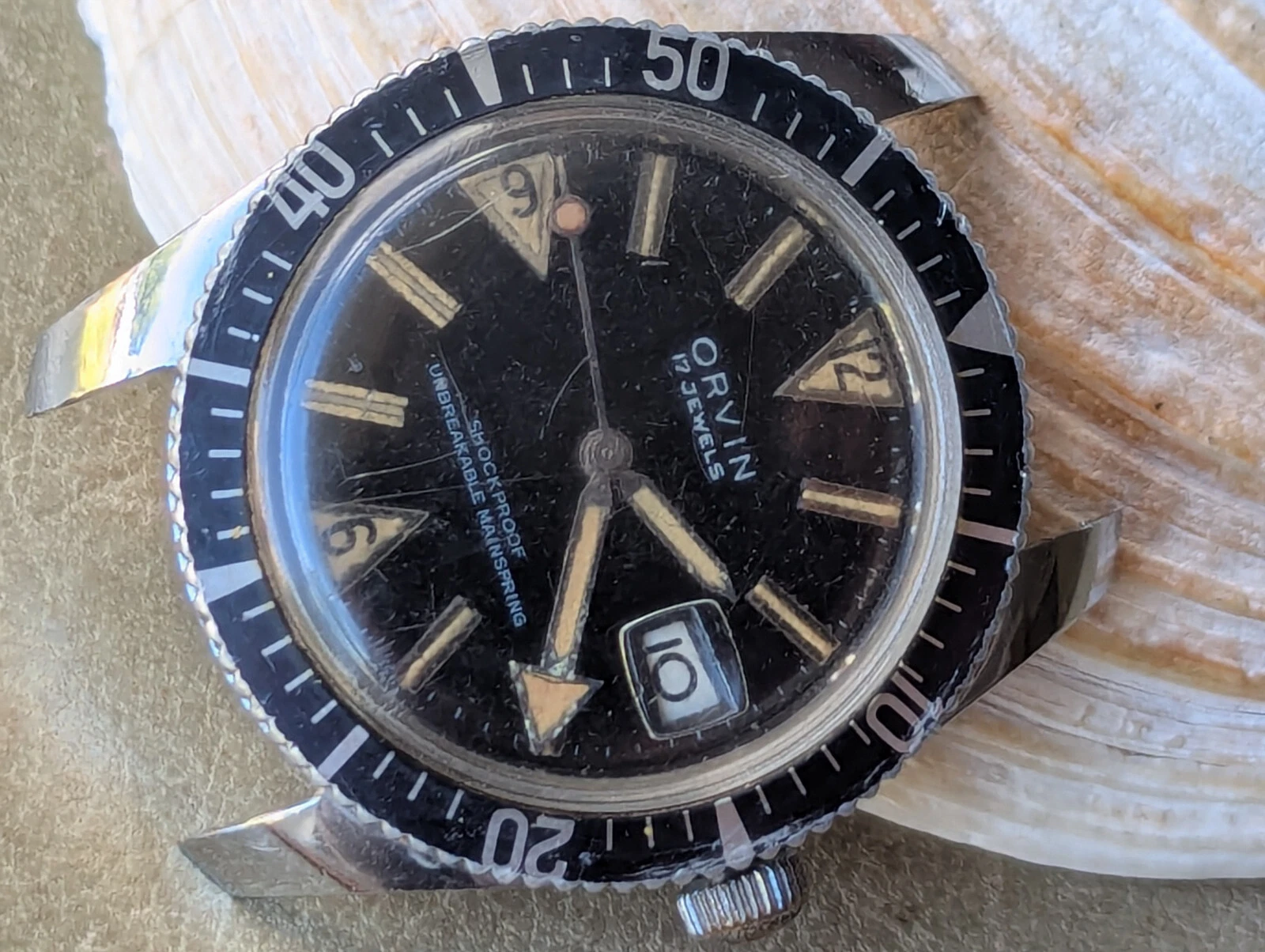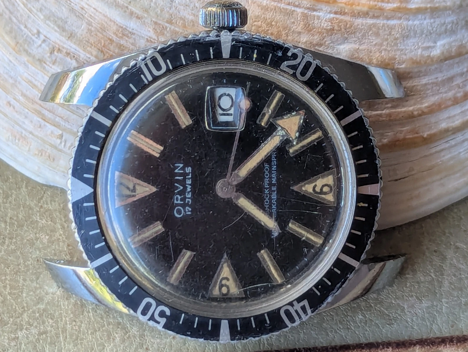 Vintage 1970s Orvin Chrome-Plated Diver w/Patina,Roulette Date Wheel,Runs Strong
