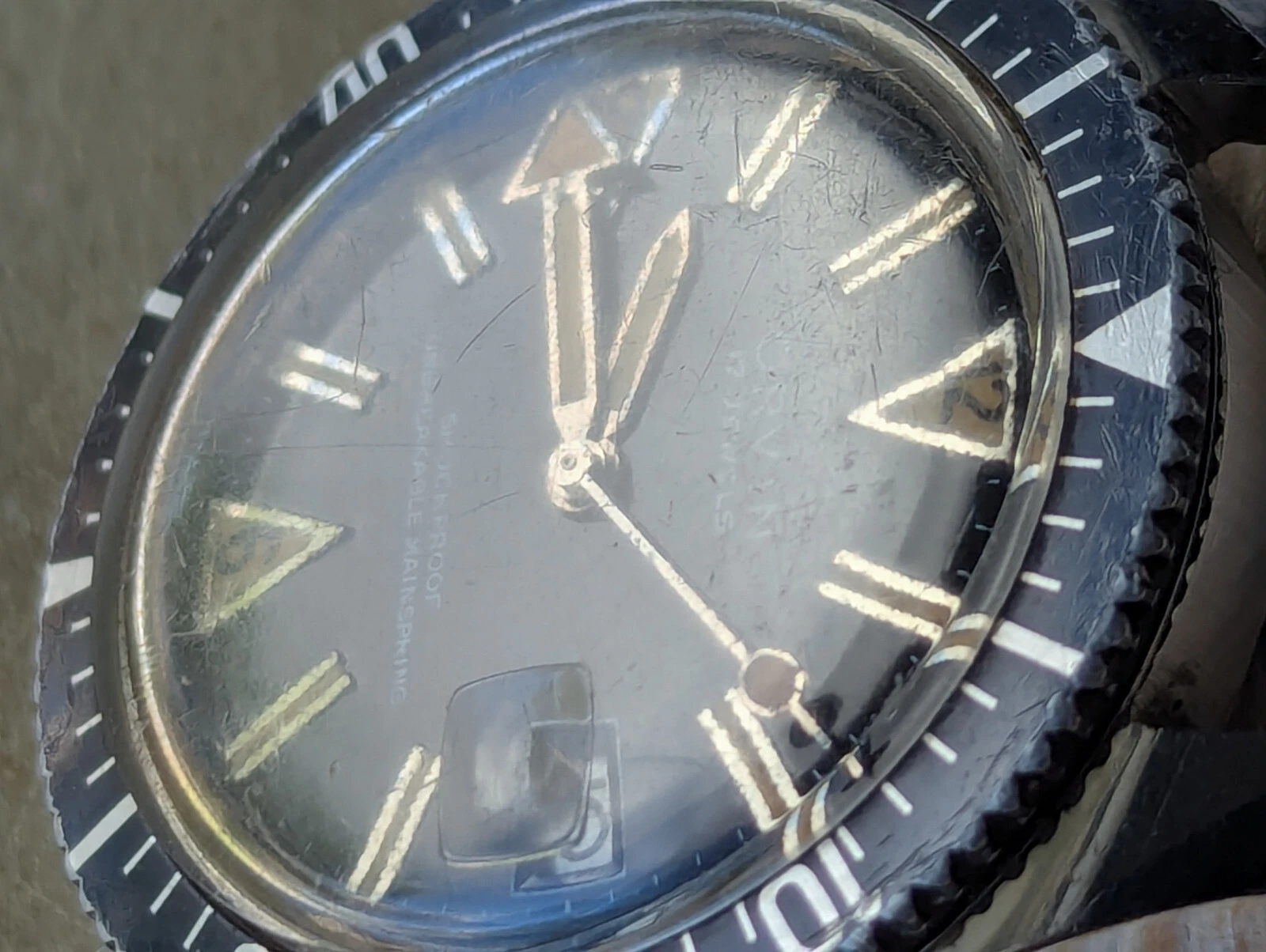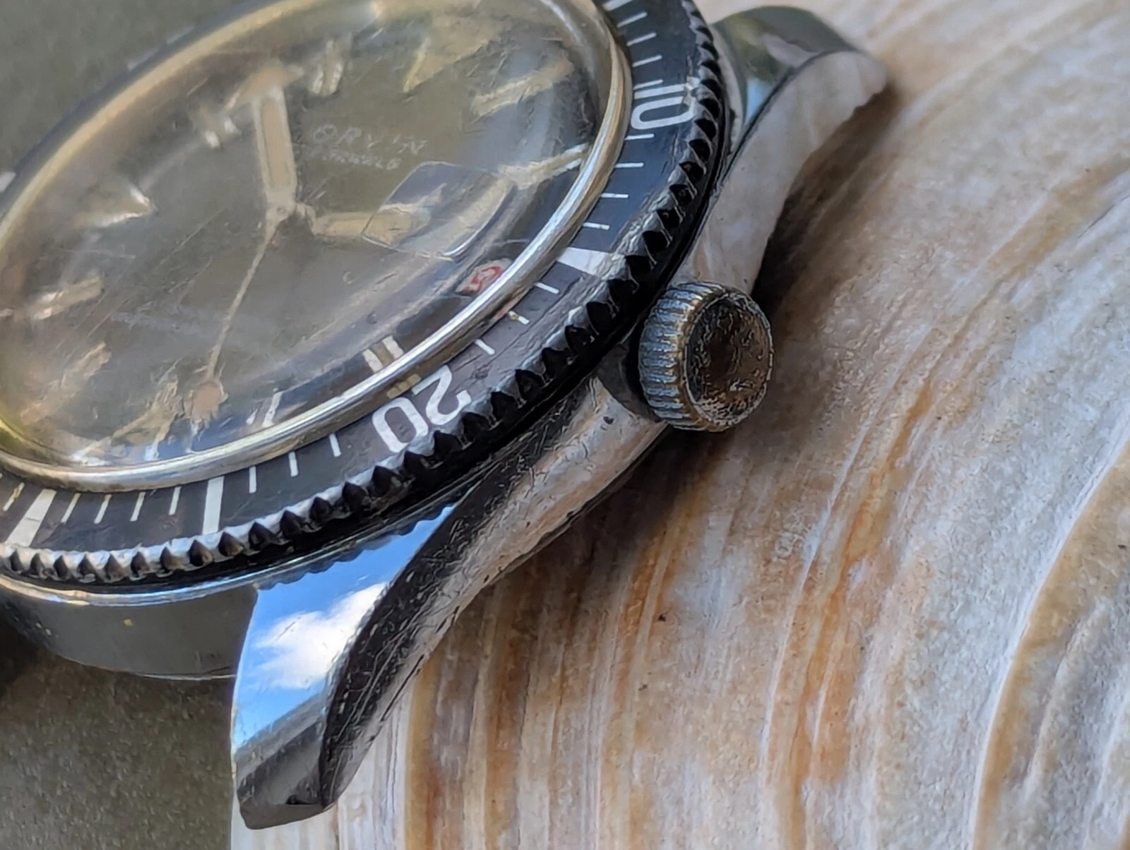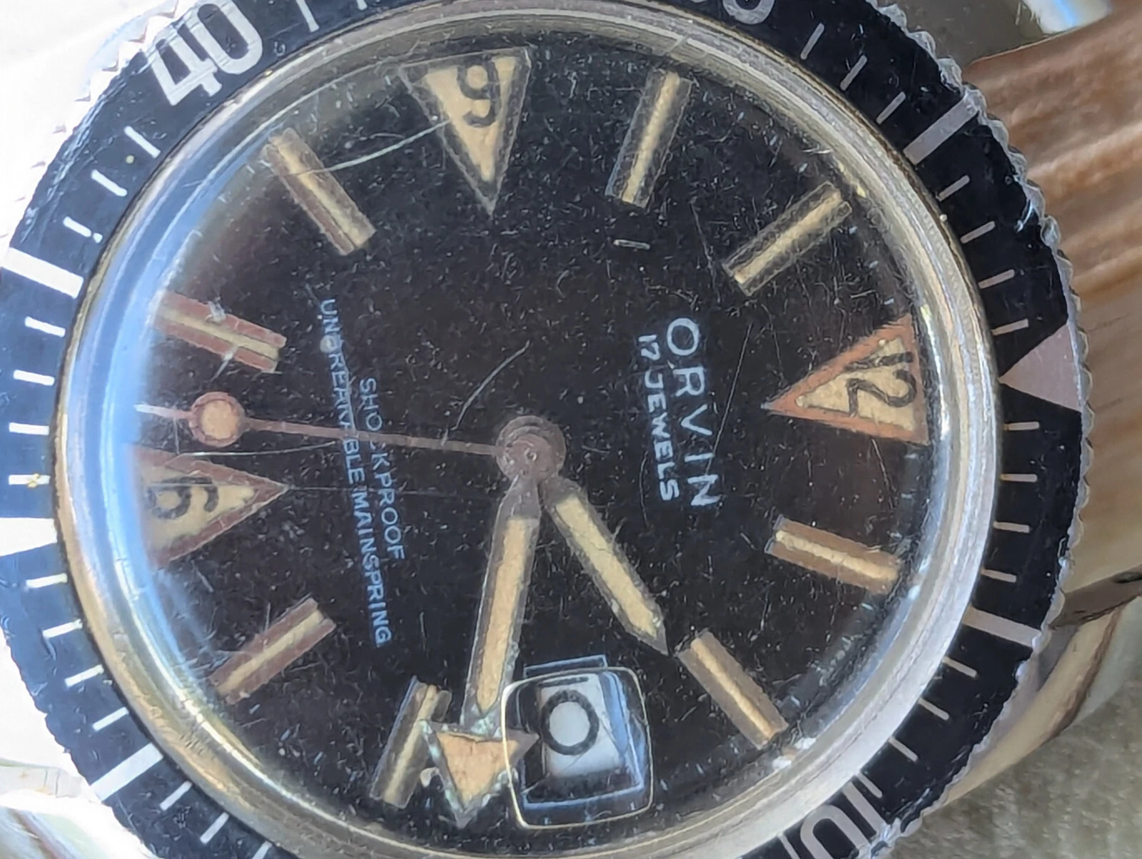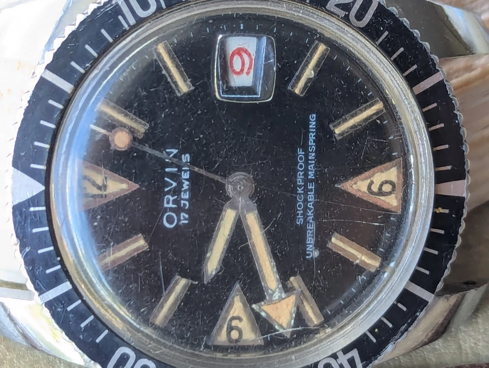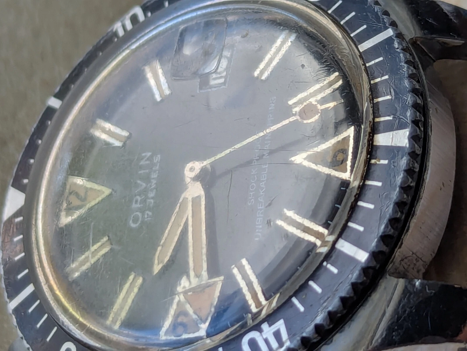 Vintage 1970s Orvin Chrome-Plated Diver w/Patina,Roulette Date Wheel,Runs Strong