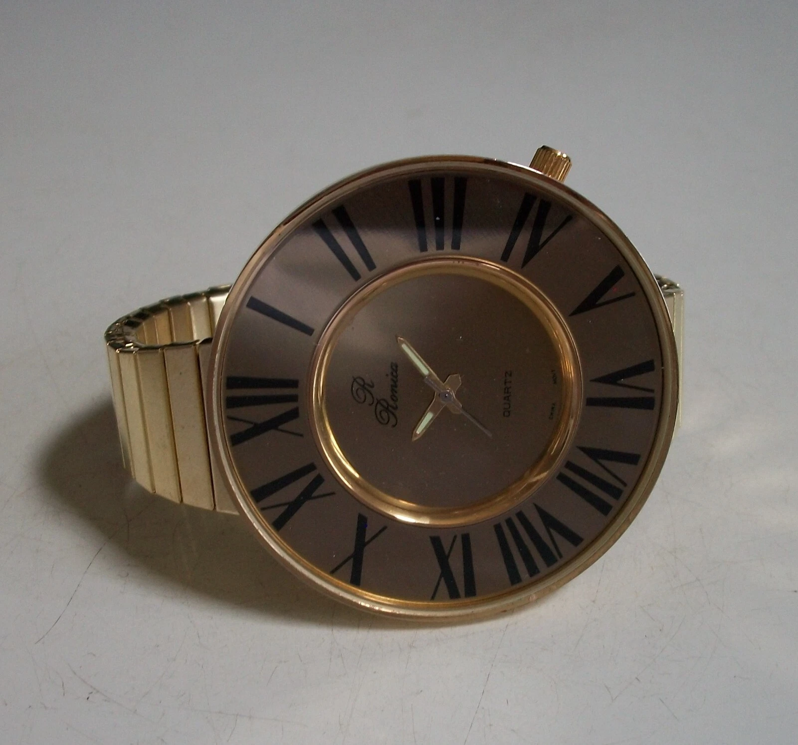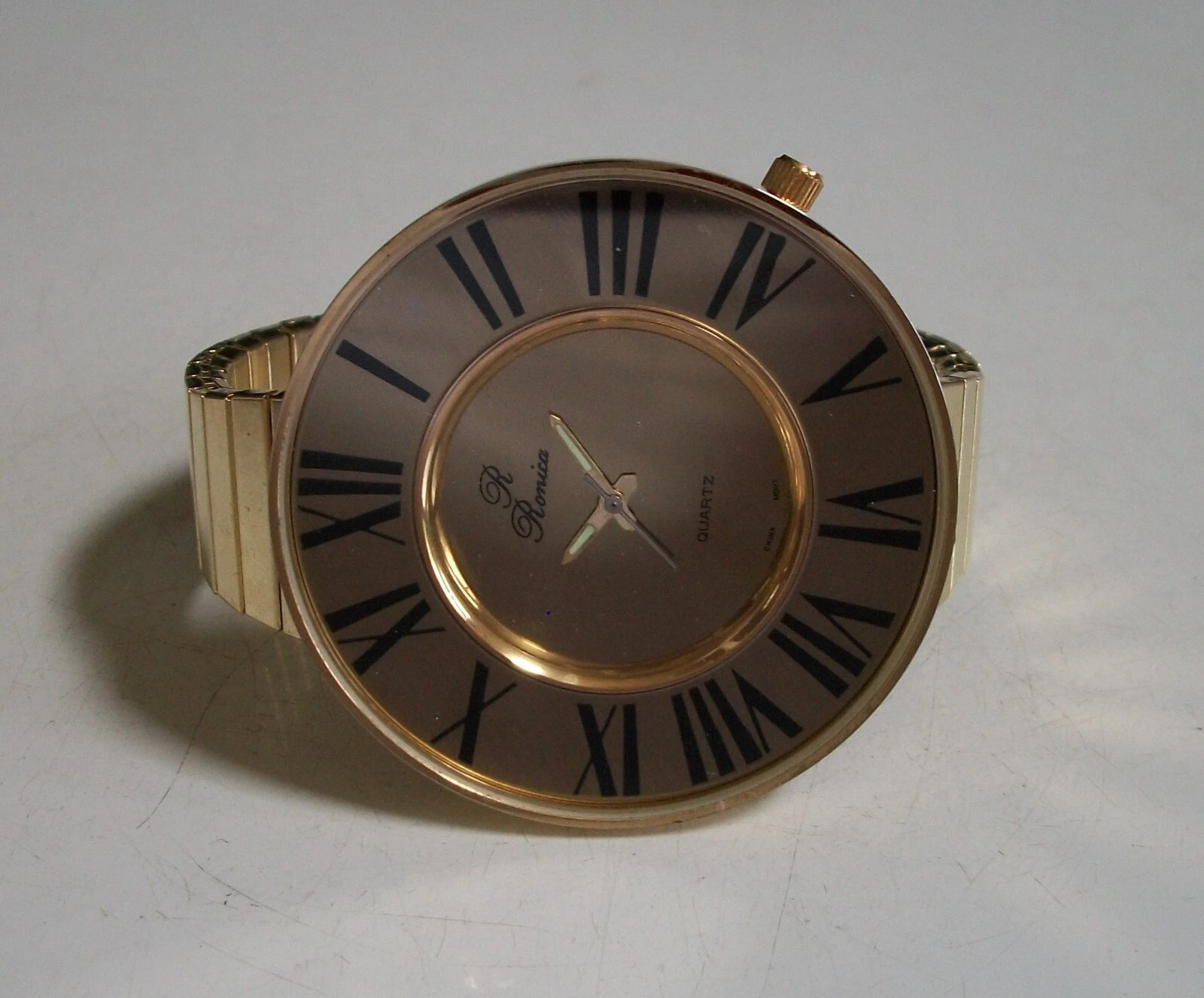 Women's Roman Number Dial Stretch Band Gold Finish Fashion Dressy/Casual Watch