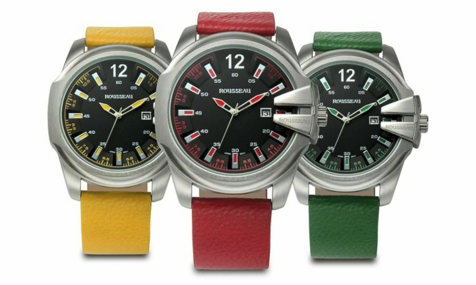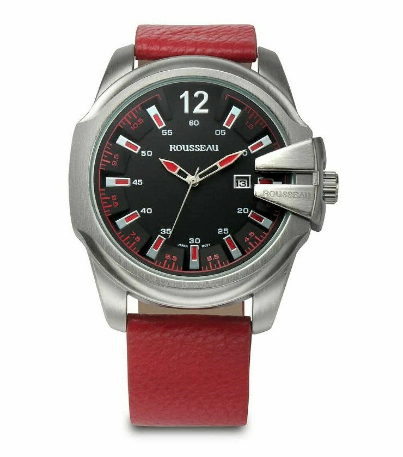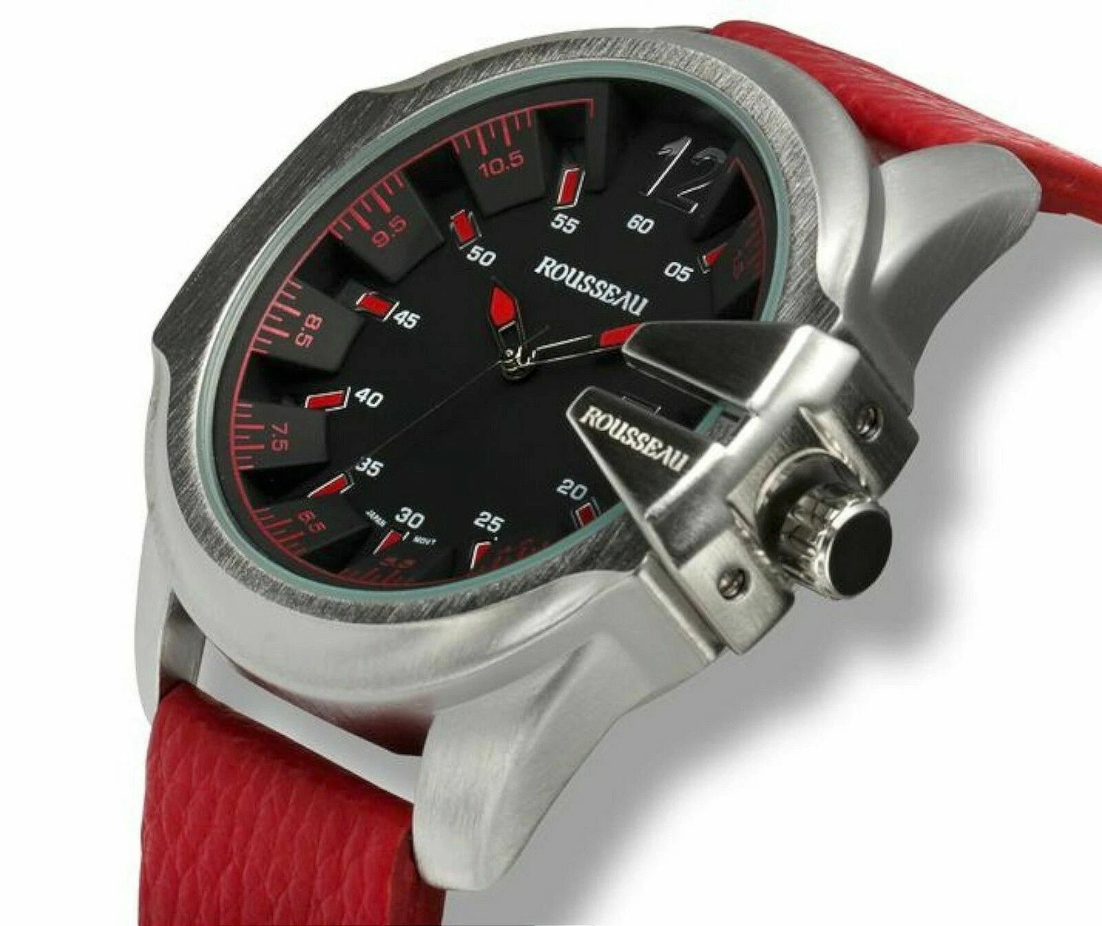 NEW Rousseau 9900 Mens Tillman Collection 3D Design Black Dial Red Leather Watch