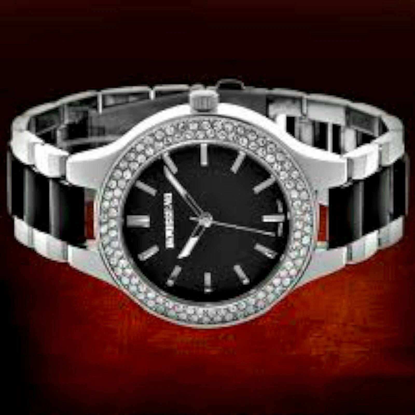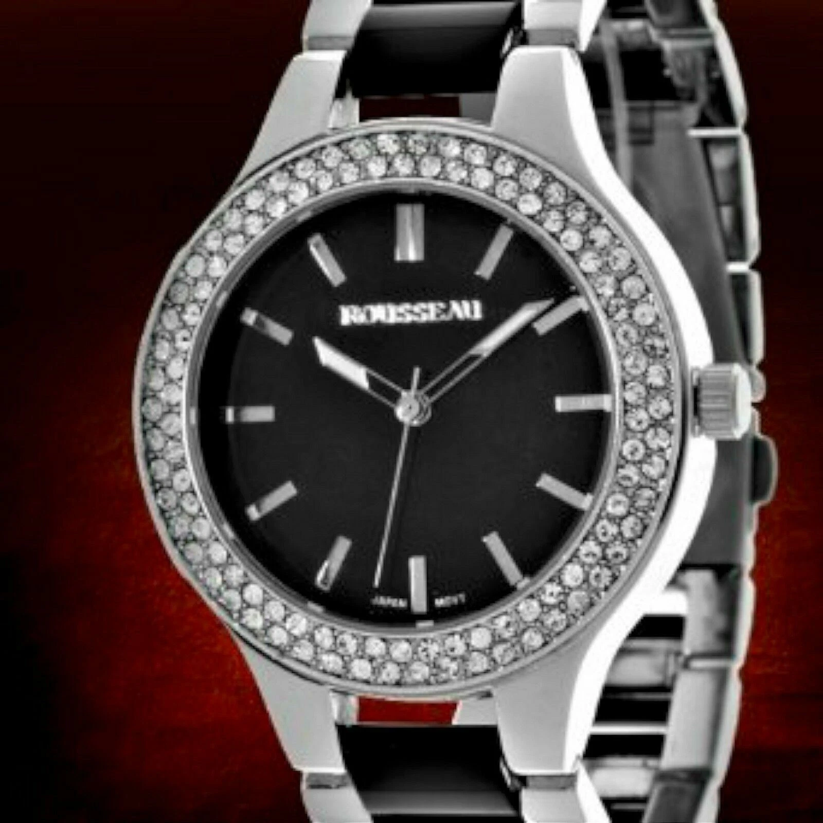 Rousseau 9011 Women's Andrea Collection Black/Silver Watch W/ Crystal Bezel